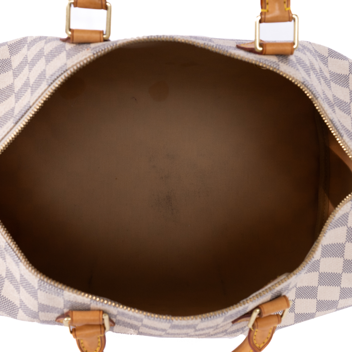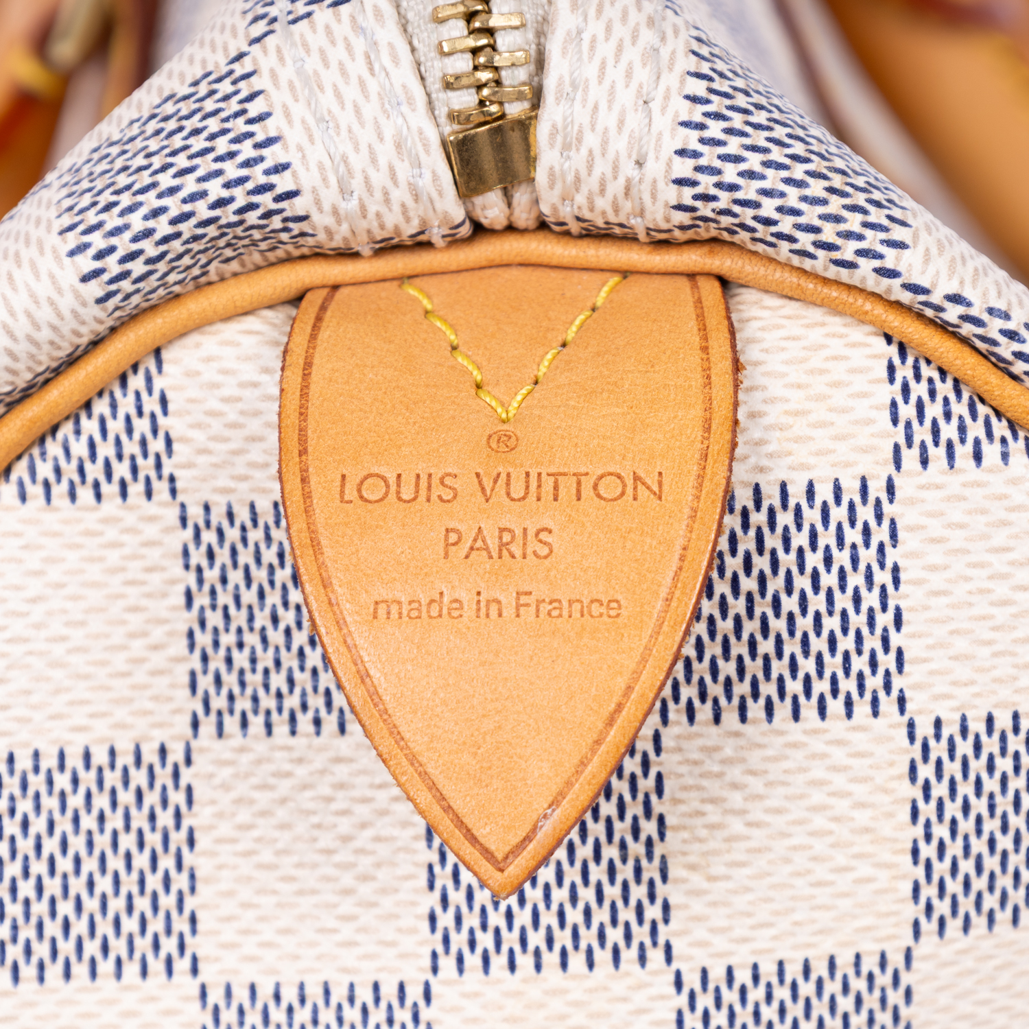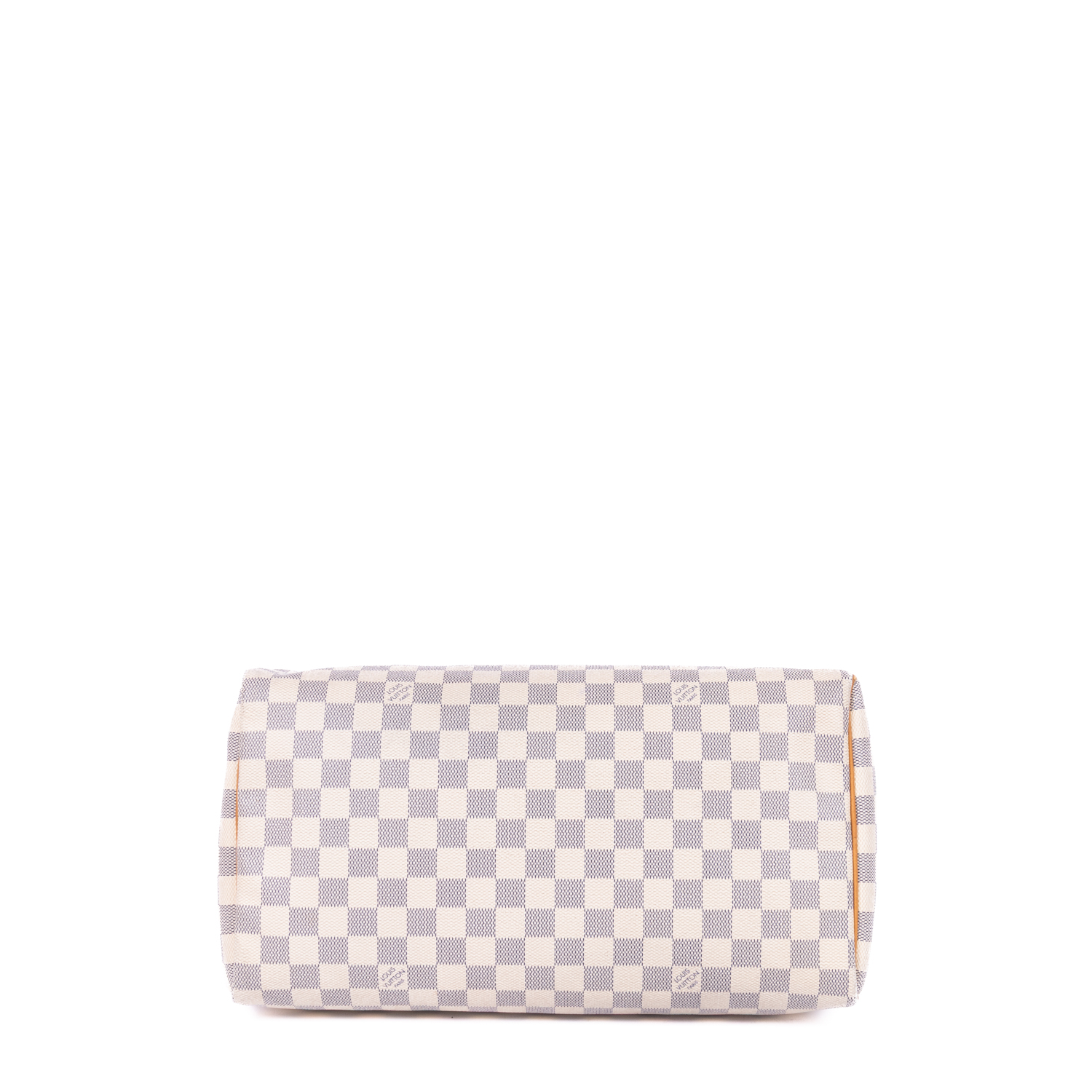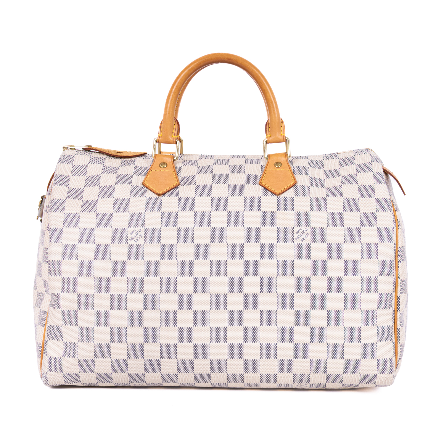 Louis Vuitton Handbag Speedy 35 in Ivory Damier Azur and Golden Brass hardware. The product is in Excellent Condition (A).