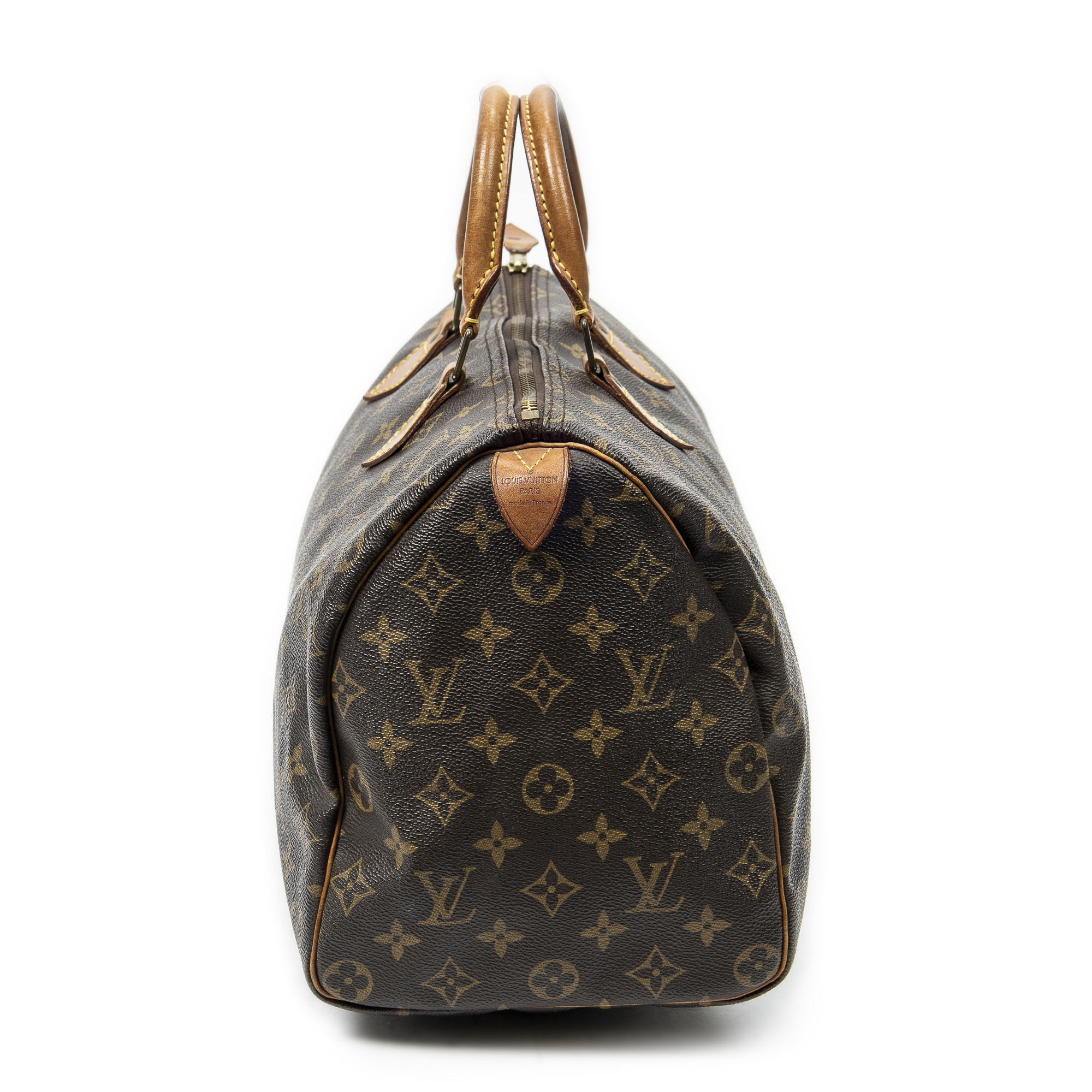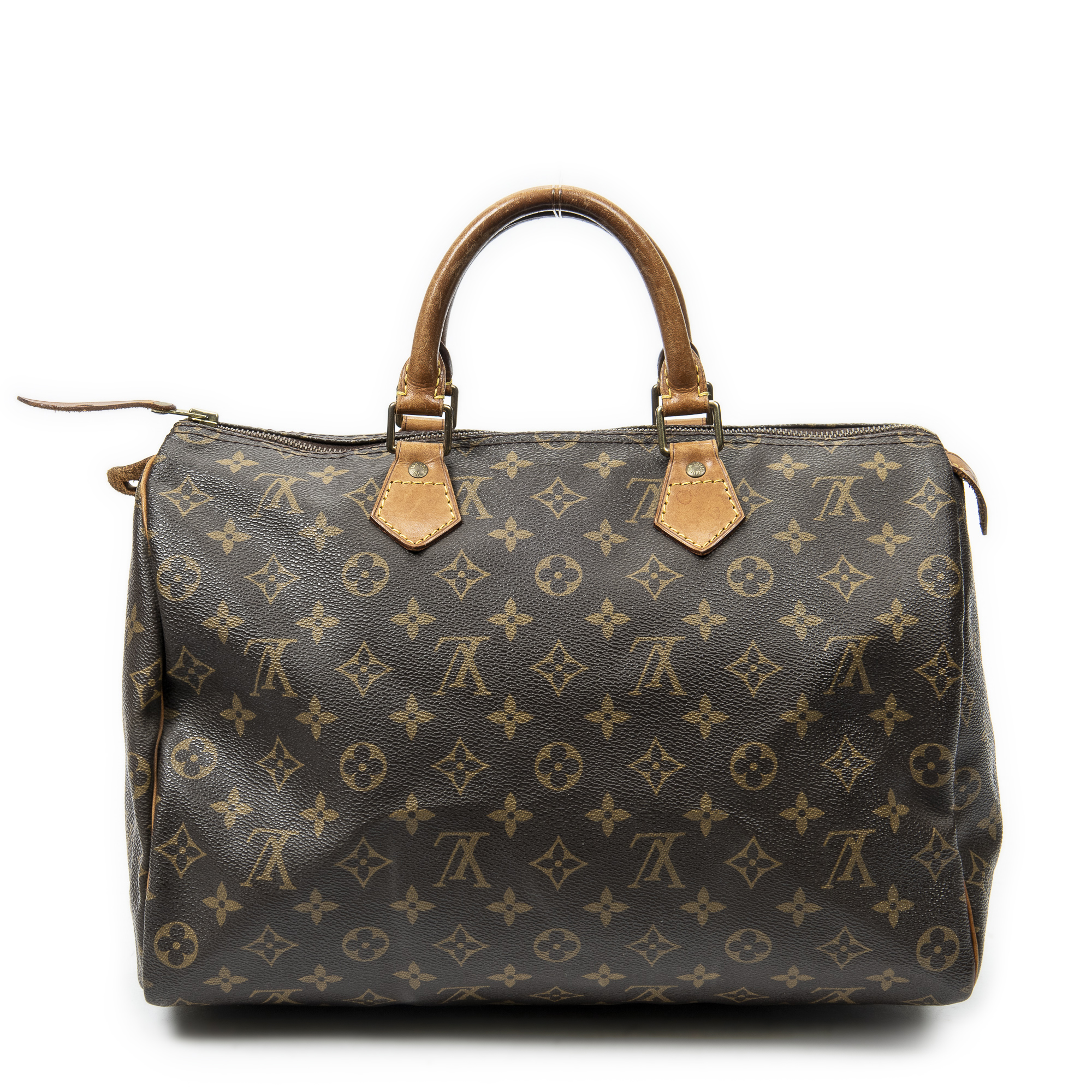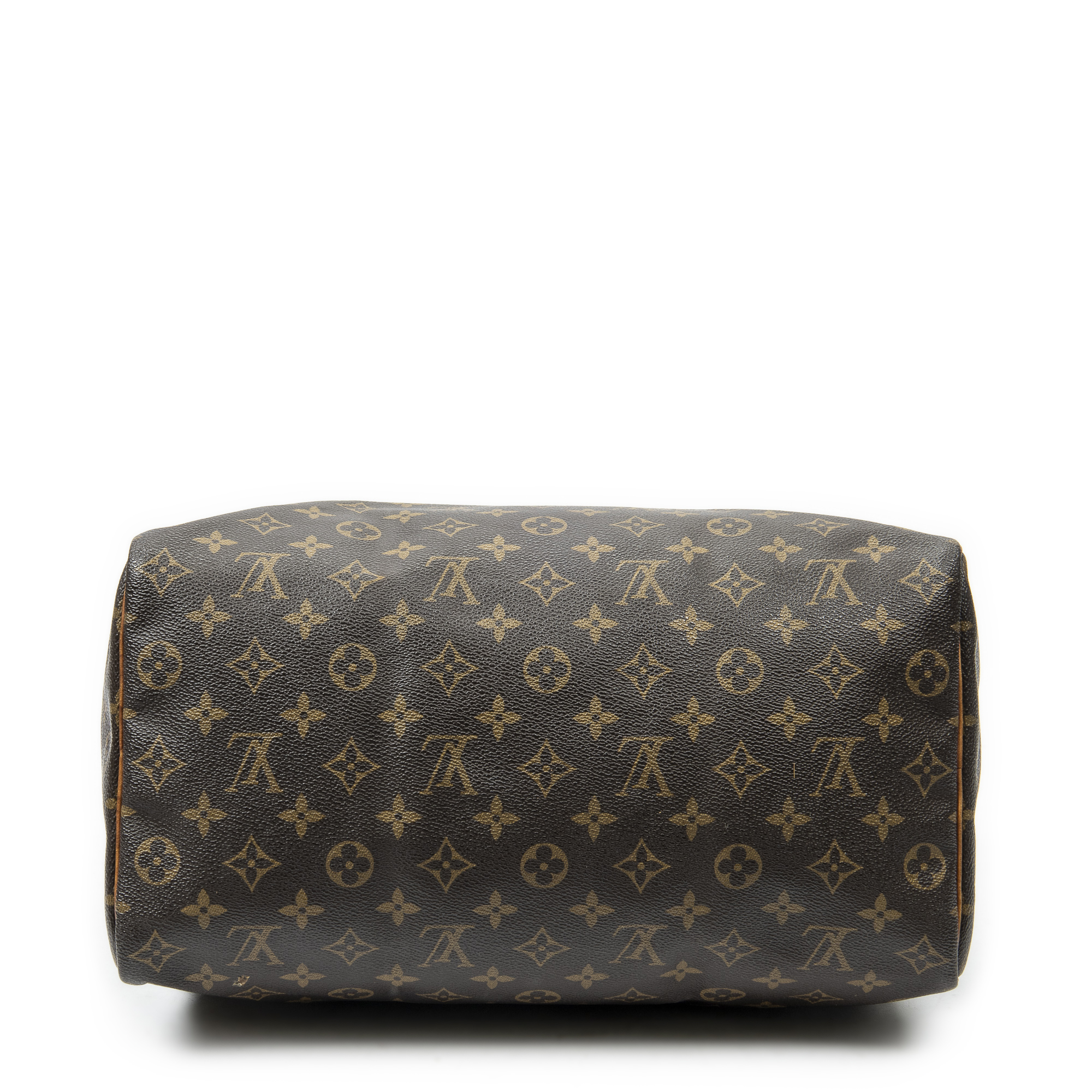 Louis Vuitton Handbag Speedy 35 in Brown Monogram Canvas and Golden Brass hardware. The product is in Very Good Condition (AB).