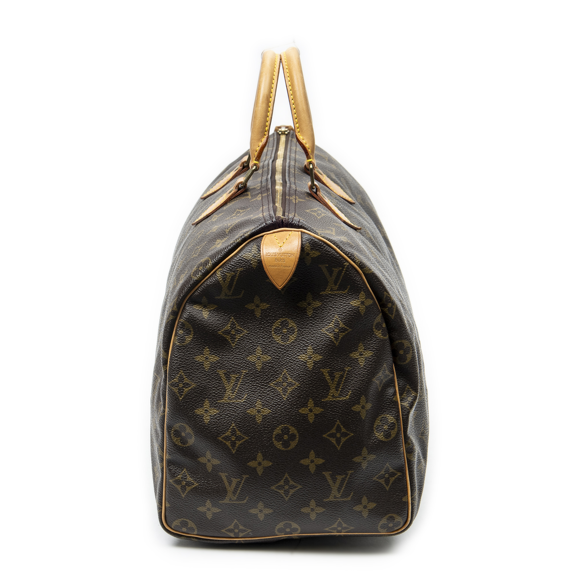 Louis Vuitton Handbag Speedy 40 in Brown Monogram Canvas and Golden Brass hardware. The product is in Very Good Condition (AB).