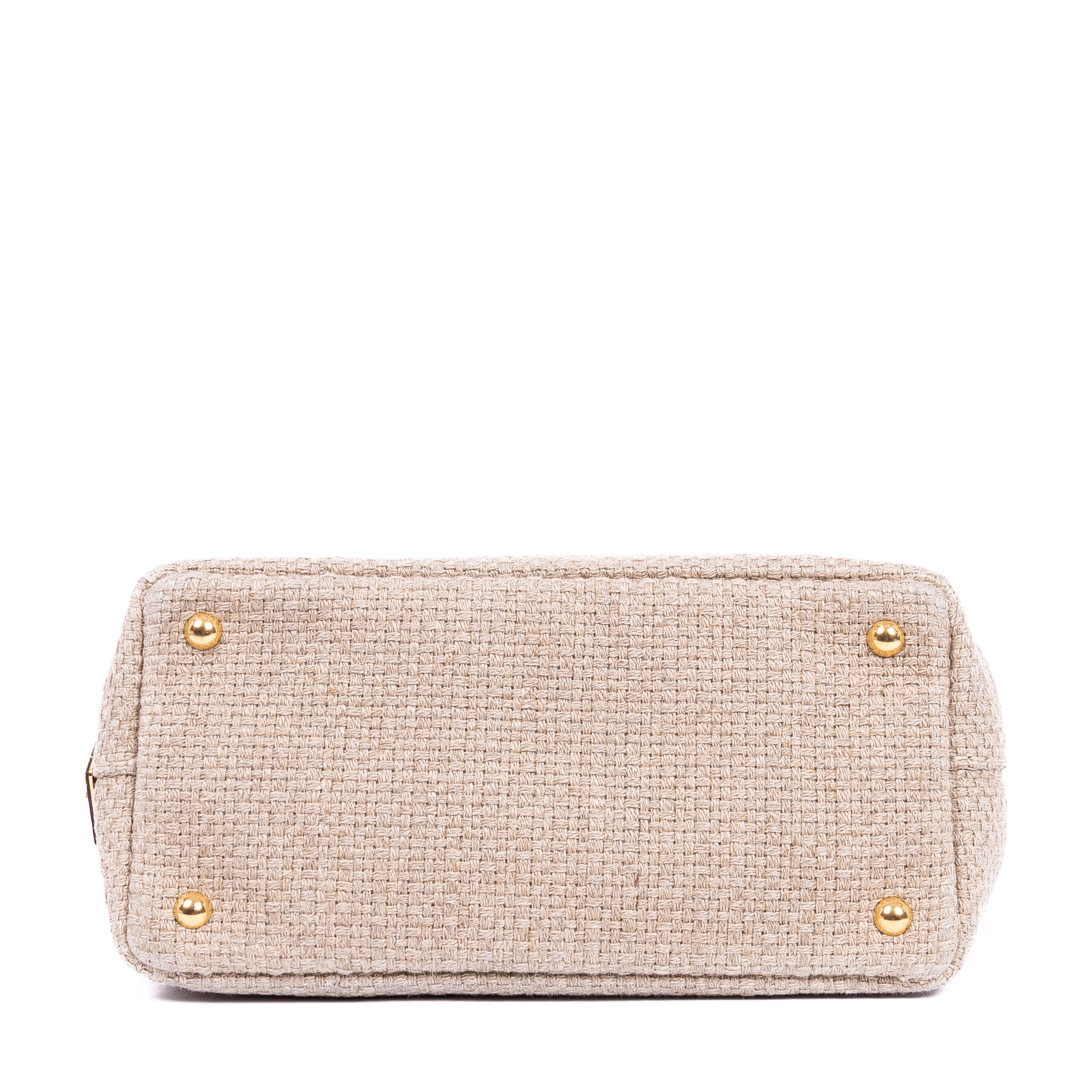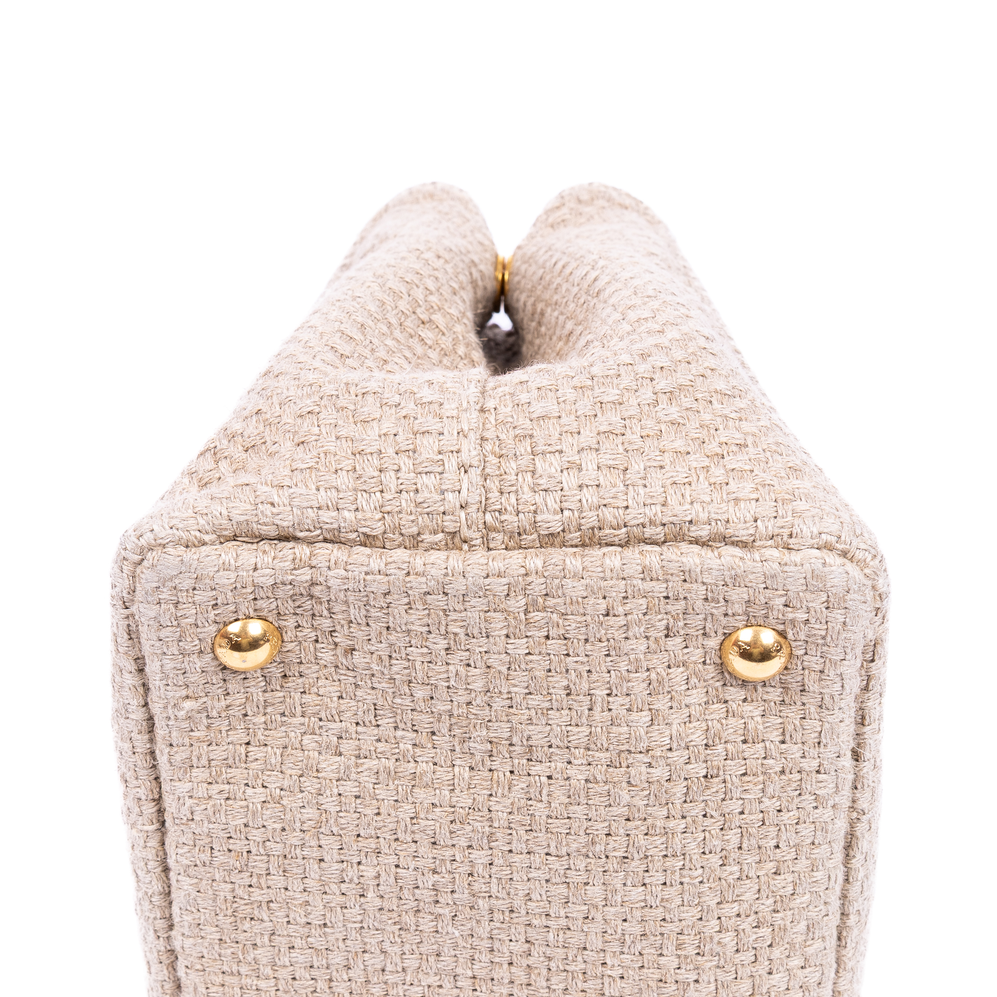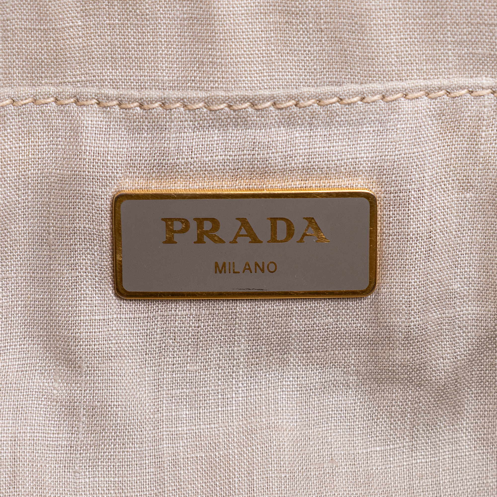 Prada Handbag Straw Linen Canapa Tote in Beige Straw Stampata Canvas and Gold hardware. The product is in Perfect Condition (AA).