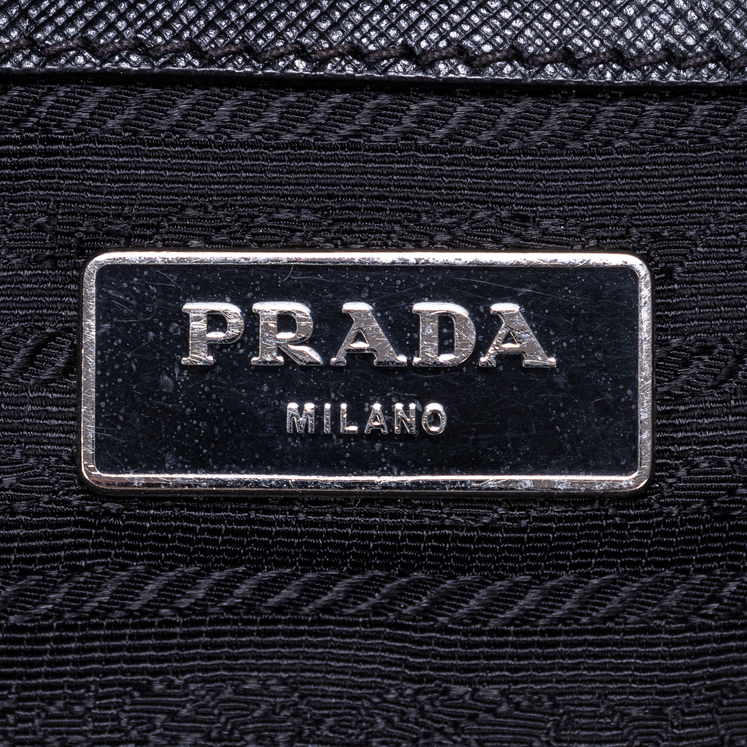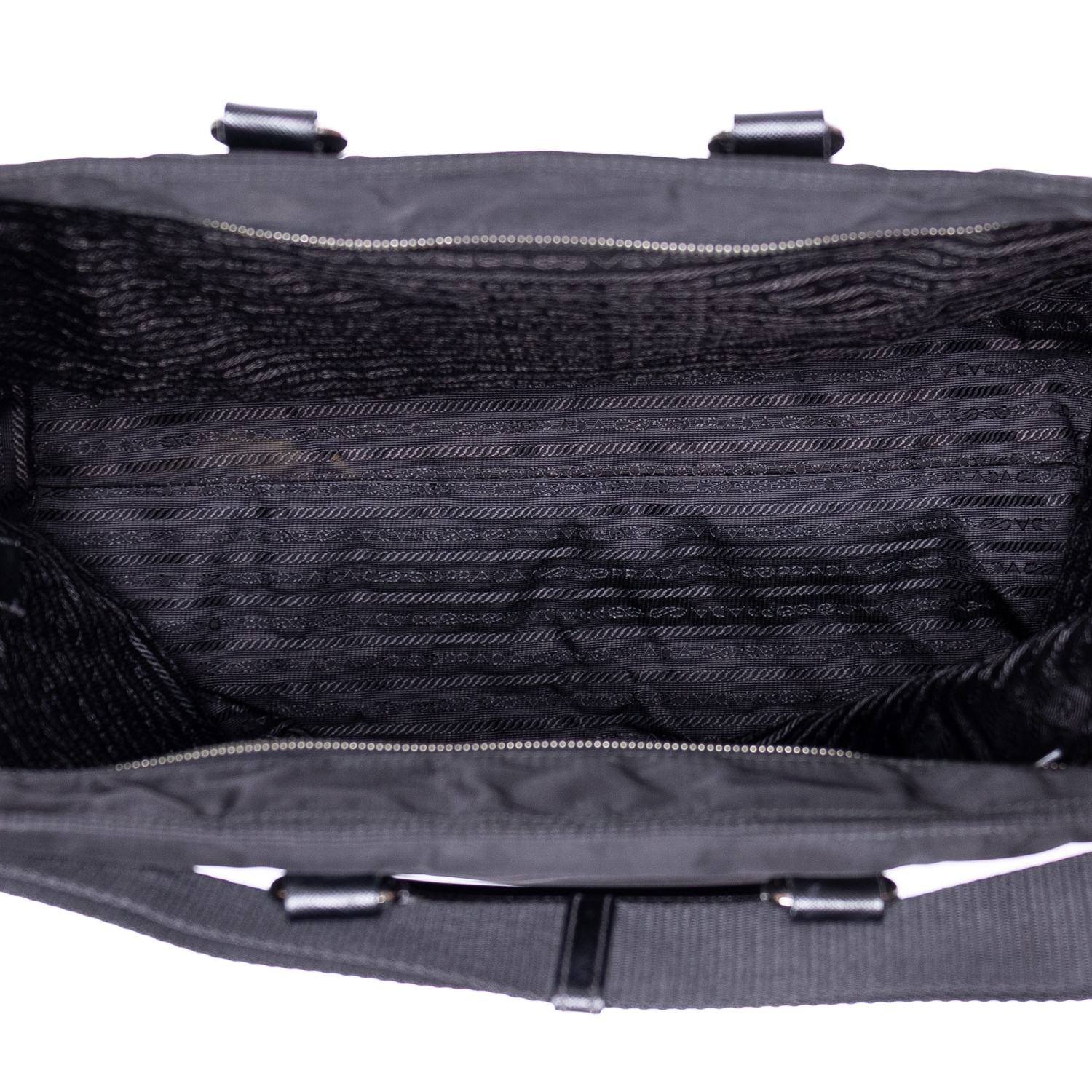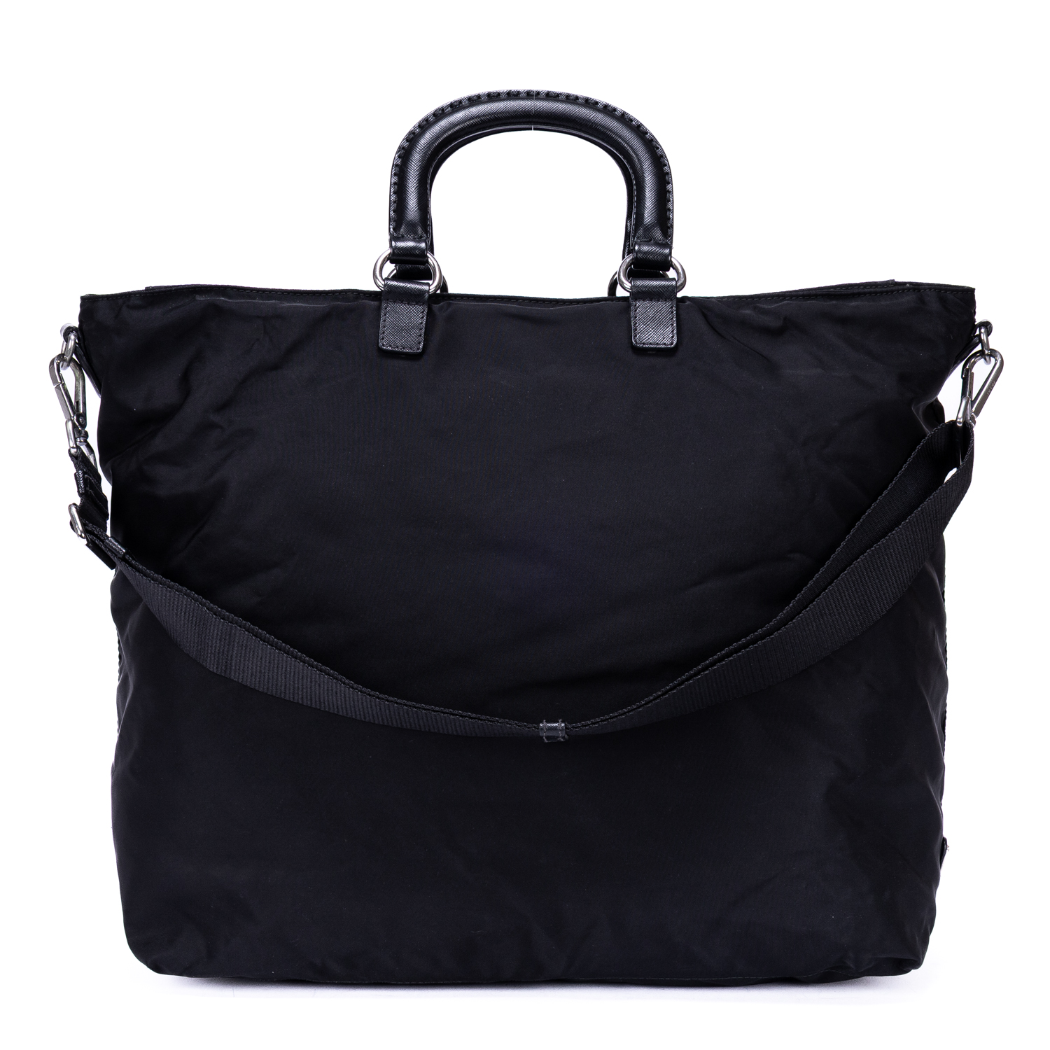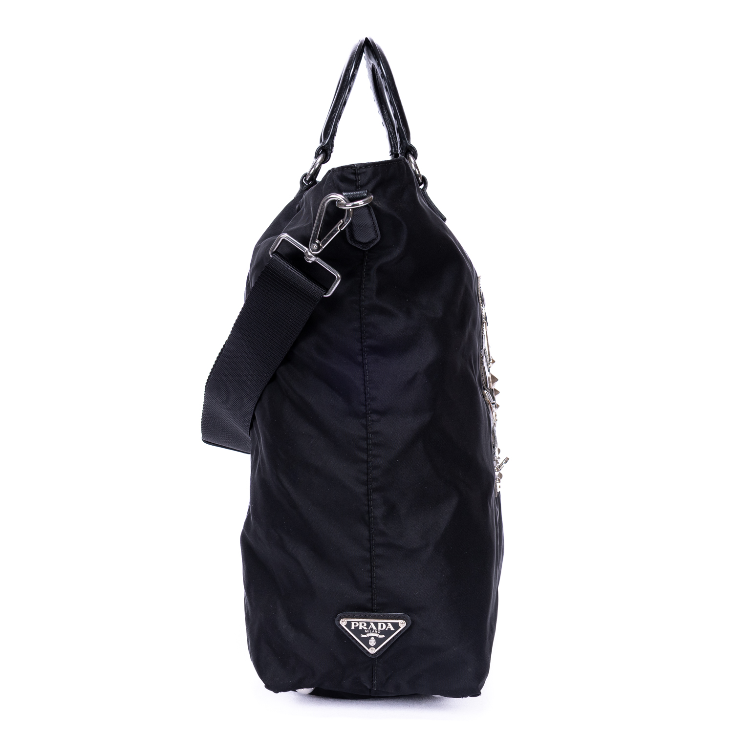 Prada Handbag Stud Skull Logo Tote in Black Nylon Canvas and Silver hardware. The product is in Very Good Condition (AB).