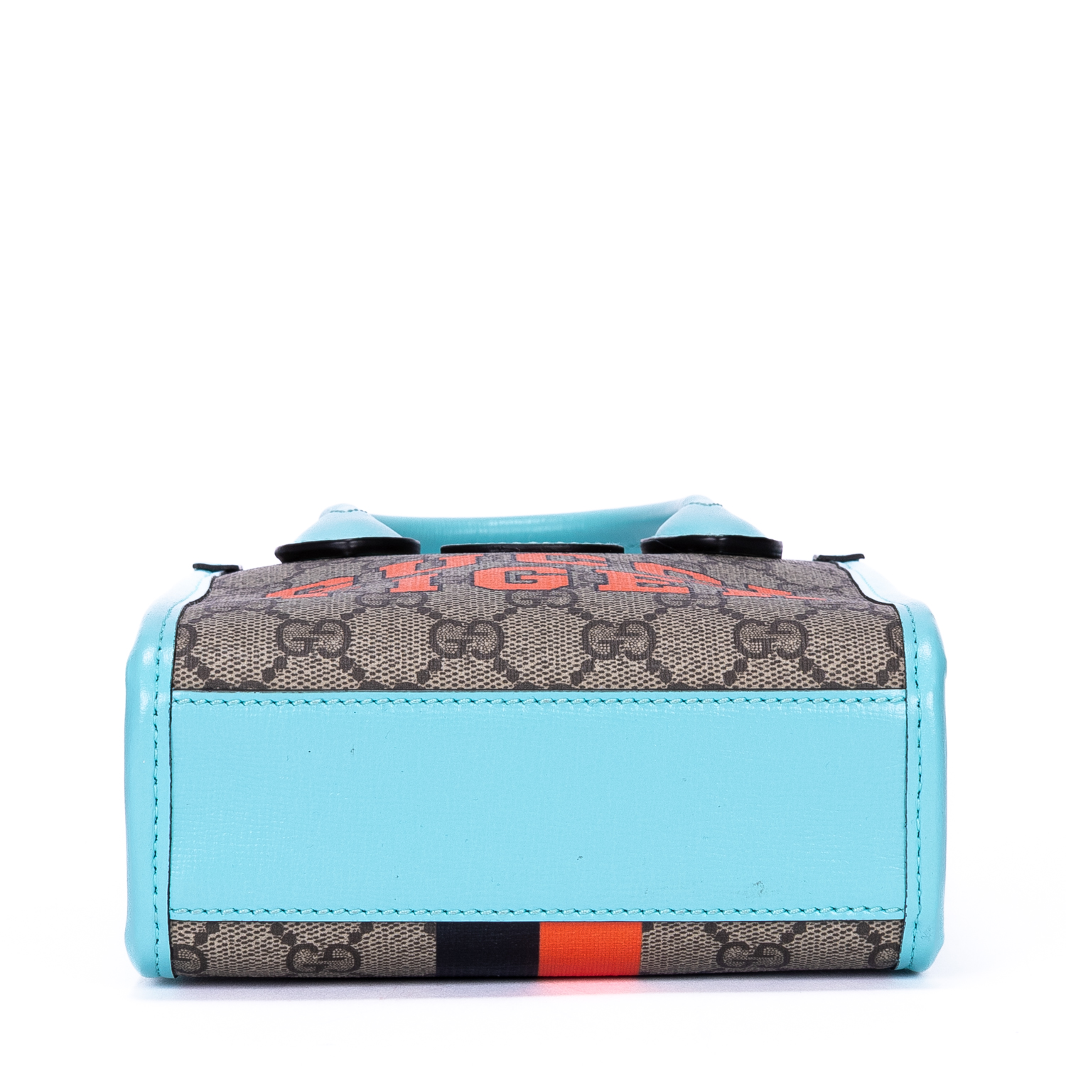 Gucci Handbag Tiger Tote Mini in Beige/Blue Supreme Coated Canvas and Gold hardware. The product is in Perfect Condition (AA).
