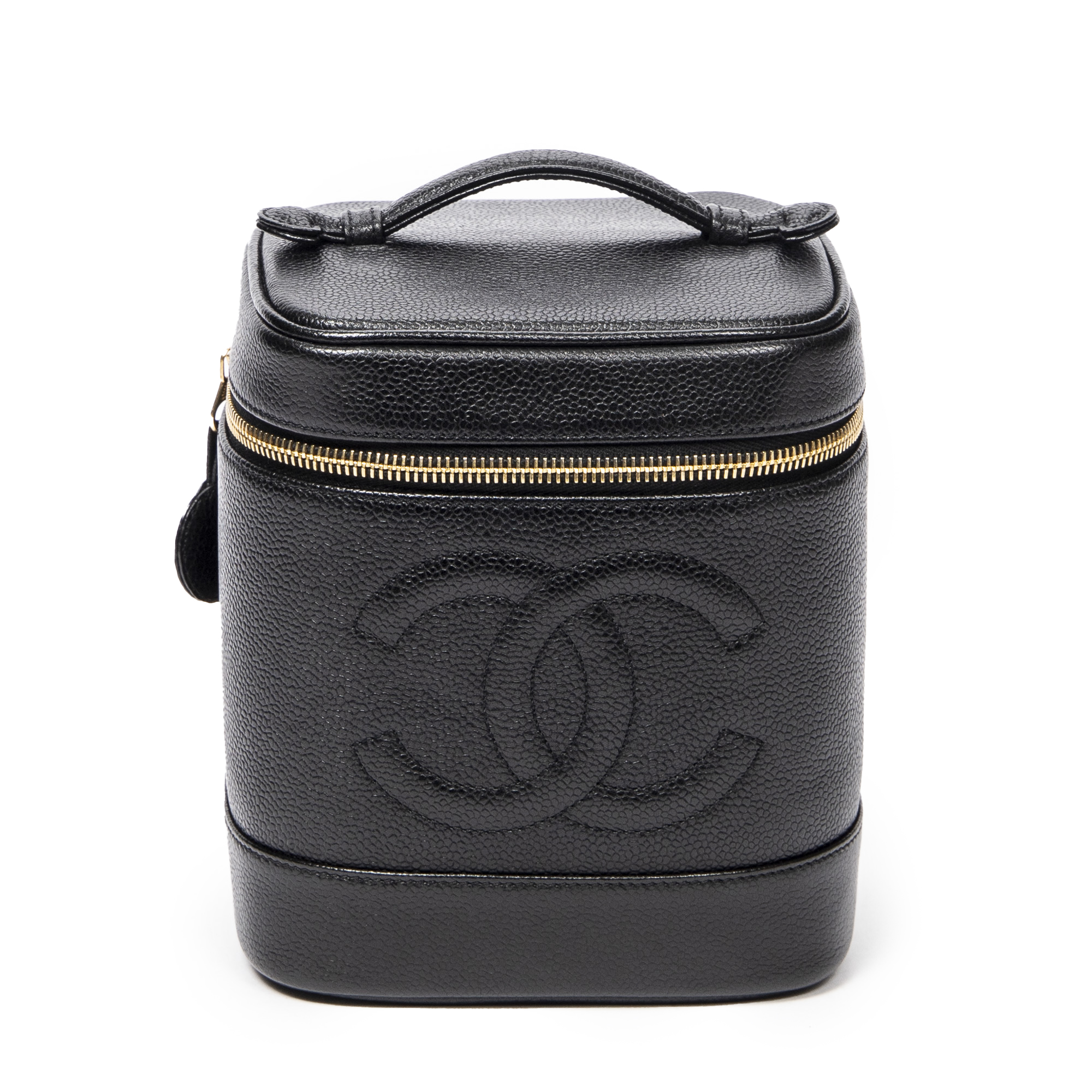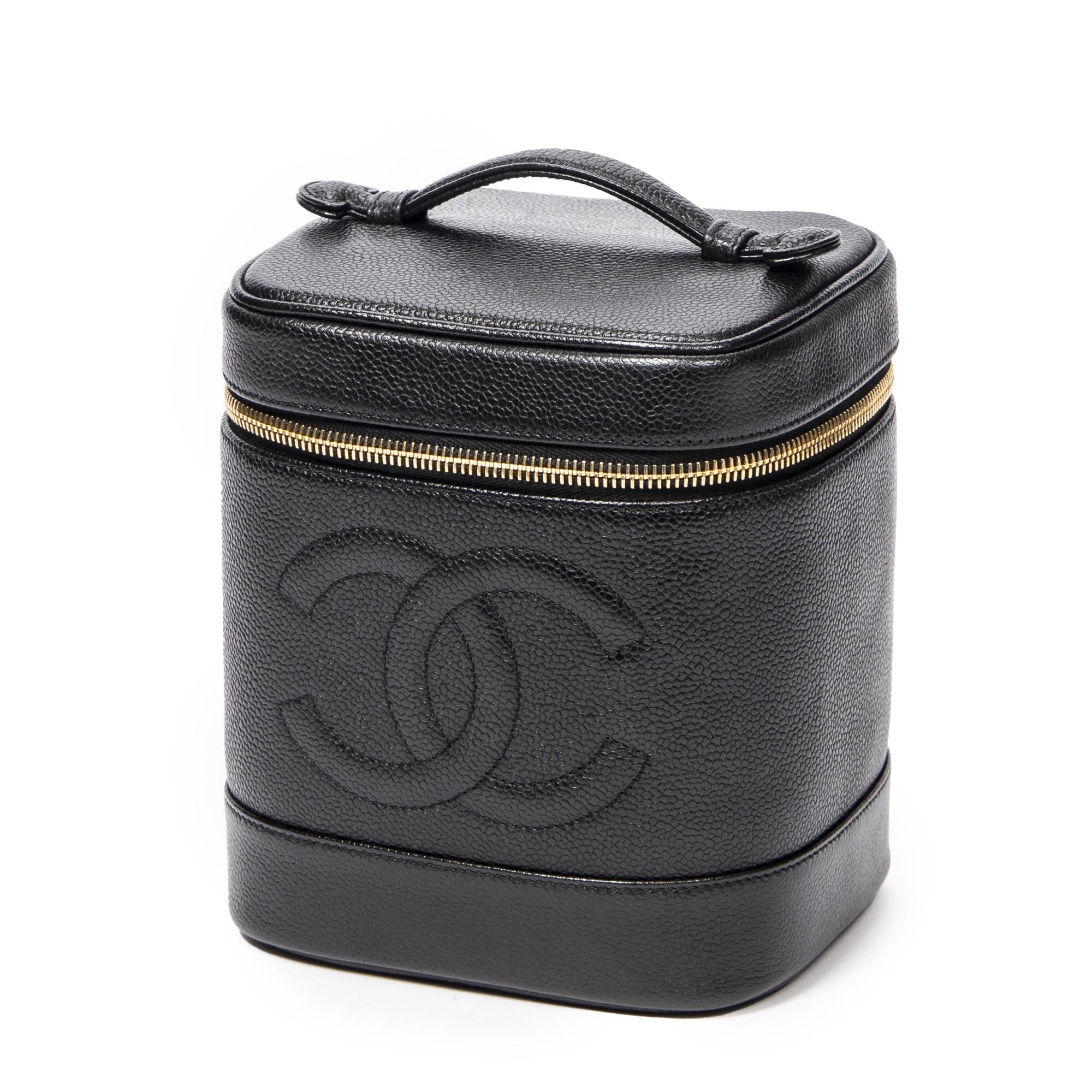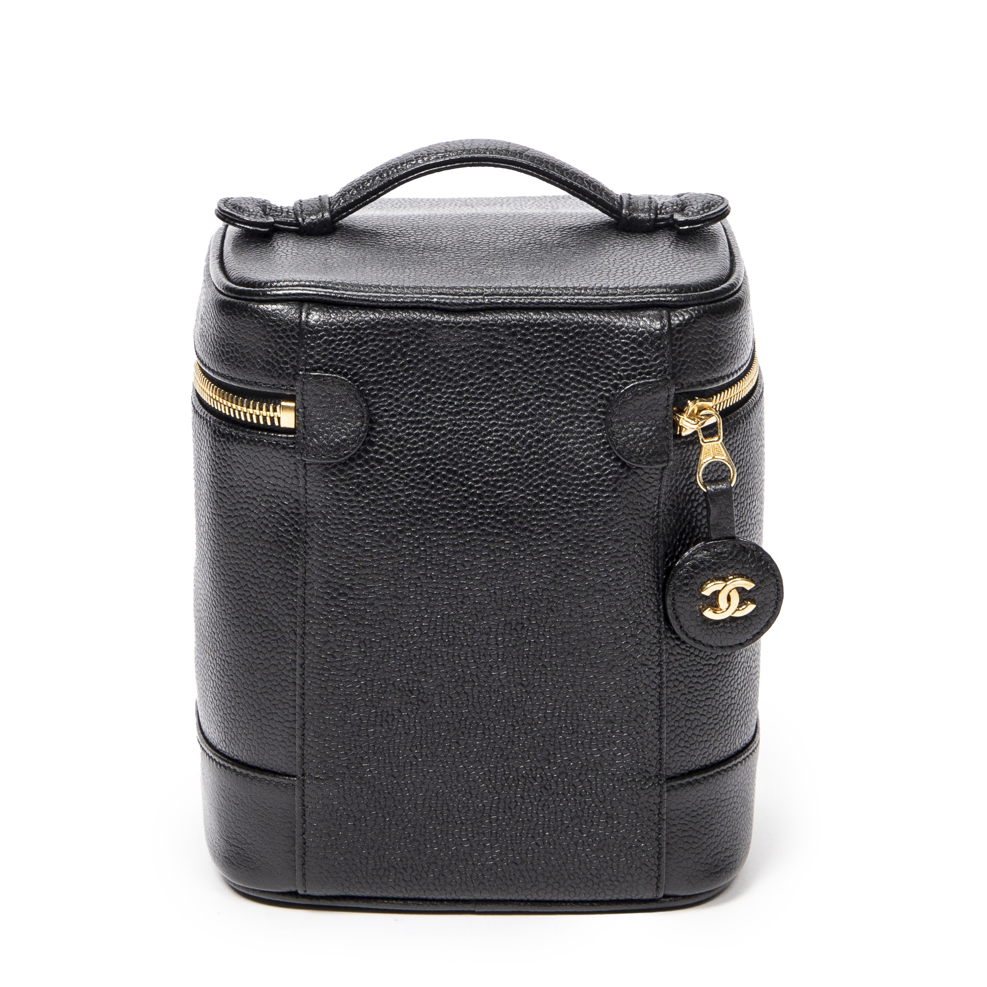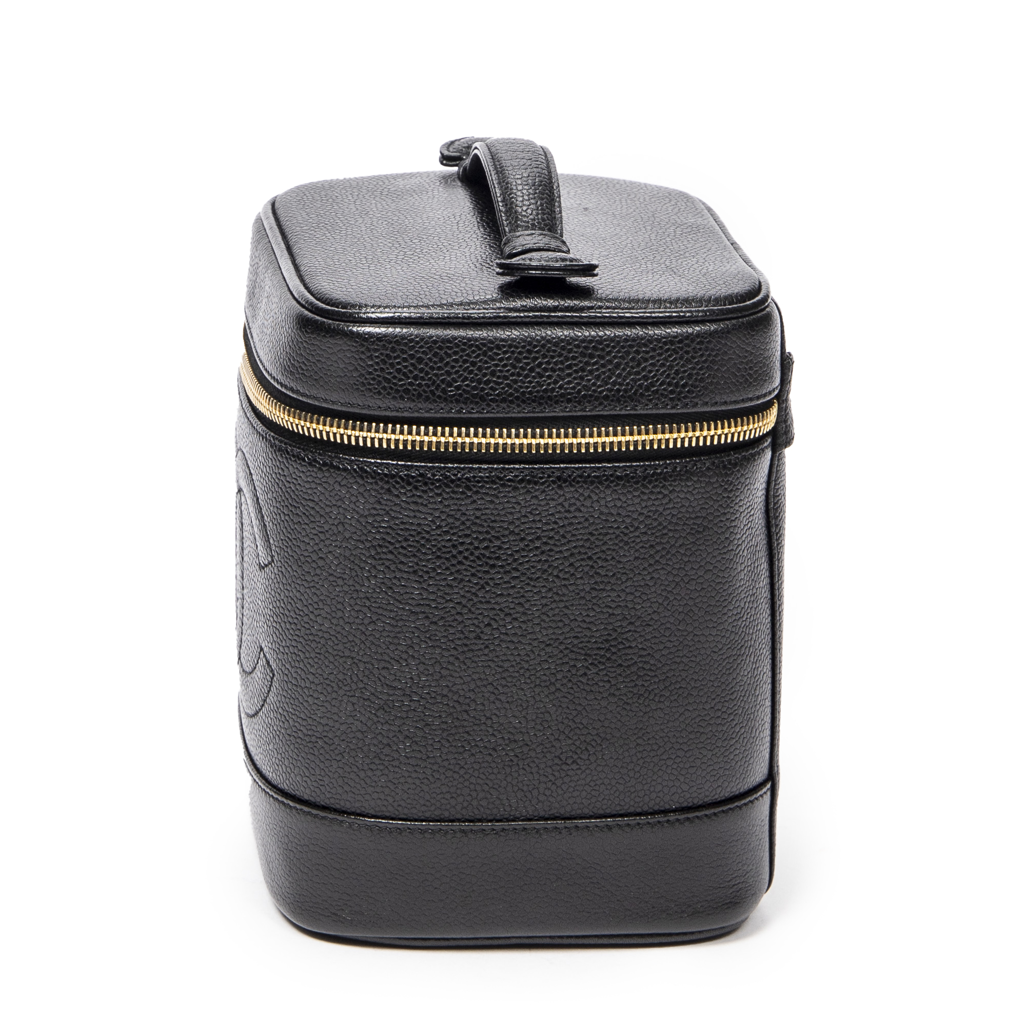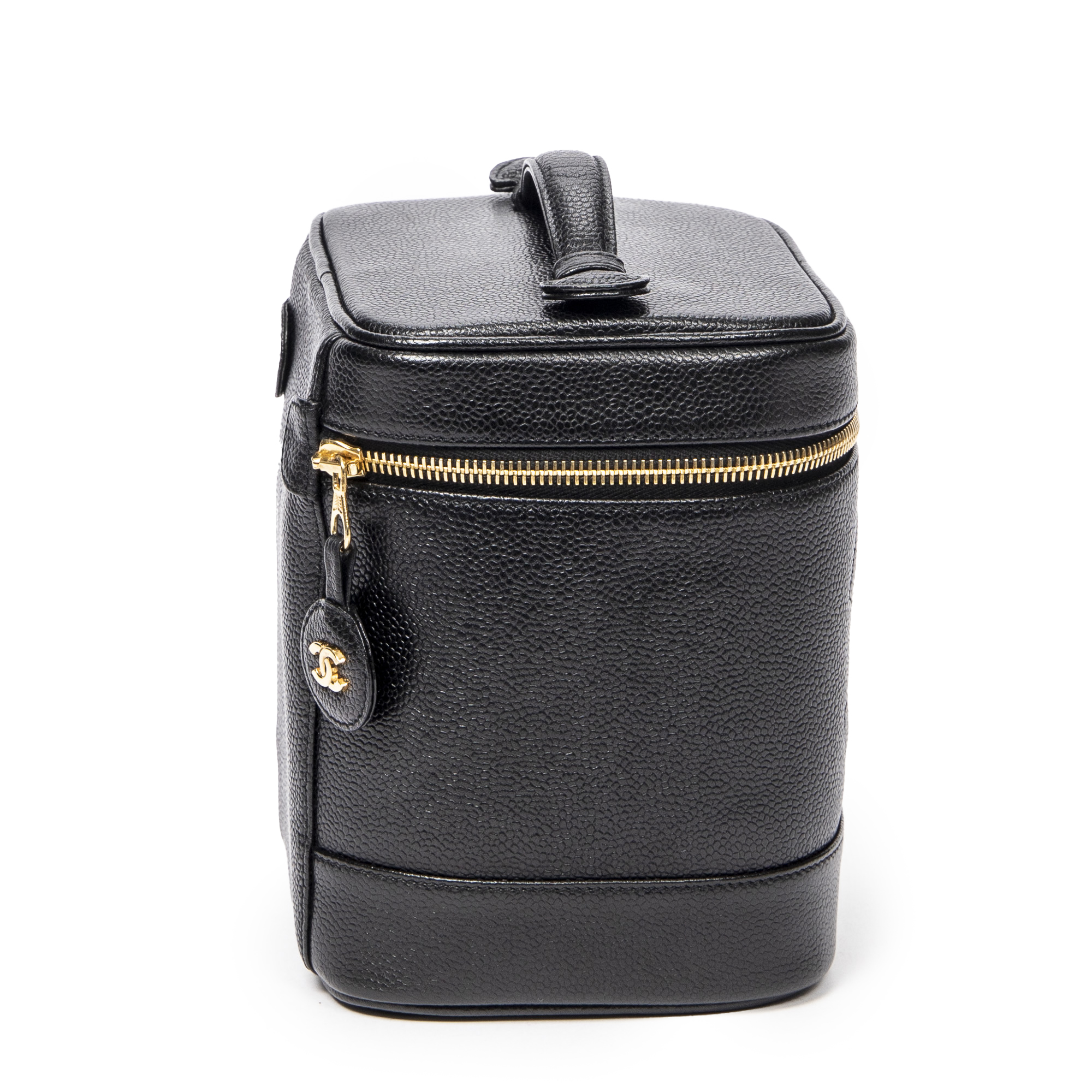 Chanel Handbag Timeless Tall Vanity Case in Black Caviar Leather and Gold hardware. The product is in Perfect Condition (AA).