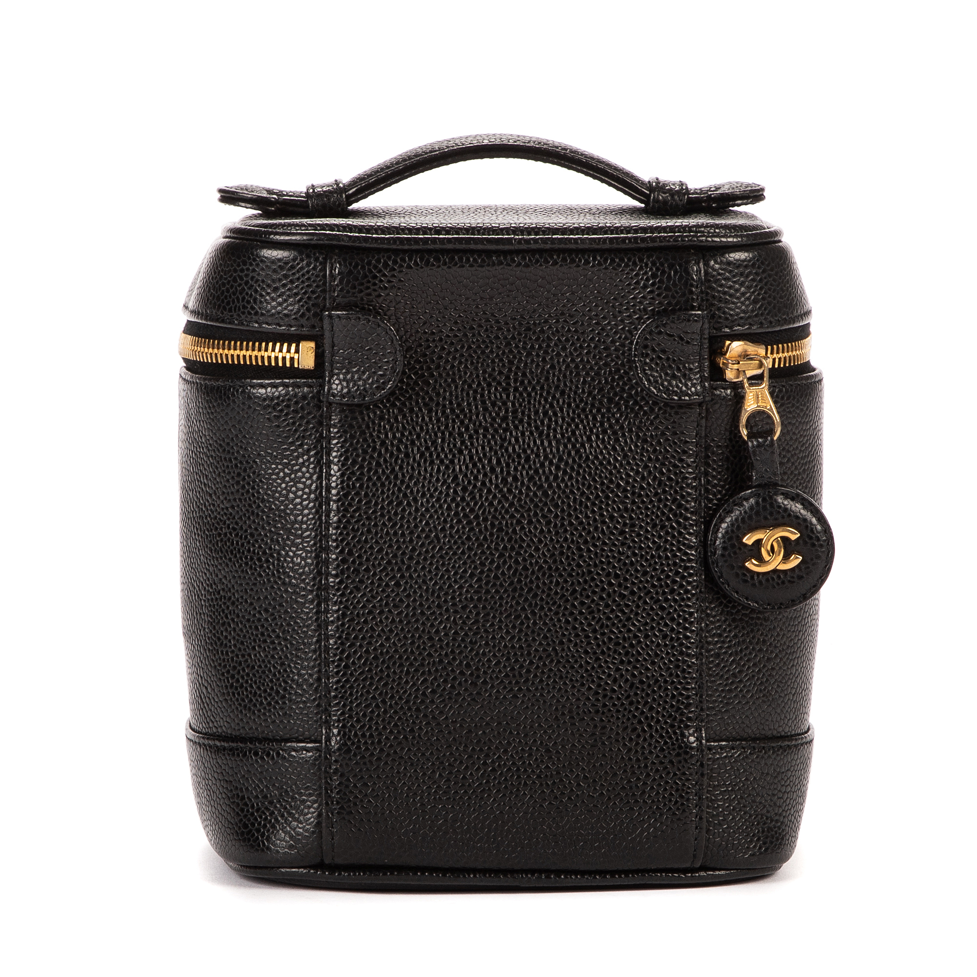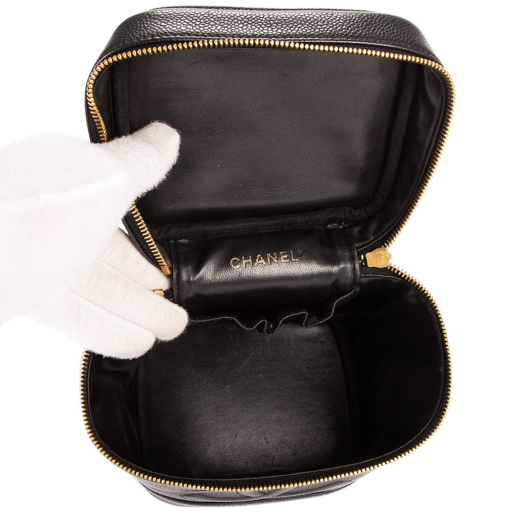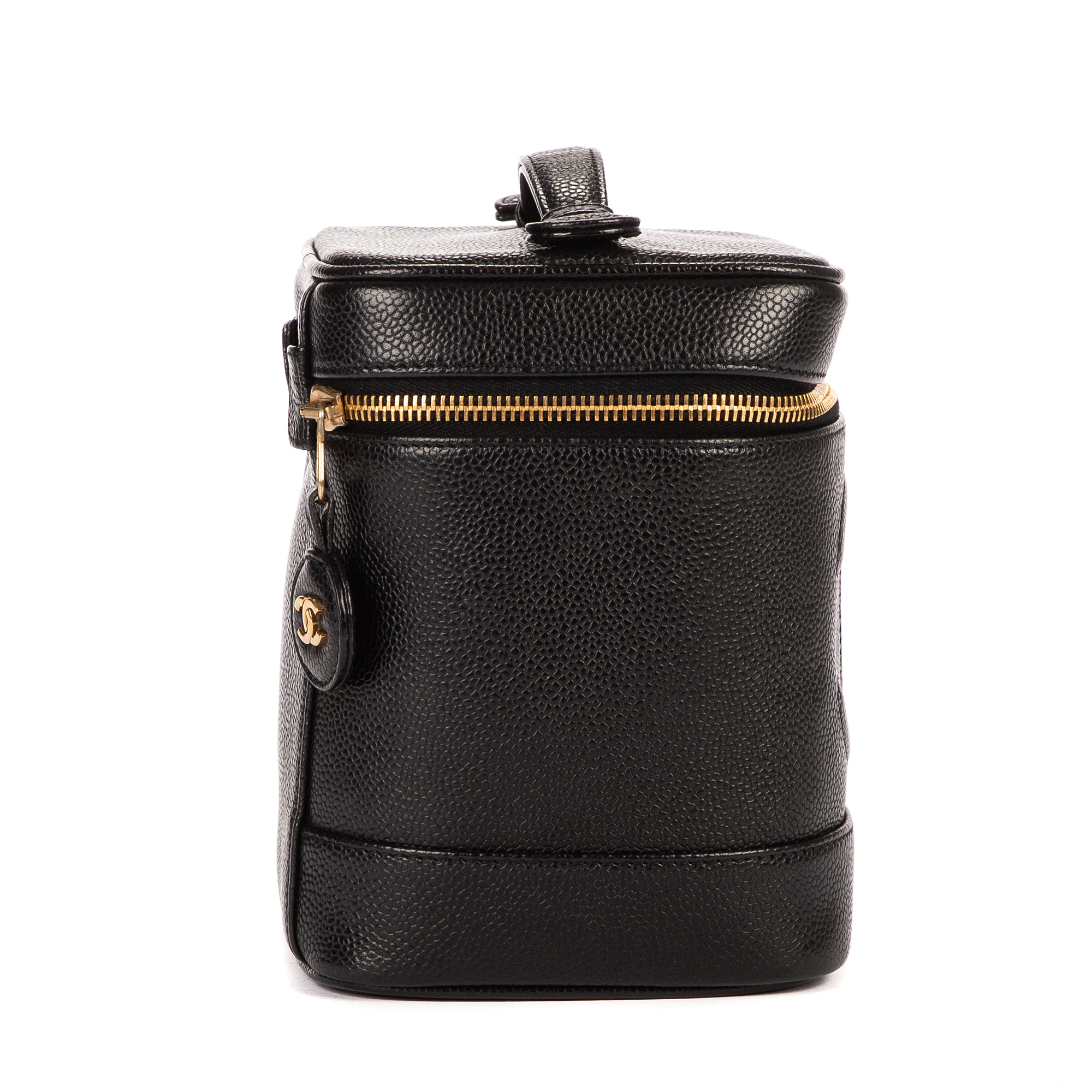 Chanel Handbag Timeless Tall Vanity Case in Black Caviar Leather and Gold hardware. The product is in Excellent Condition (A).