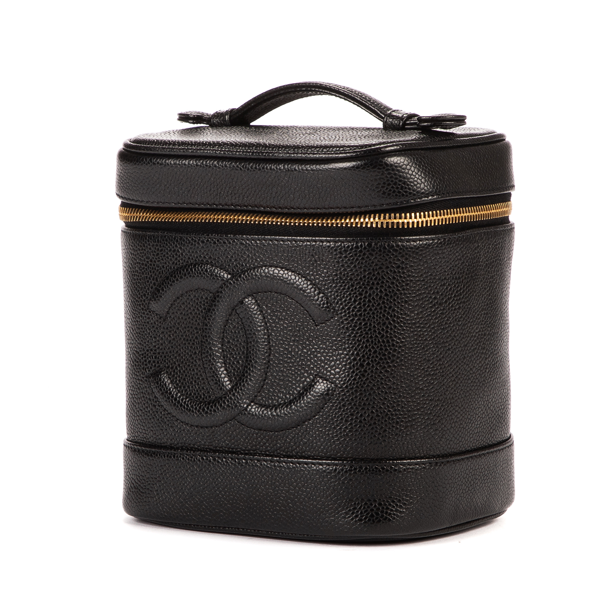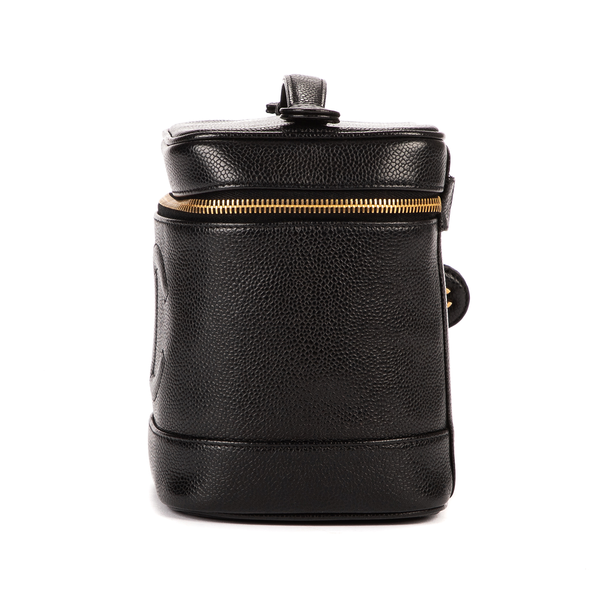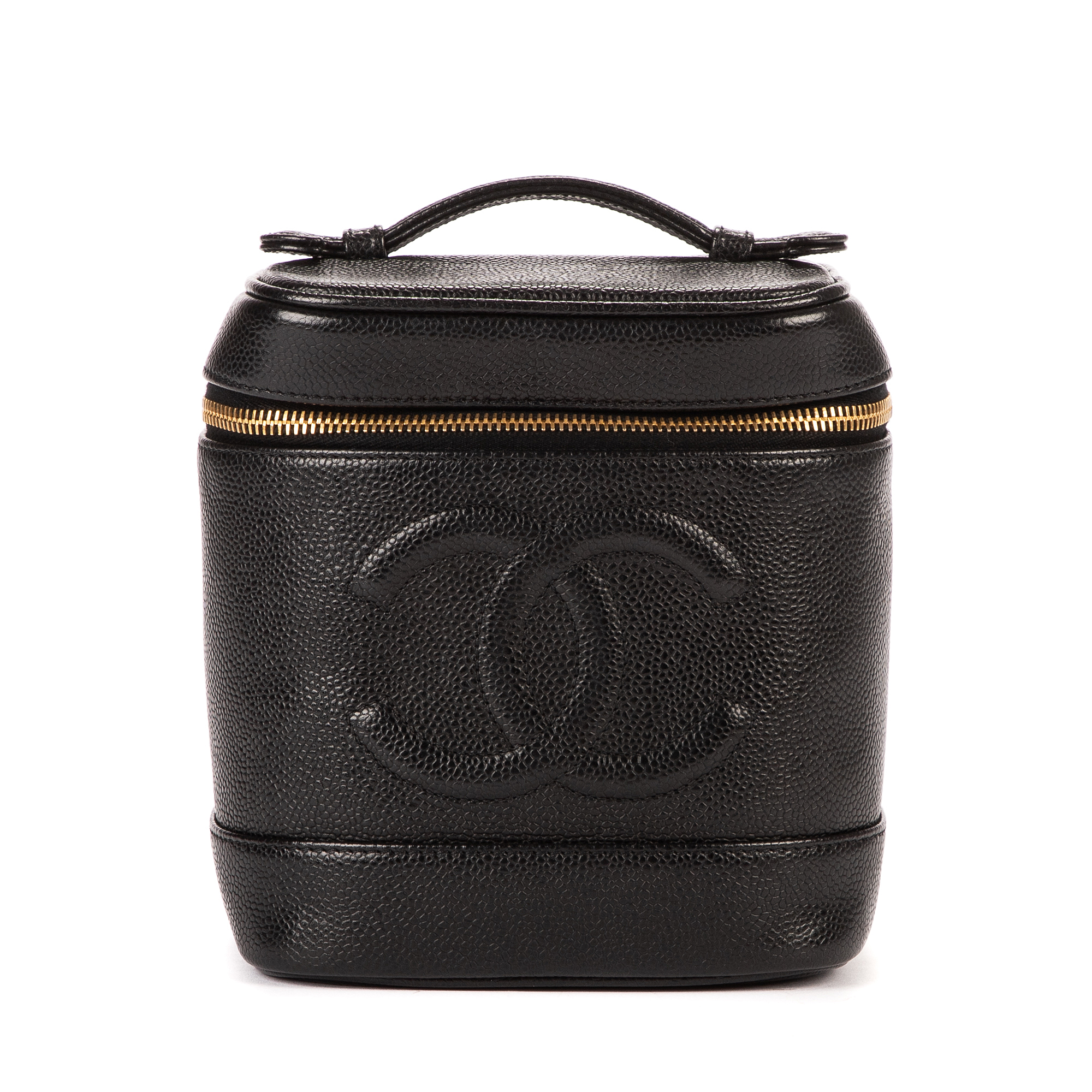 Chanel Handbag Timeless Tall Vanity Case in Black Caviar Leather and Gold hardware. The product is in Excellent Condition (A).