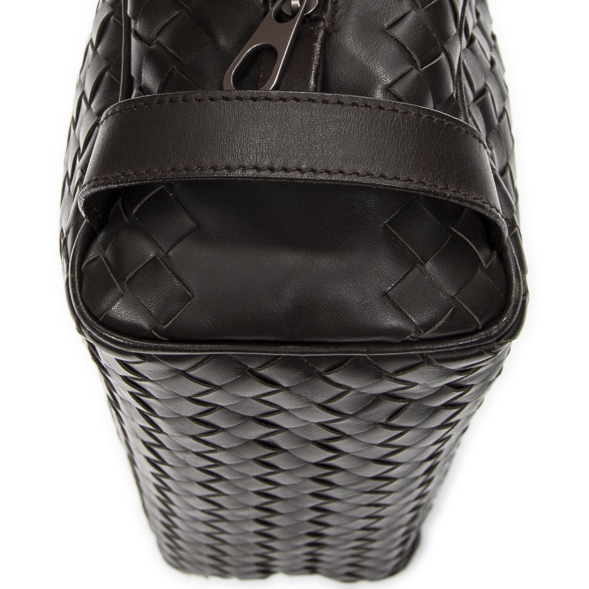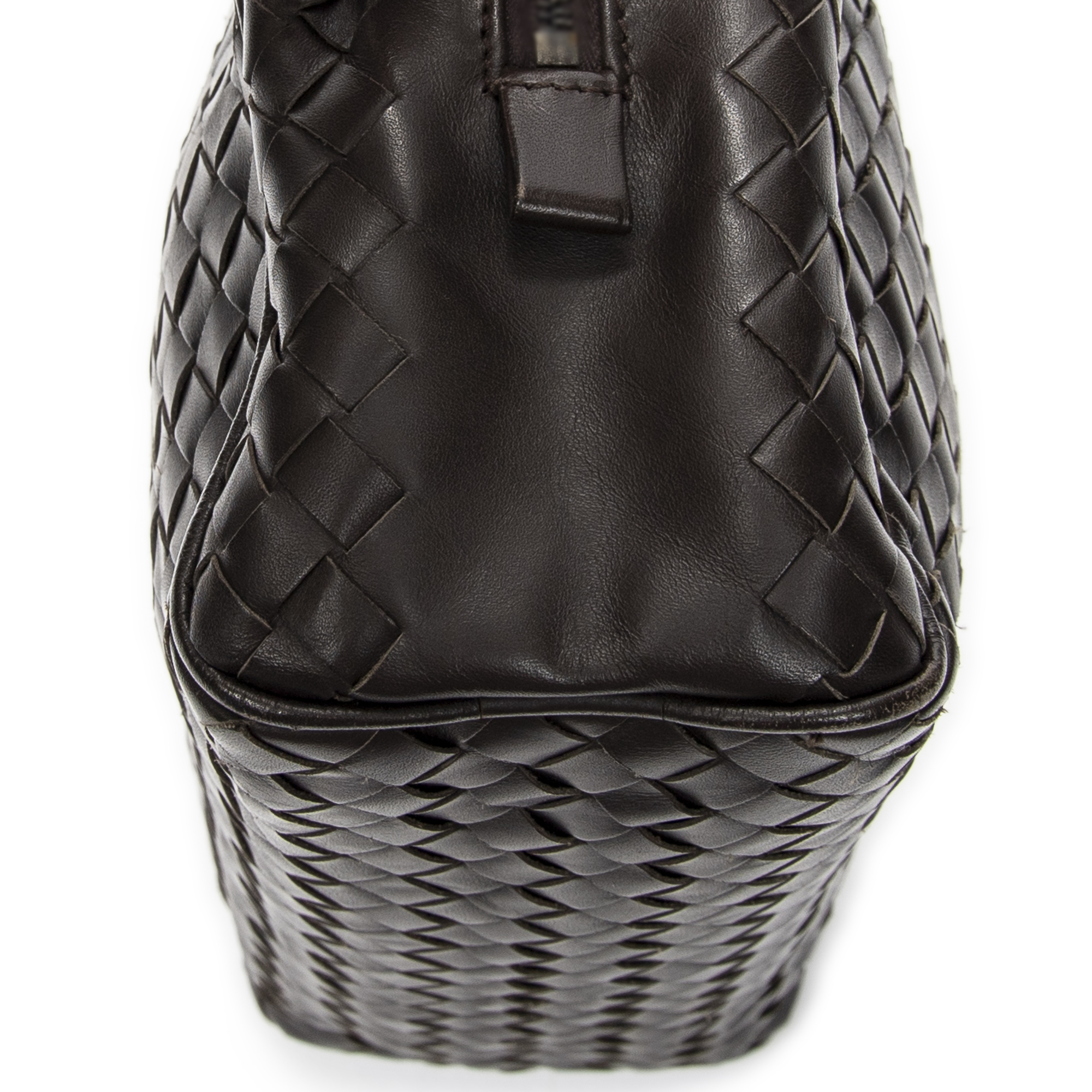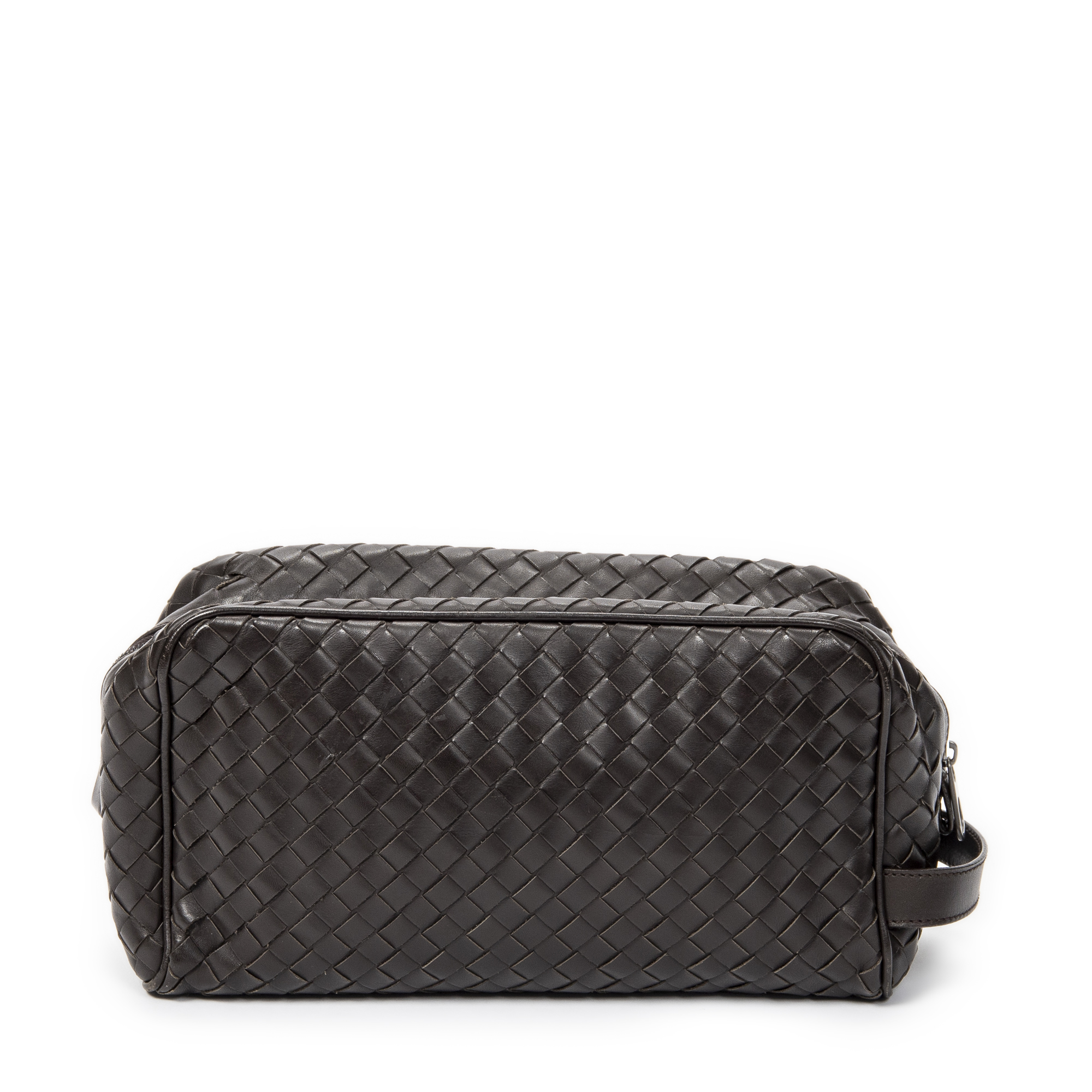 Bottega Veneta Handbag Toiletry Pouch in Brown Intrecciato Leather and Aged Brass hardware. The product is in Excellent Condition (A).