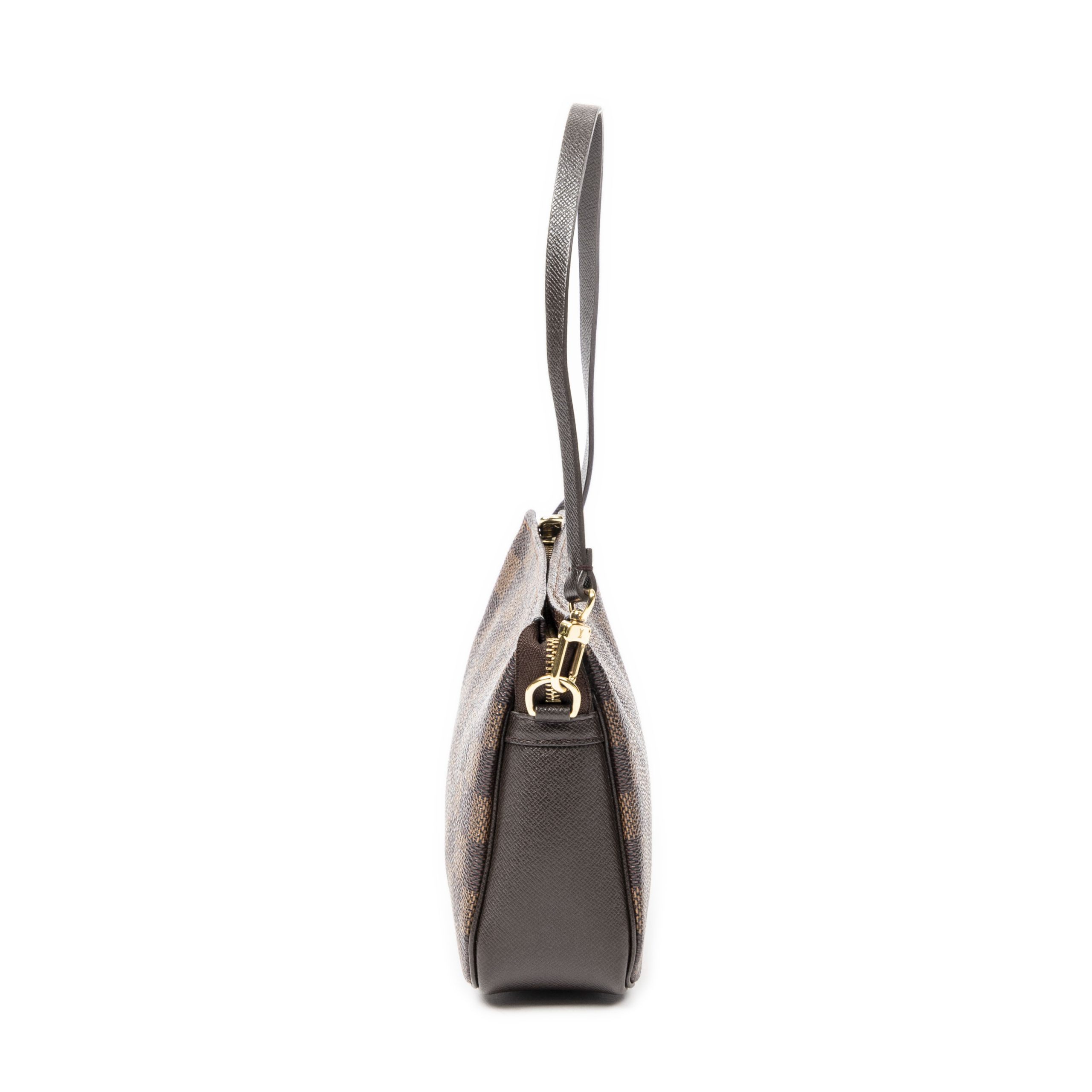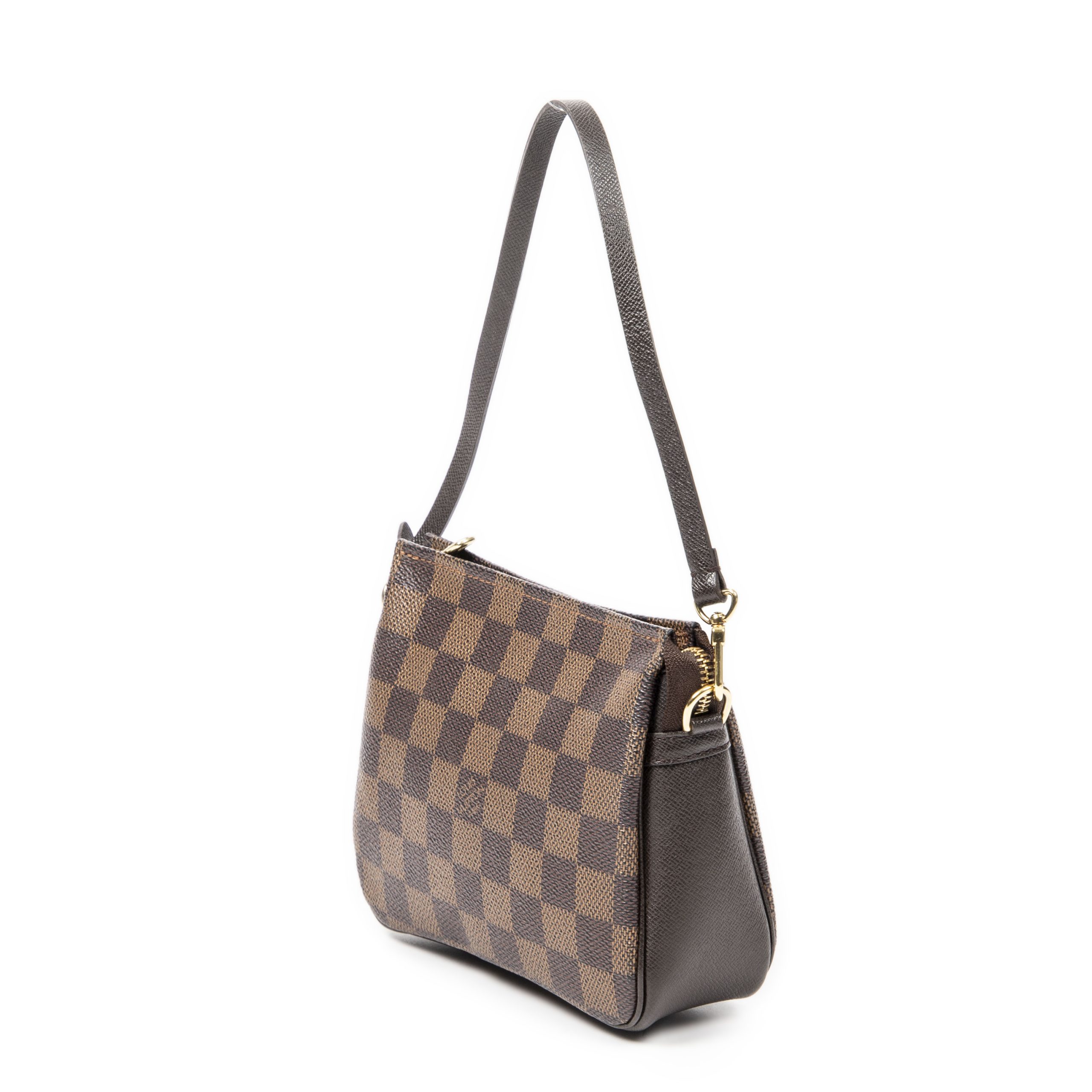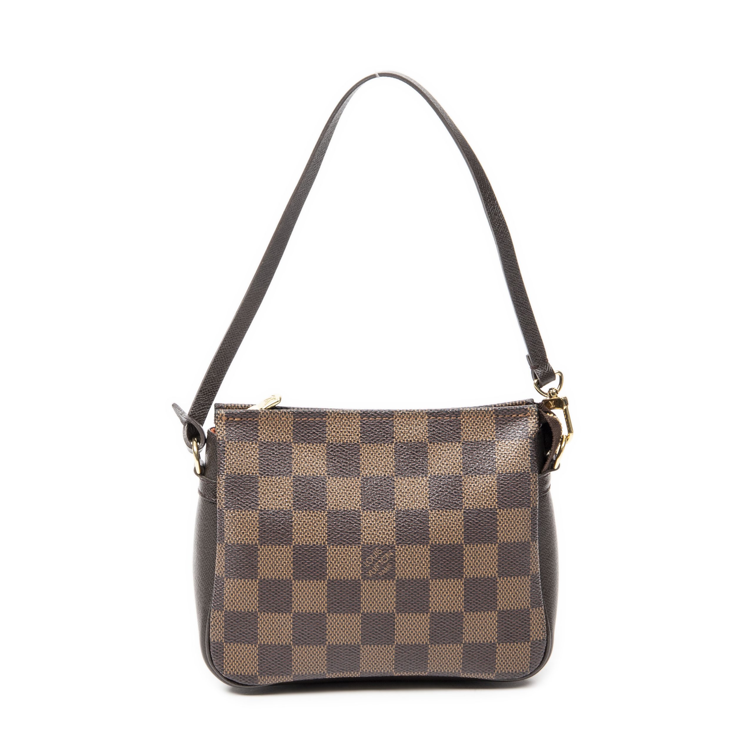 Louis Vuitton Handbag Trousse Make Up Pochette in Brown Damier Ebene and Golden Brass hardware. The product is in Perfect Condition (AA).