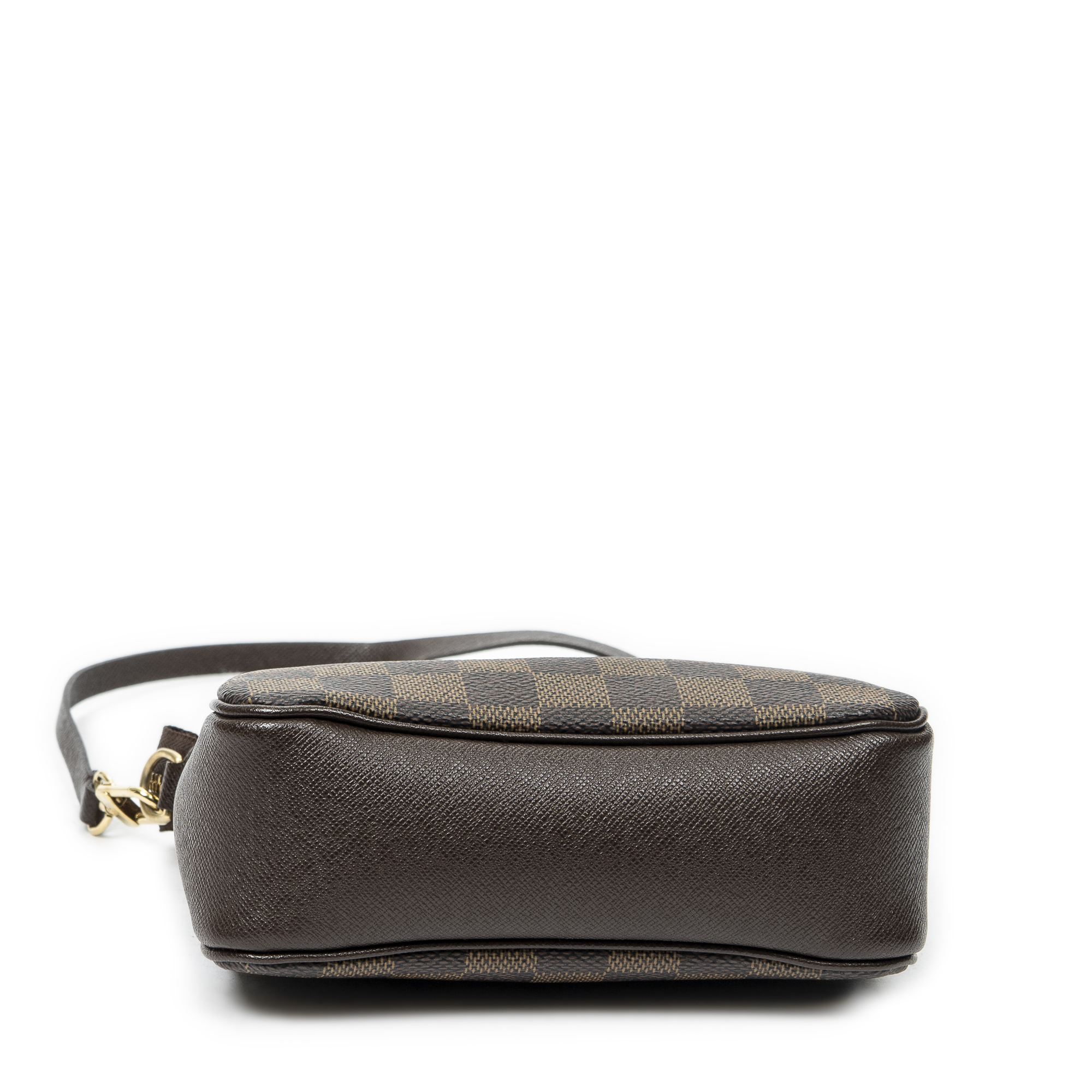 Louis Vuitton Pouch Trousse Make Up Pouch in Brown Damier Ebene and Golden Brass hardware. The product is in Perfect Condition (AA).