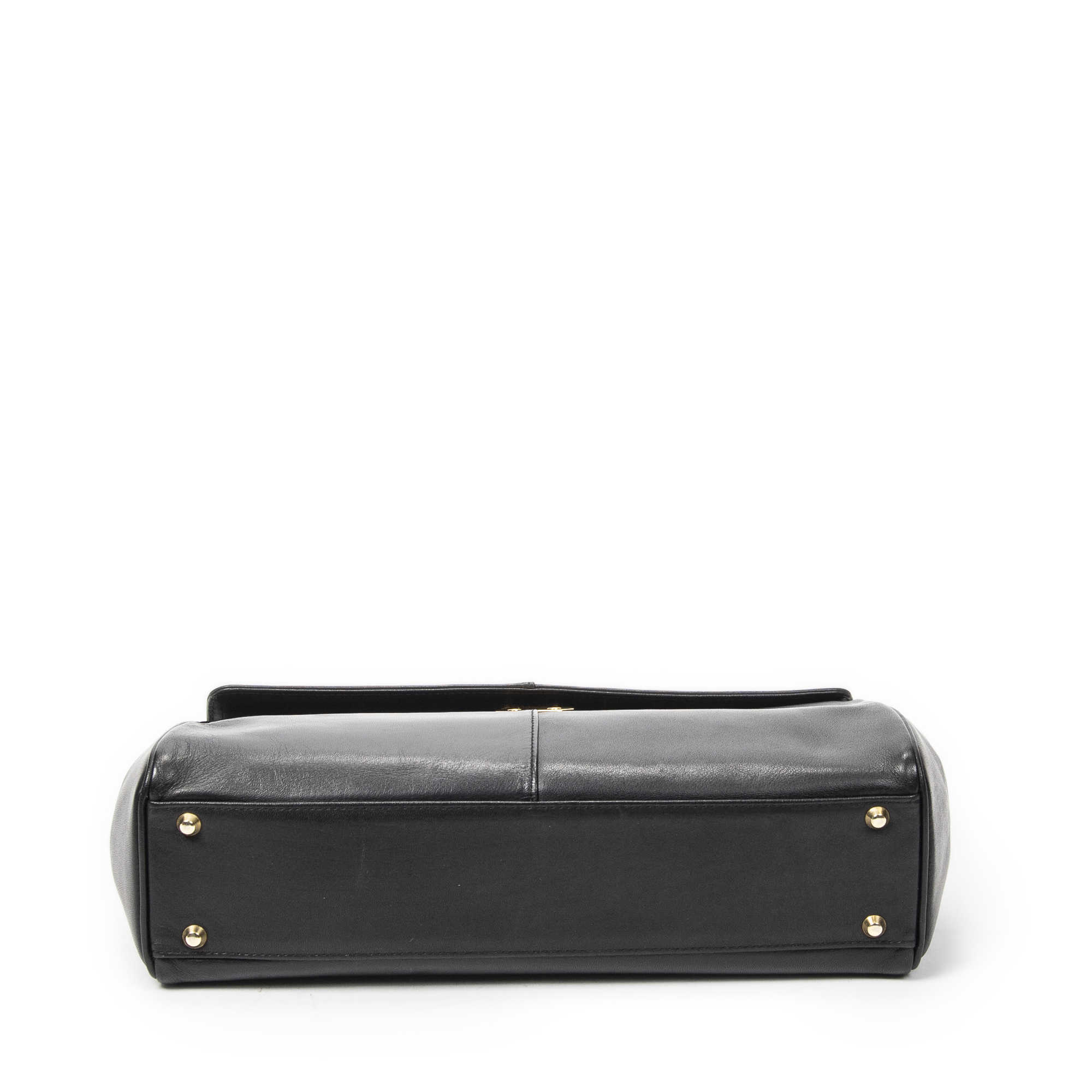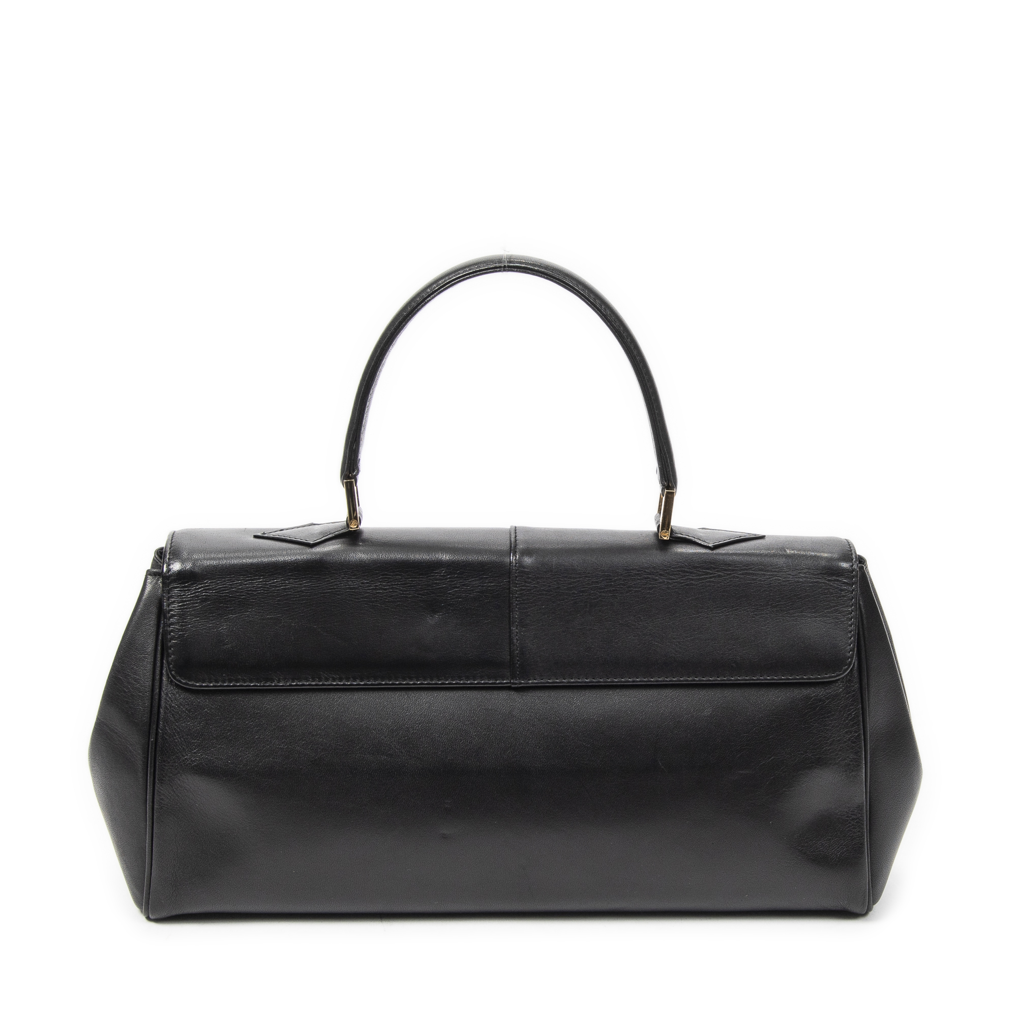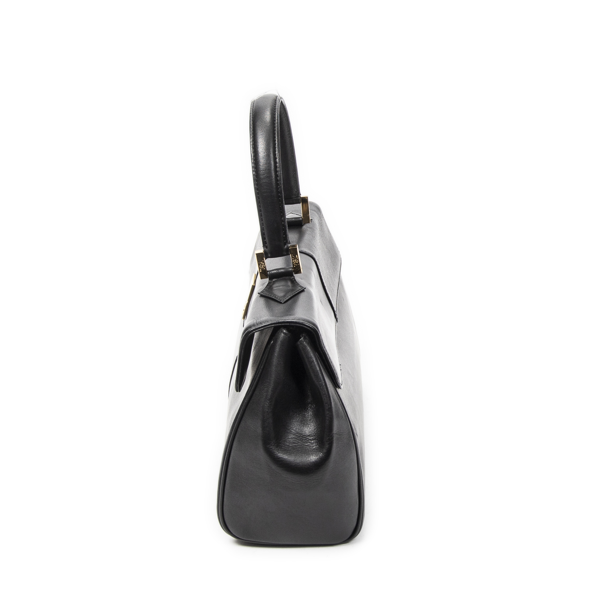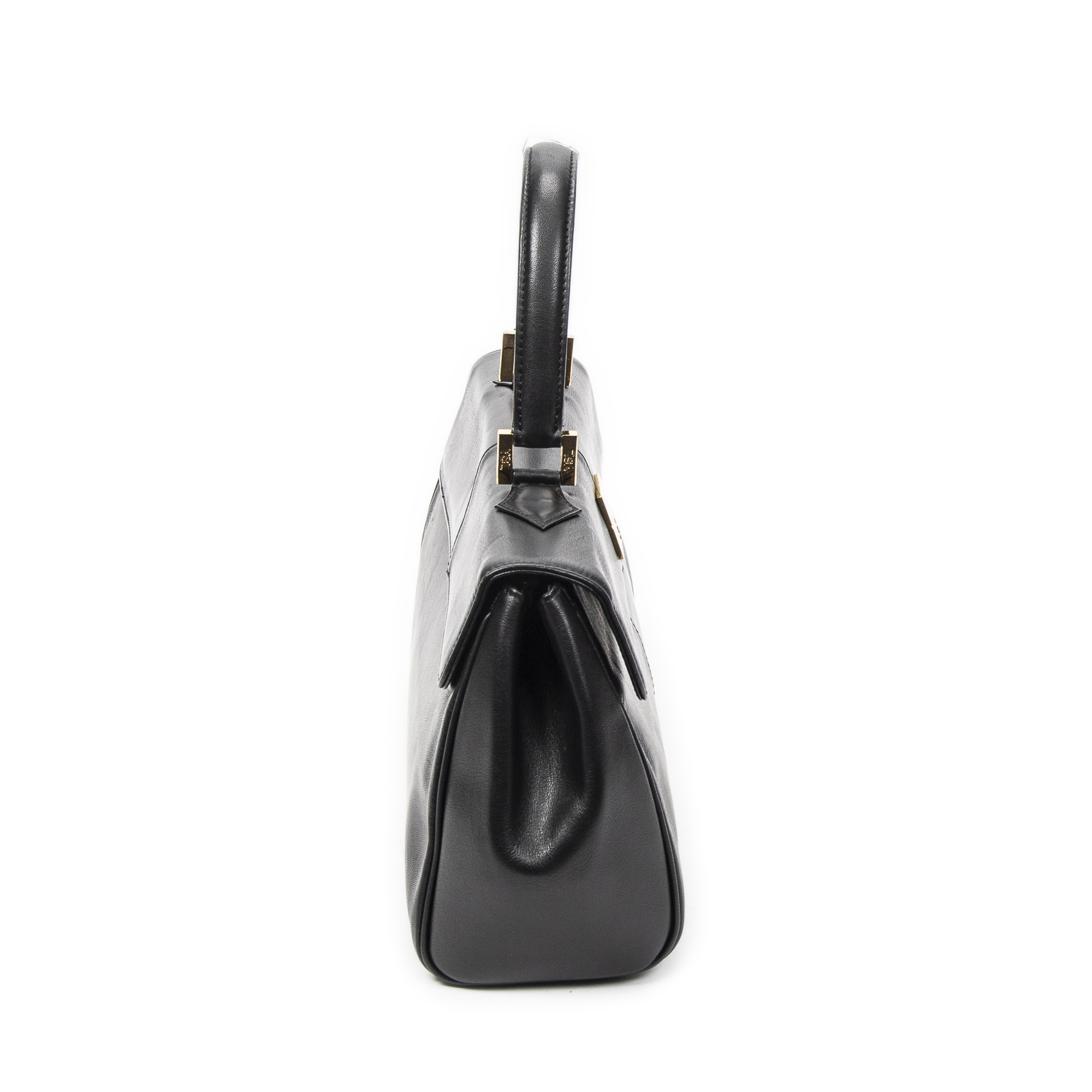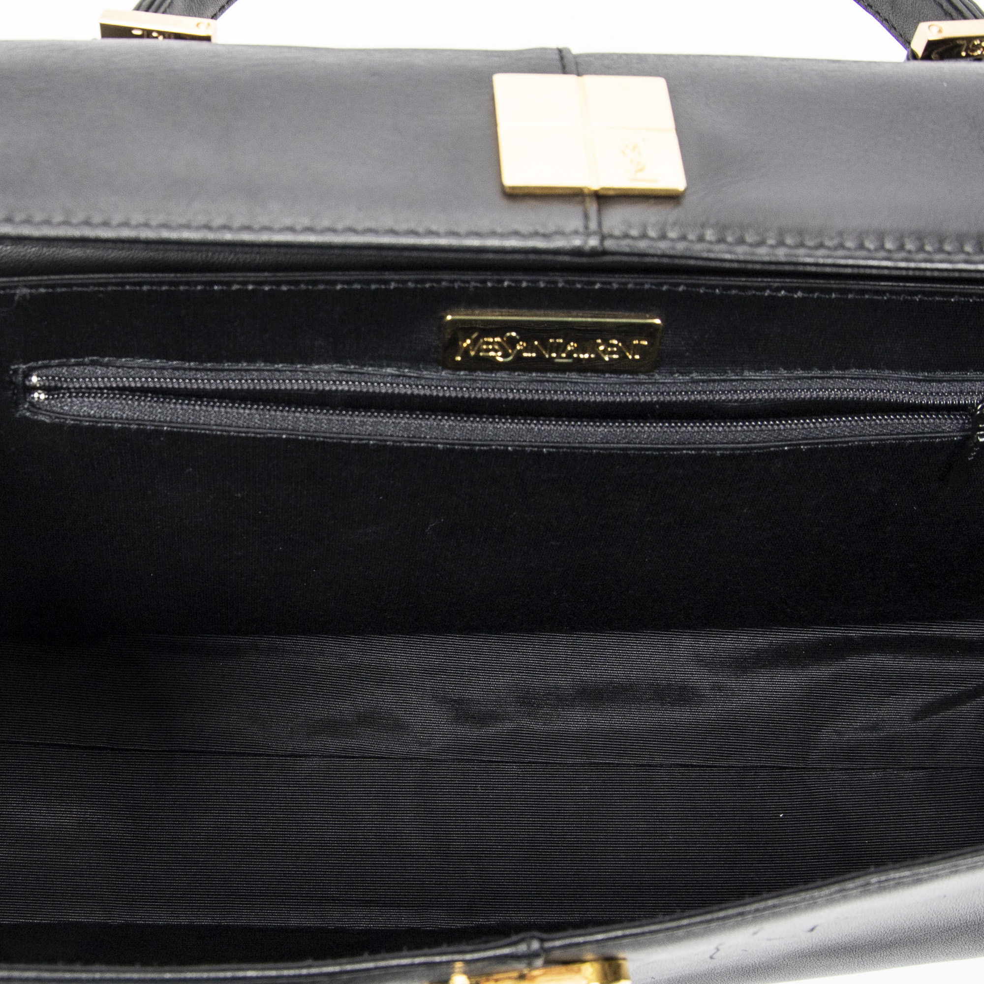 Yves Saint Laurent Handbag Vintage Rectangular Flap Top Handle in Black Calfskin Leather and Gold hardware. The product is in Very Good Condition (AB).