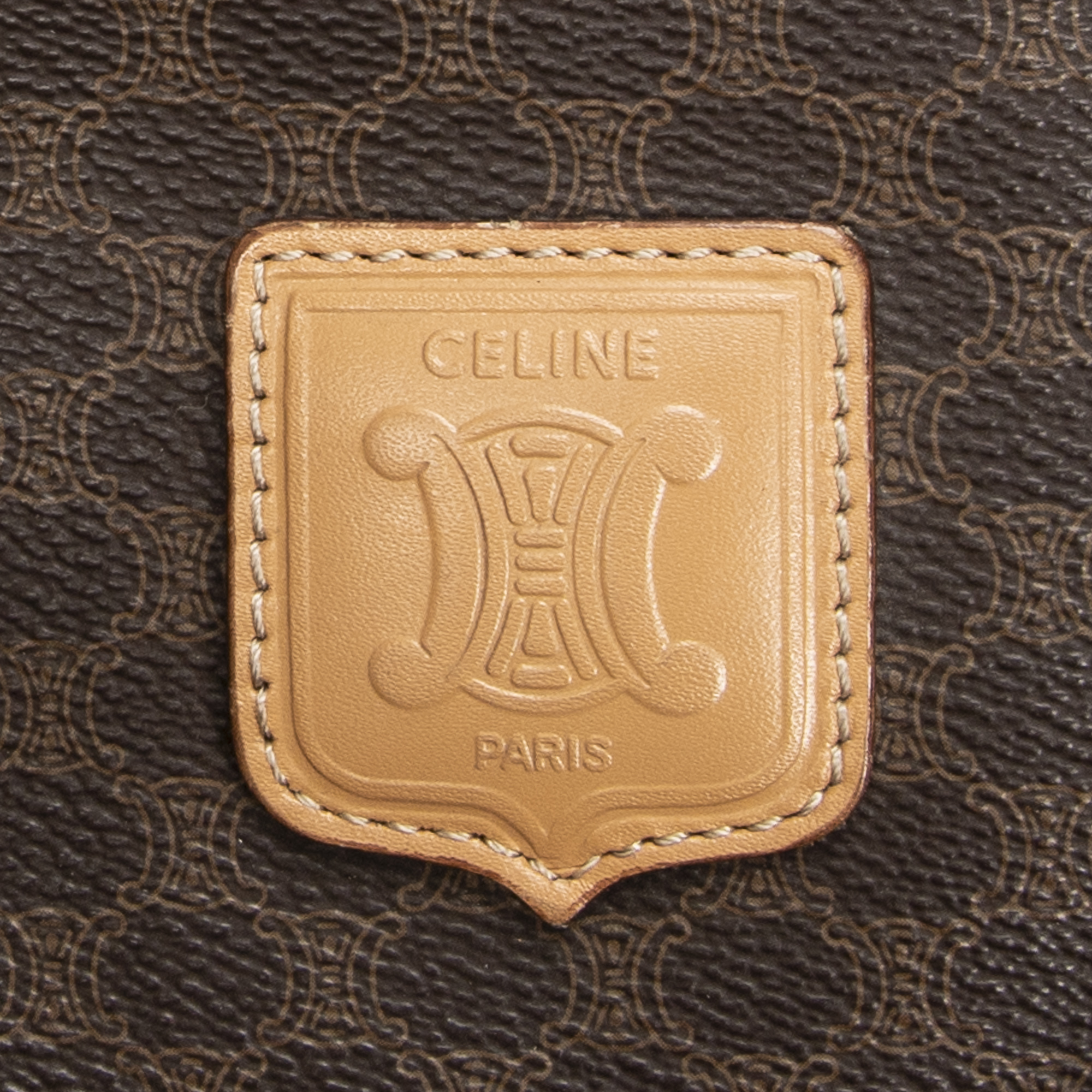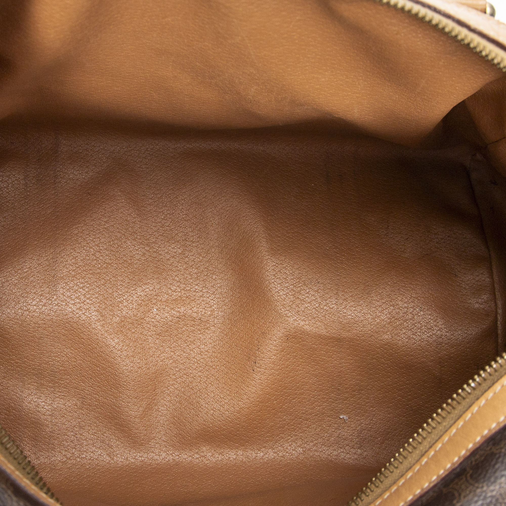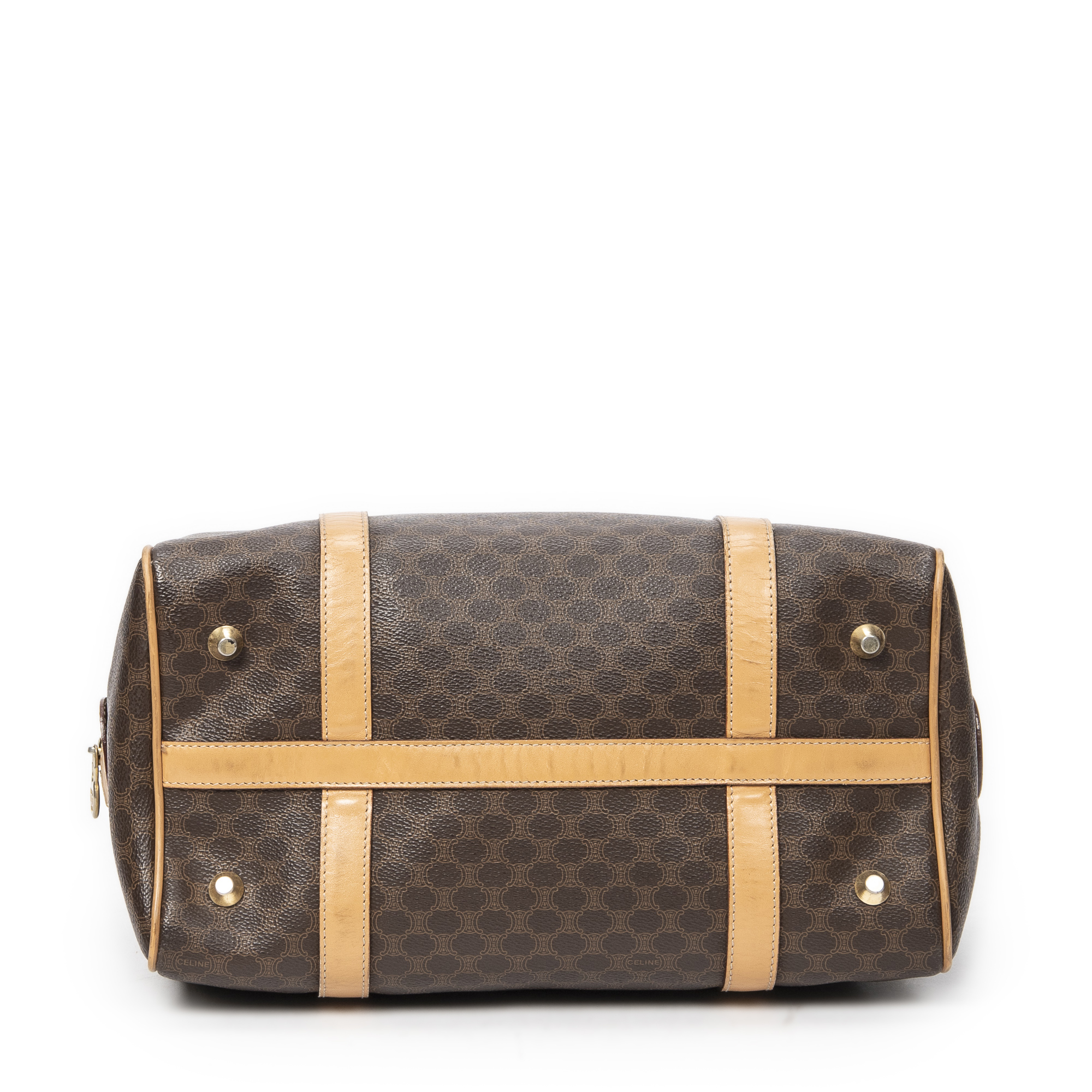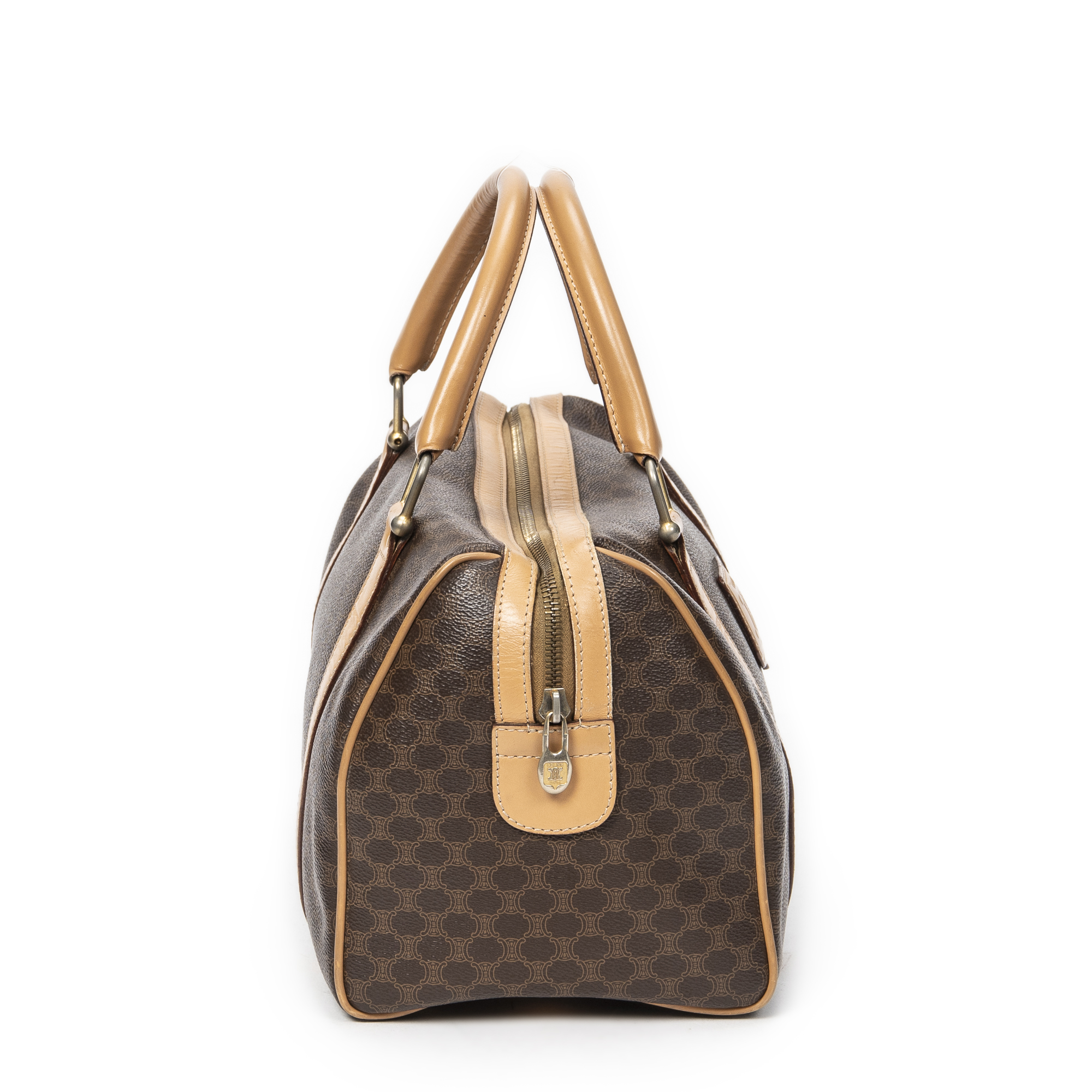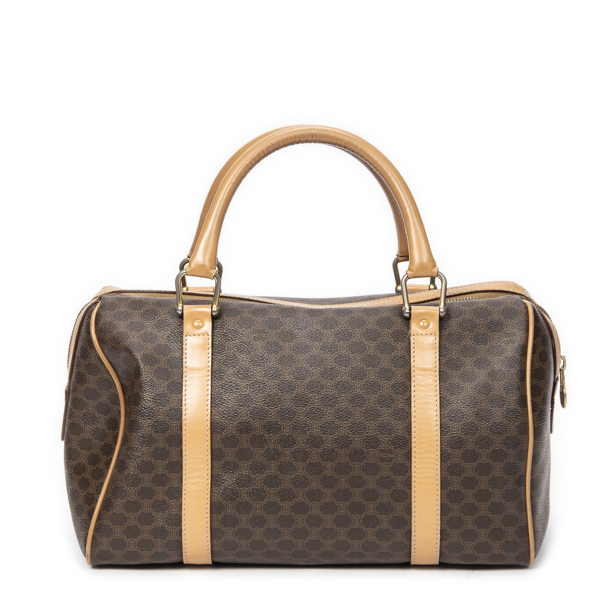 Celine Handbag Vintage Small Boston in Brown/Beige Macadam Coated Canvas and Gold hardware. The product is in Very Good Condition (AB).