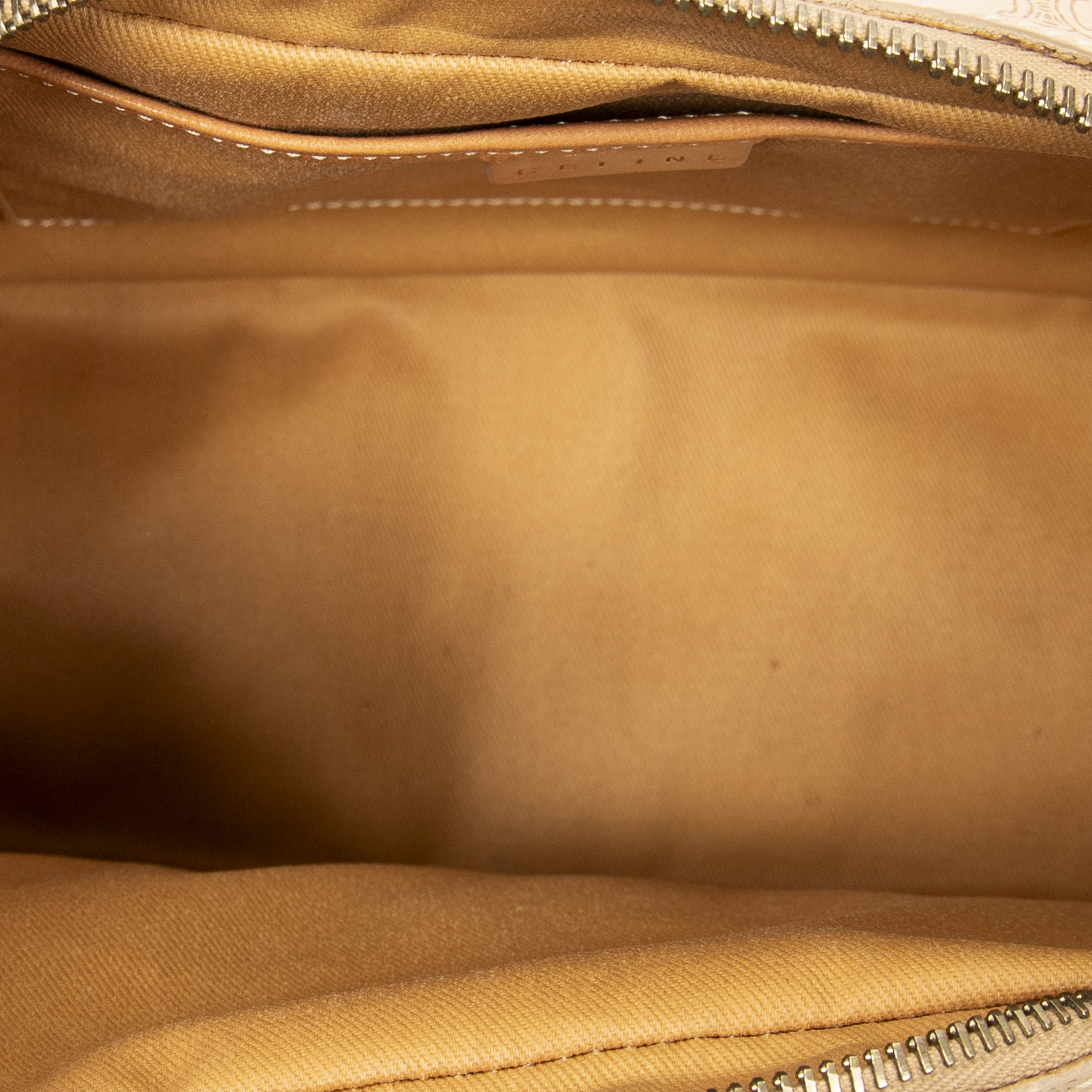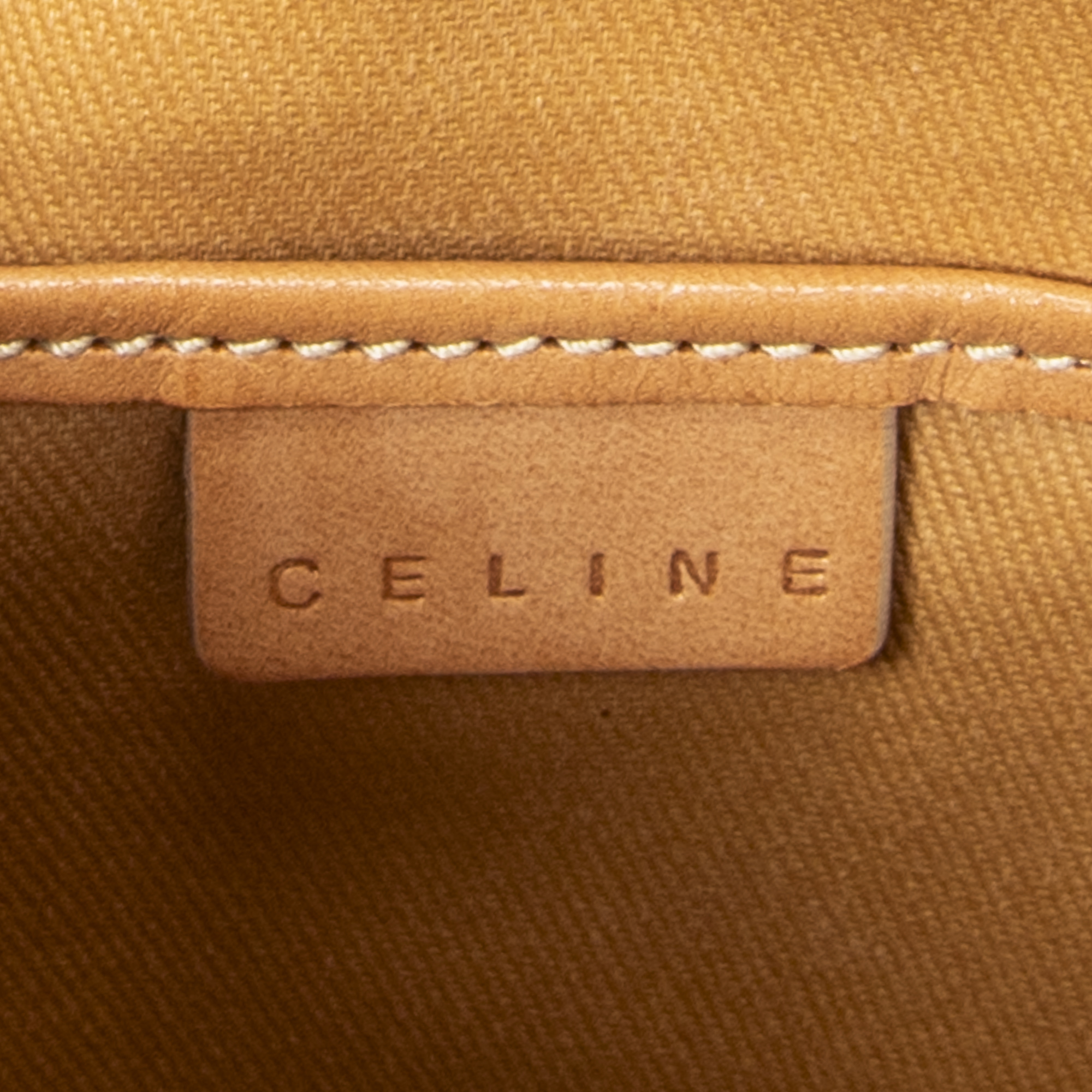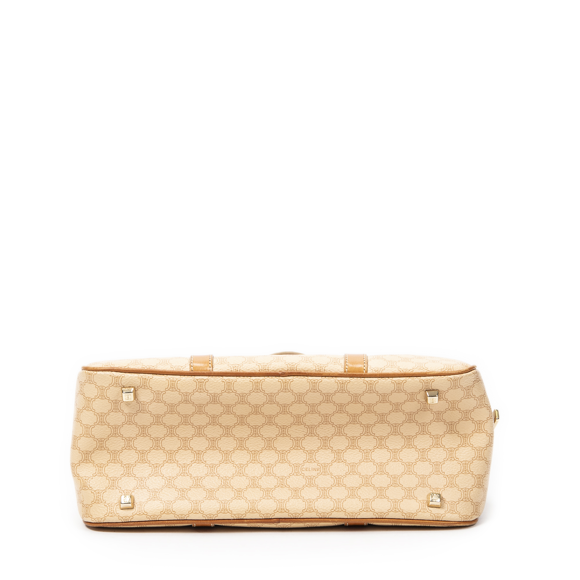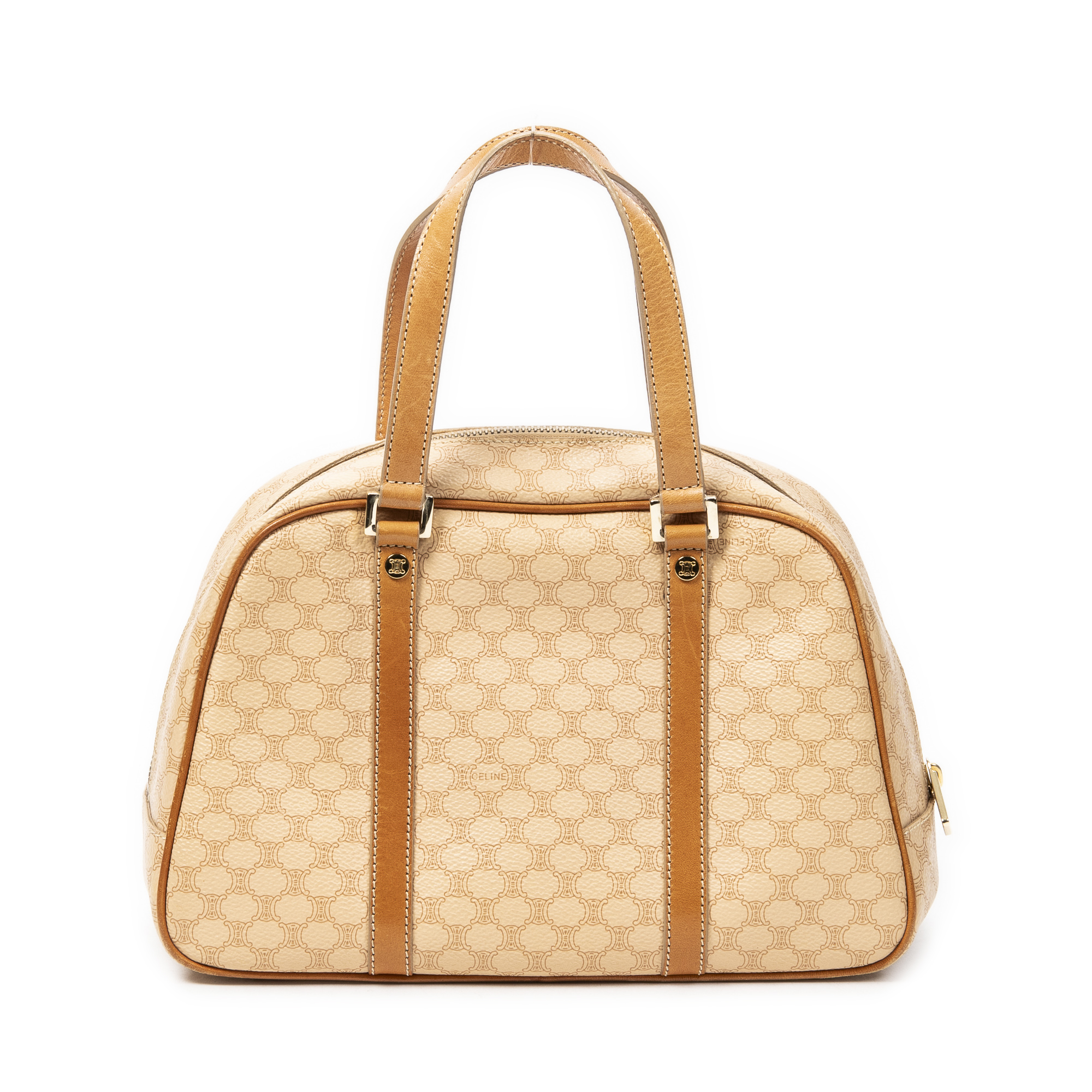 Celine Handbag Vintage Small Bowler Tote in Beige Macadam Coated Canvas and Gold hardware. The product is in Very Good Condition (AB).