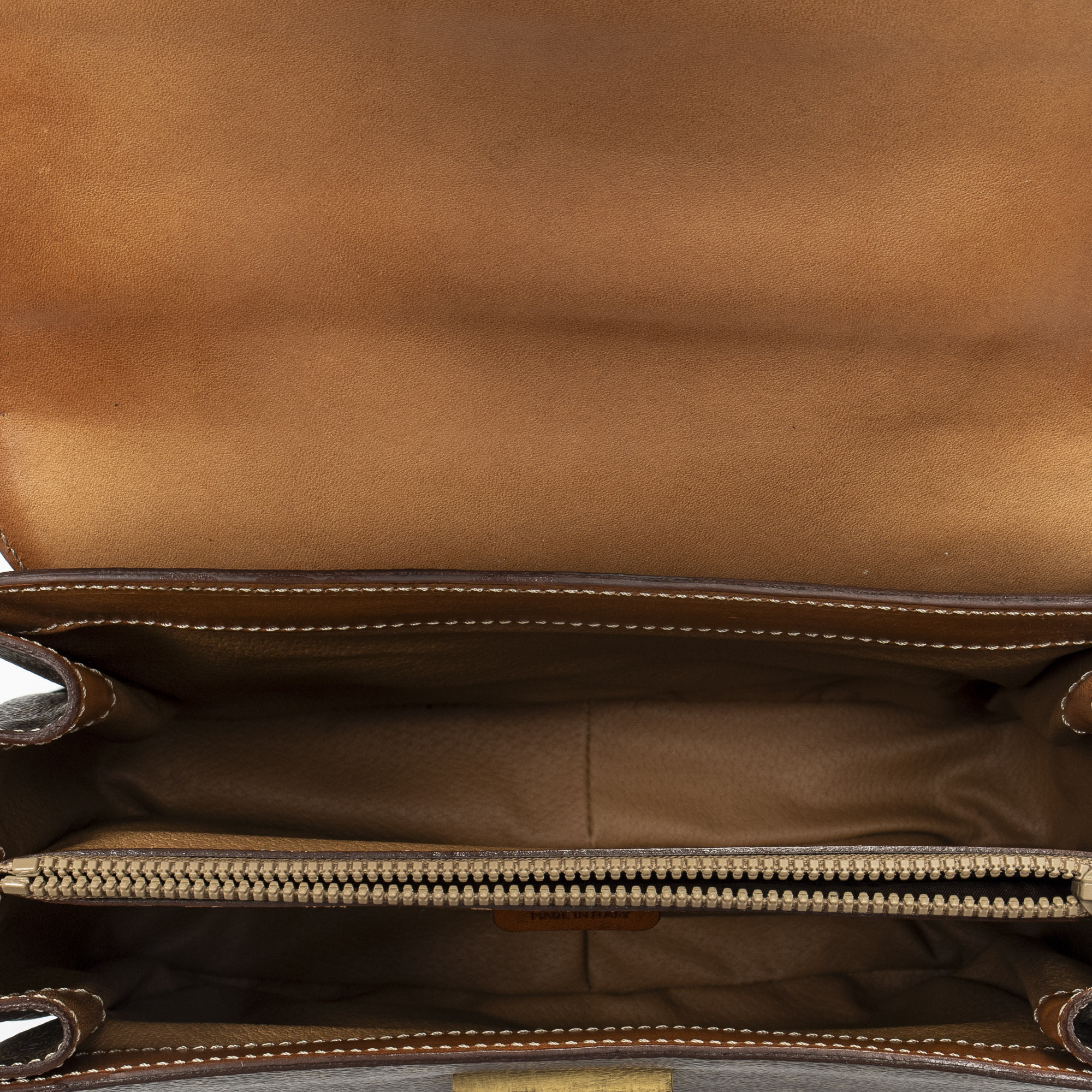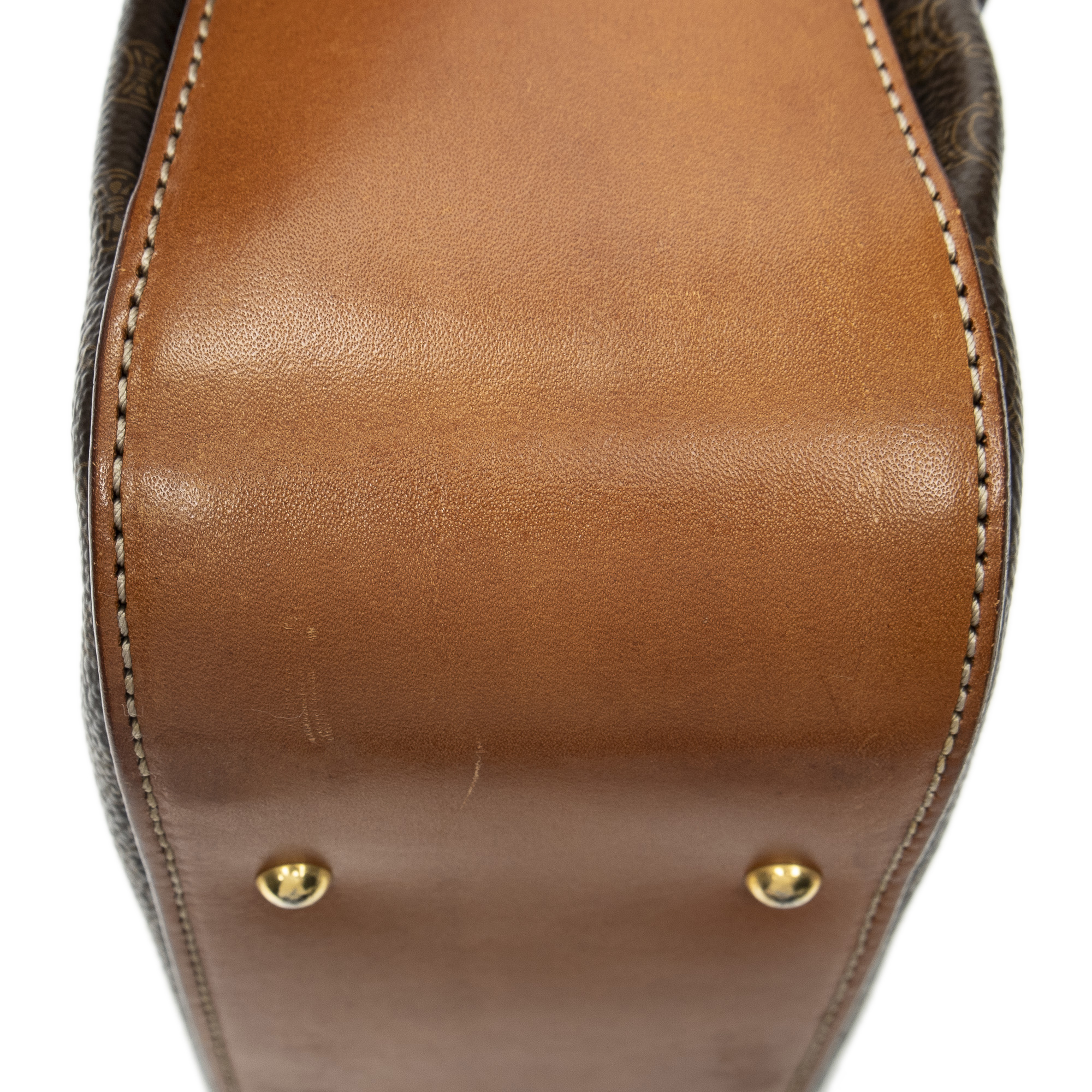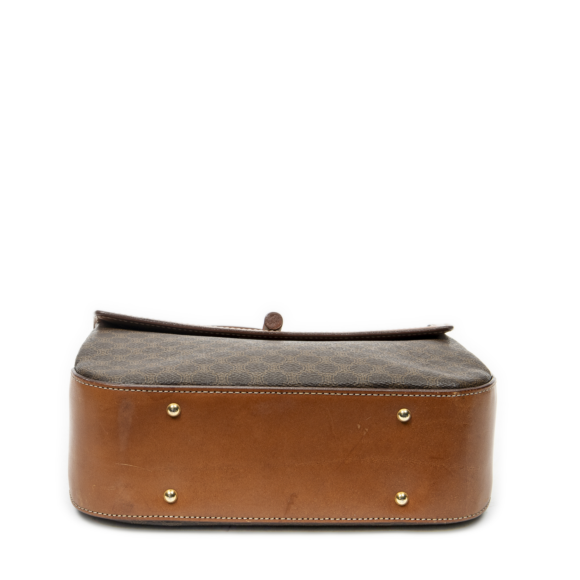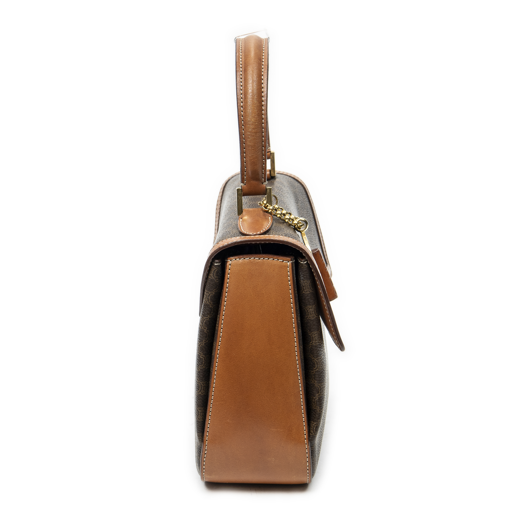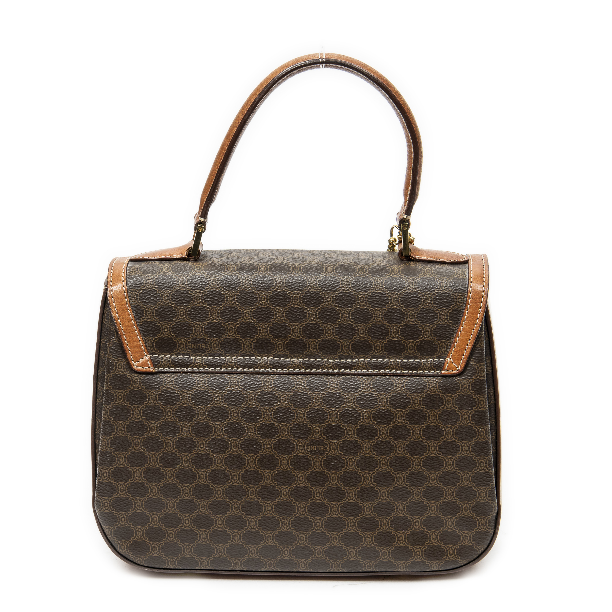 Celine Handbag Vintage Turnlock Top Handle in Brown Macadam Coated Canvas and Gold hardware. The product is in Excellent Condition (A).