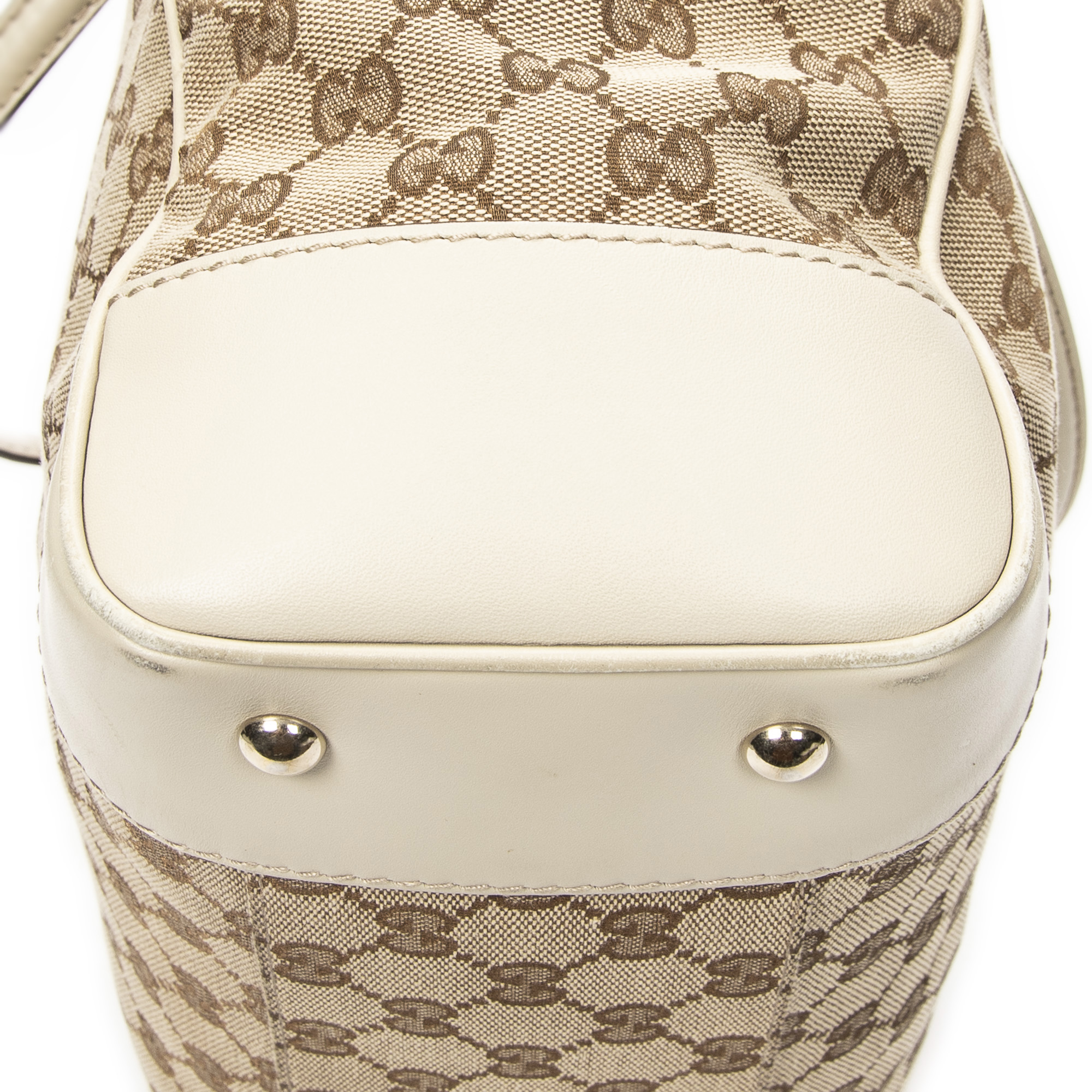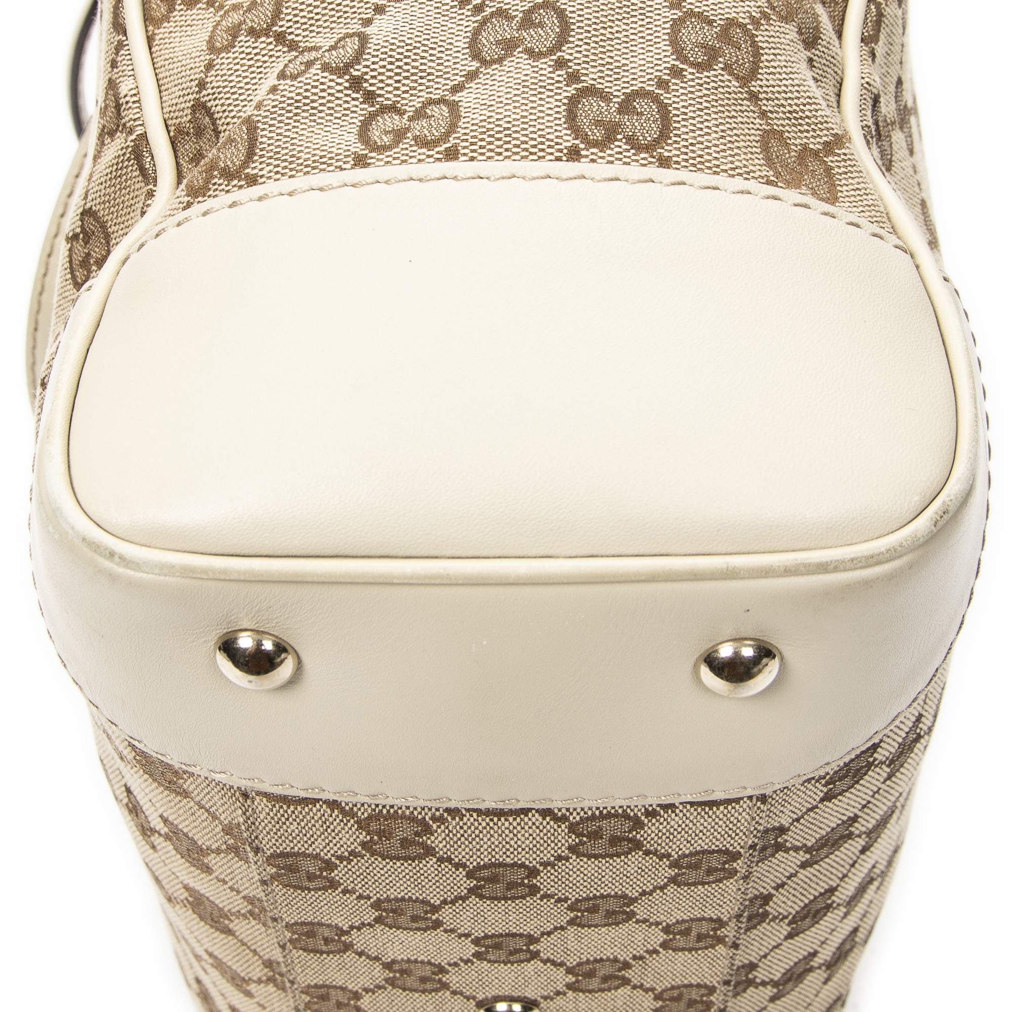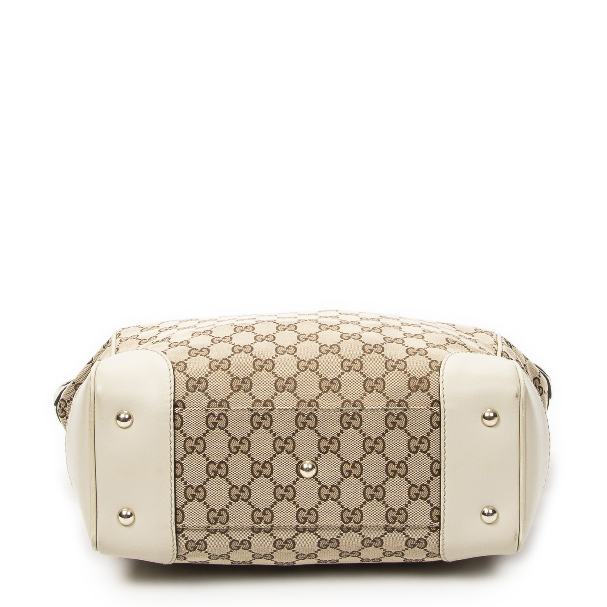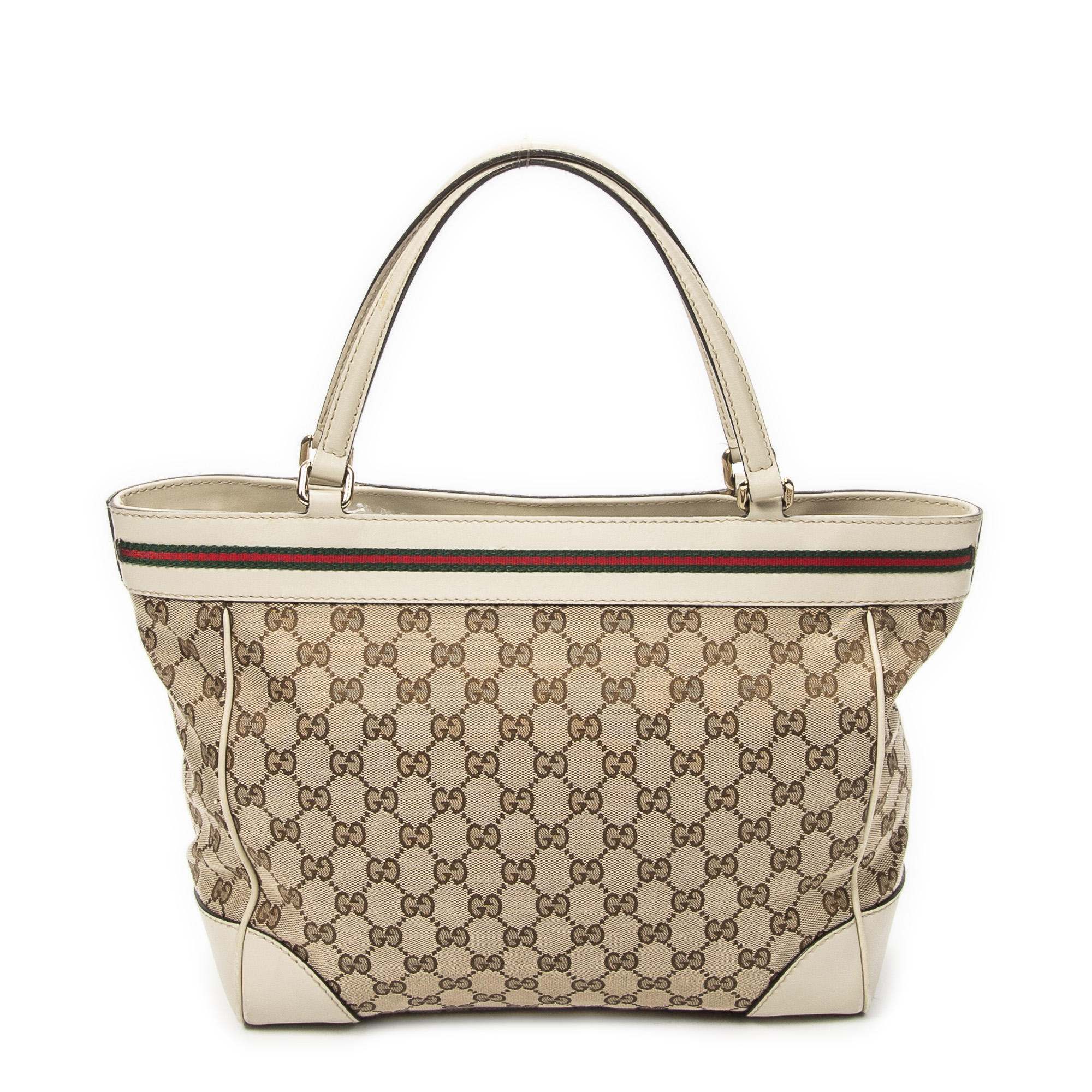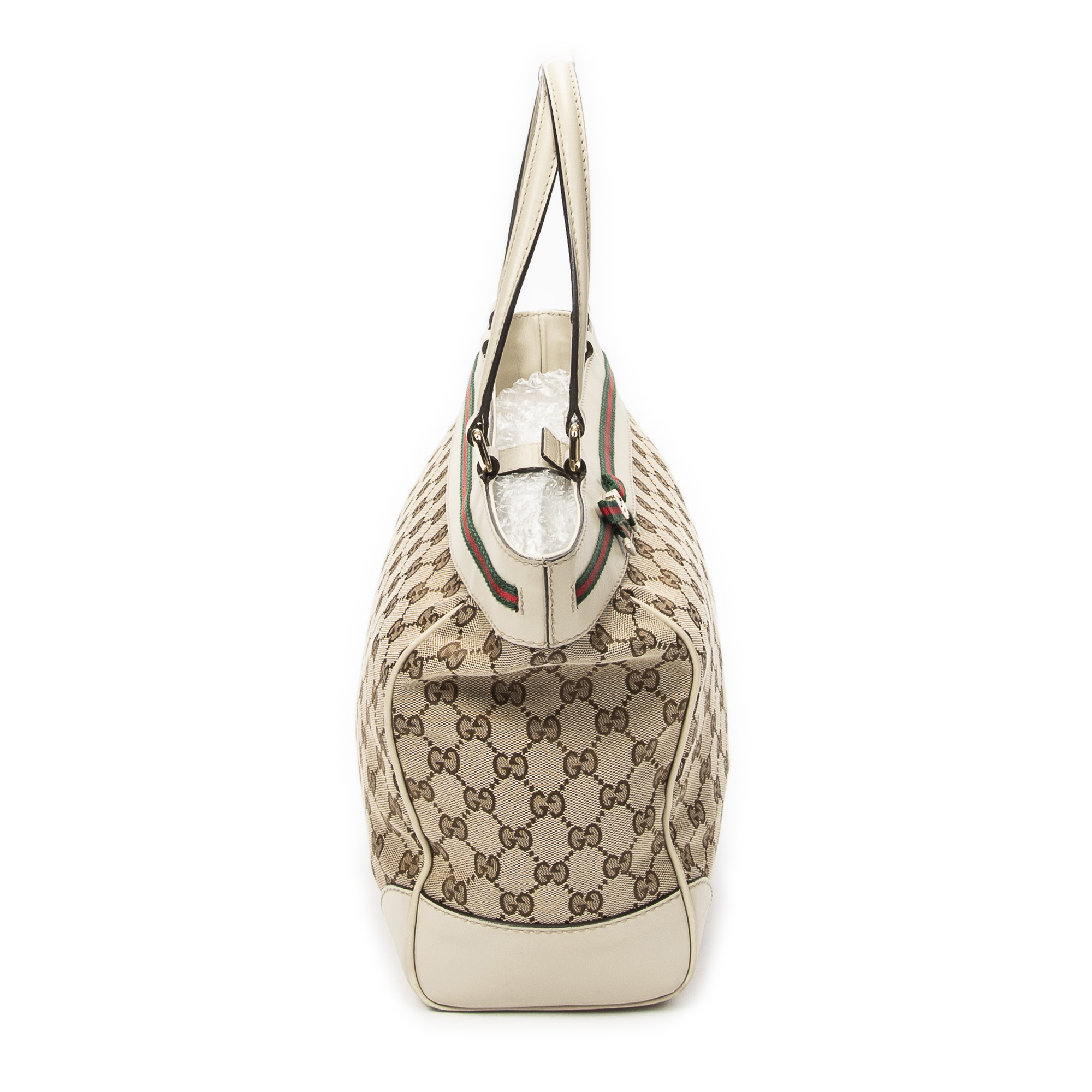 Gucci Handbag Web Mayfair Tote in Beige Monogrammed Canvas and Gold hardware. The product is in Very Good Condition (AB).