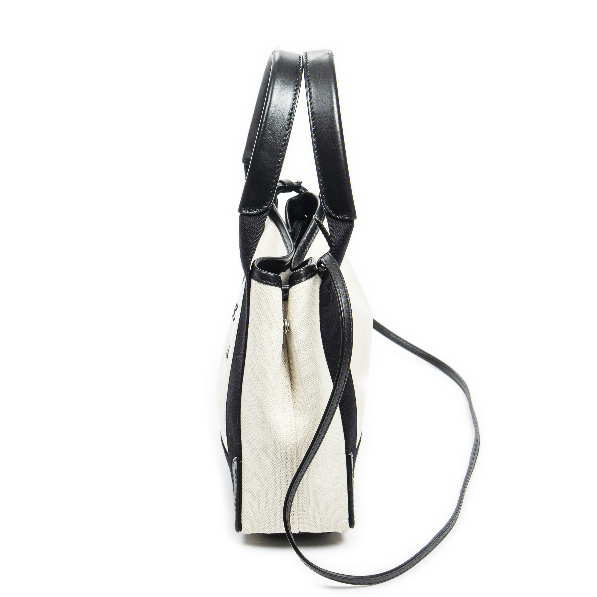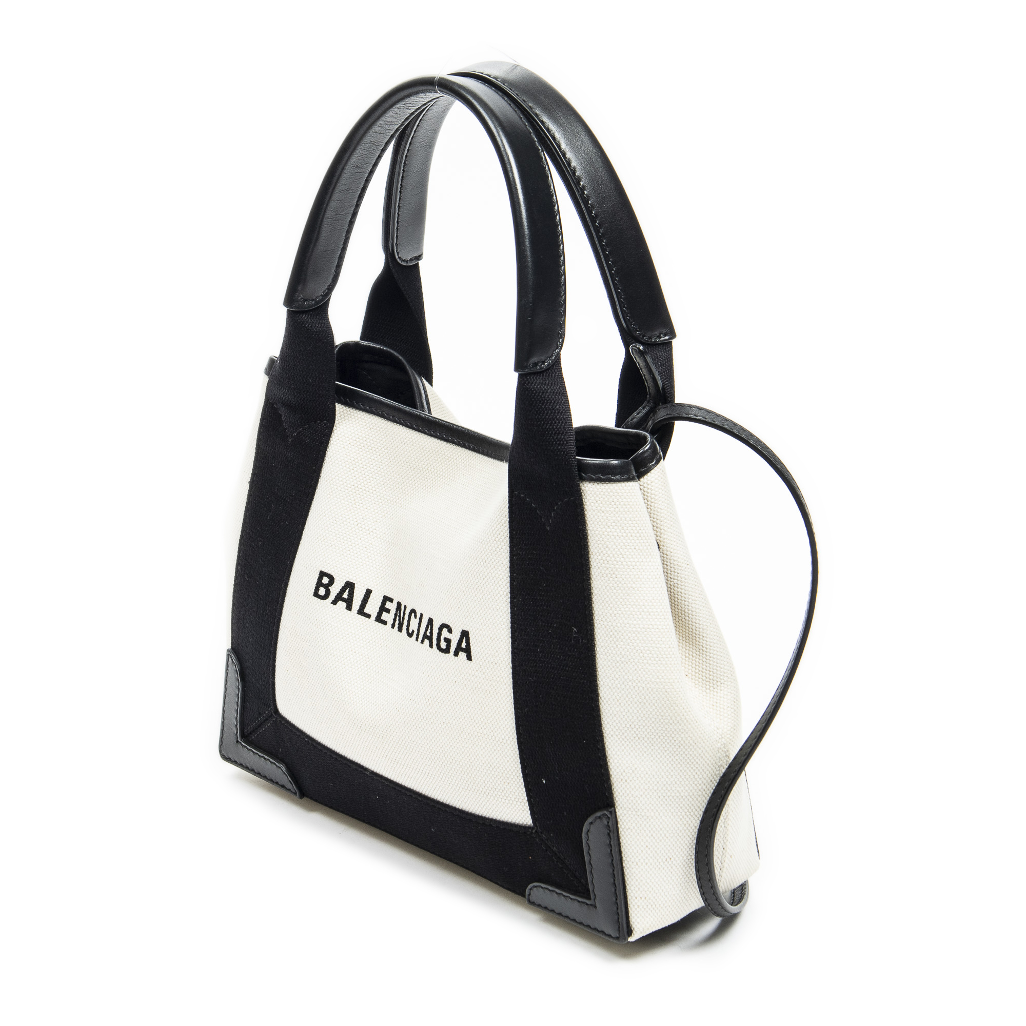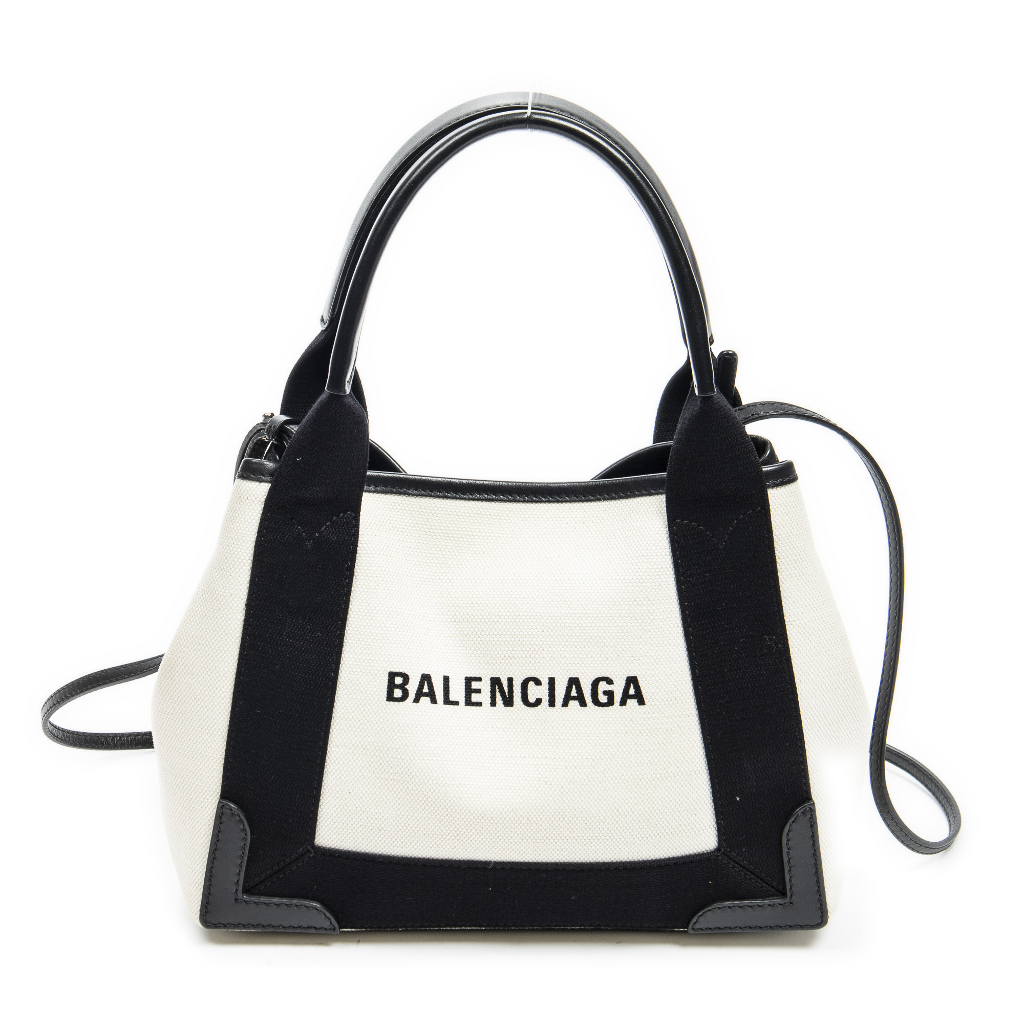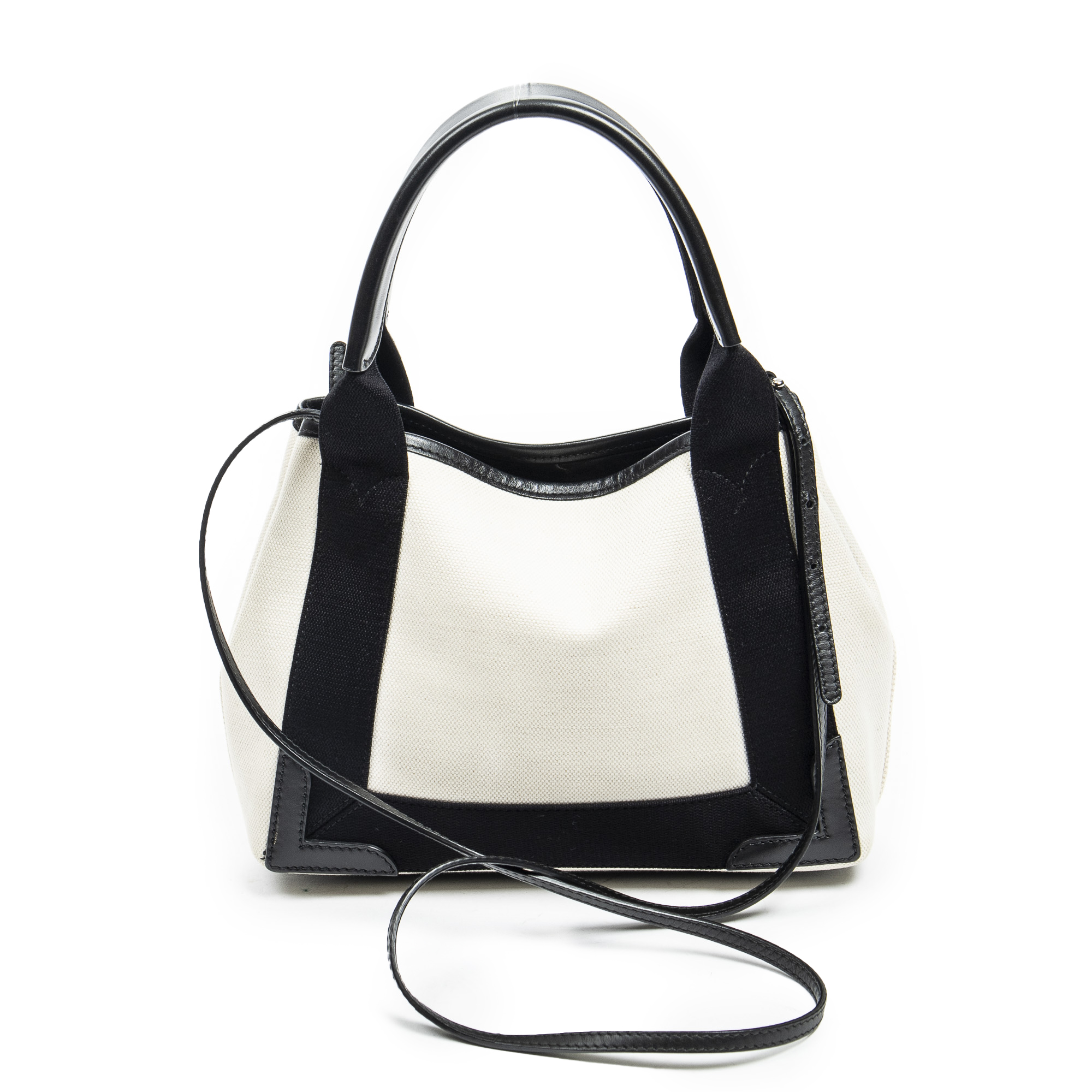 Balenciaga Handbag XS Navy Cabas in Ivory/Black Canvas and Silver hardware. The product is in Excellent Condition (A).