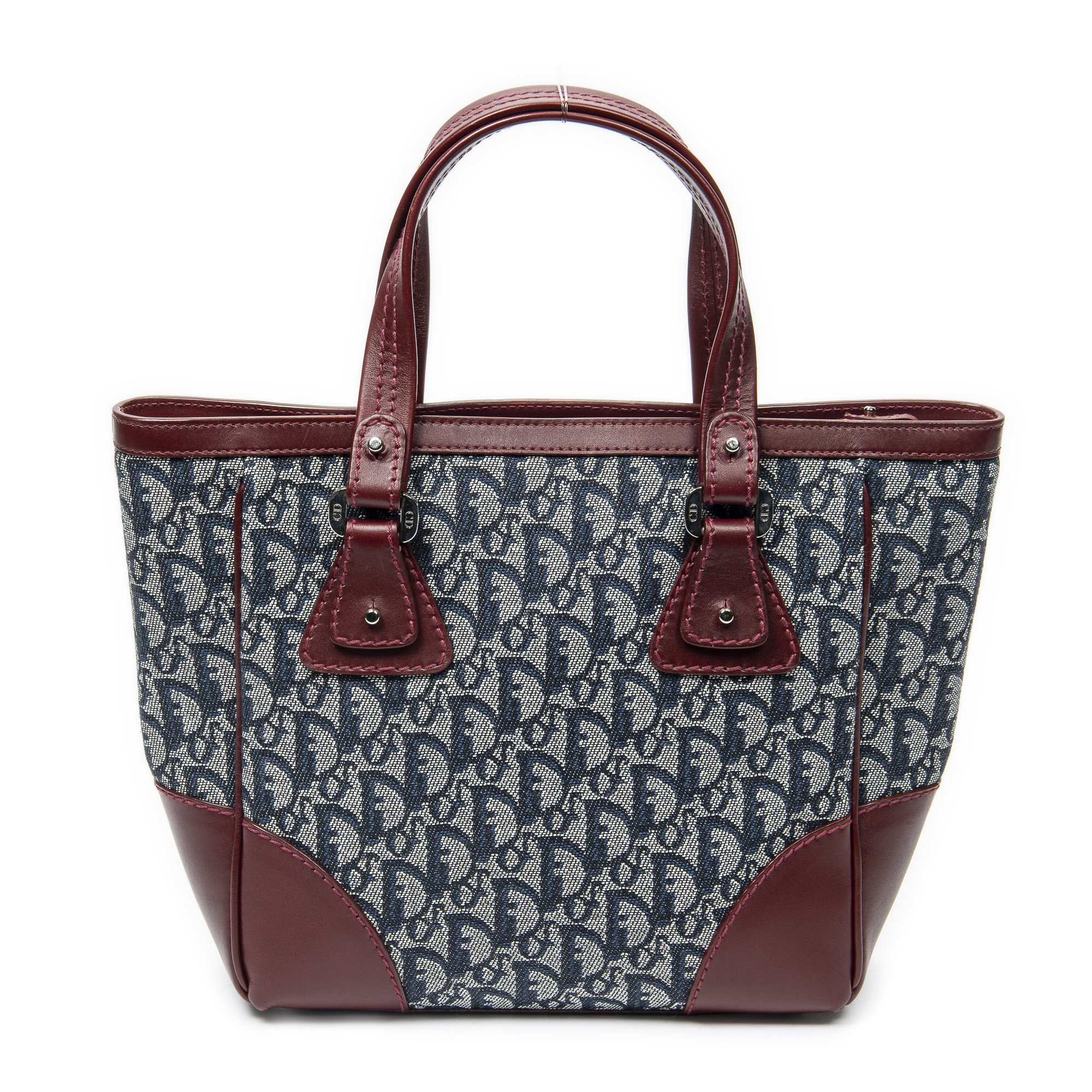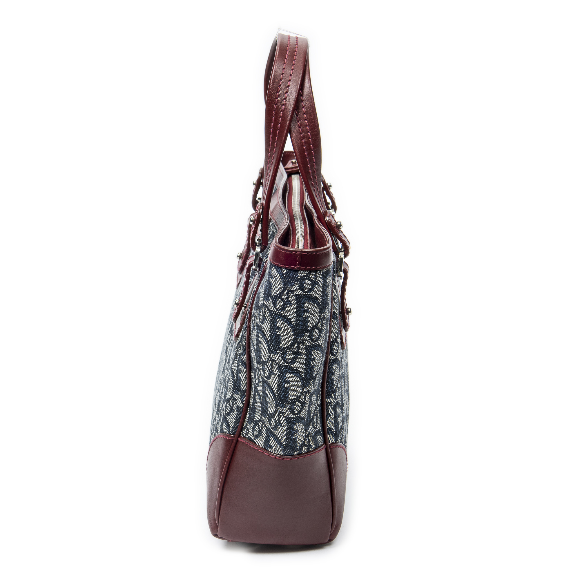 Dior Handbag Zip Shopping Tote in Red/Navy/Grey Diorissimo Canvas and Silver hardware. The product is in Excellent Condition (A).