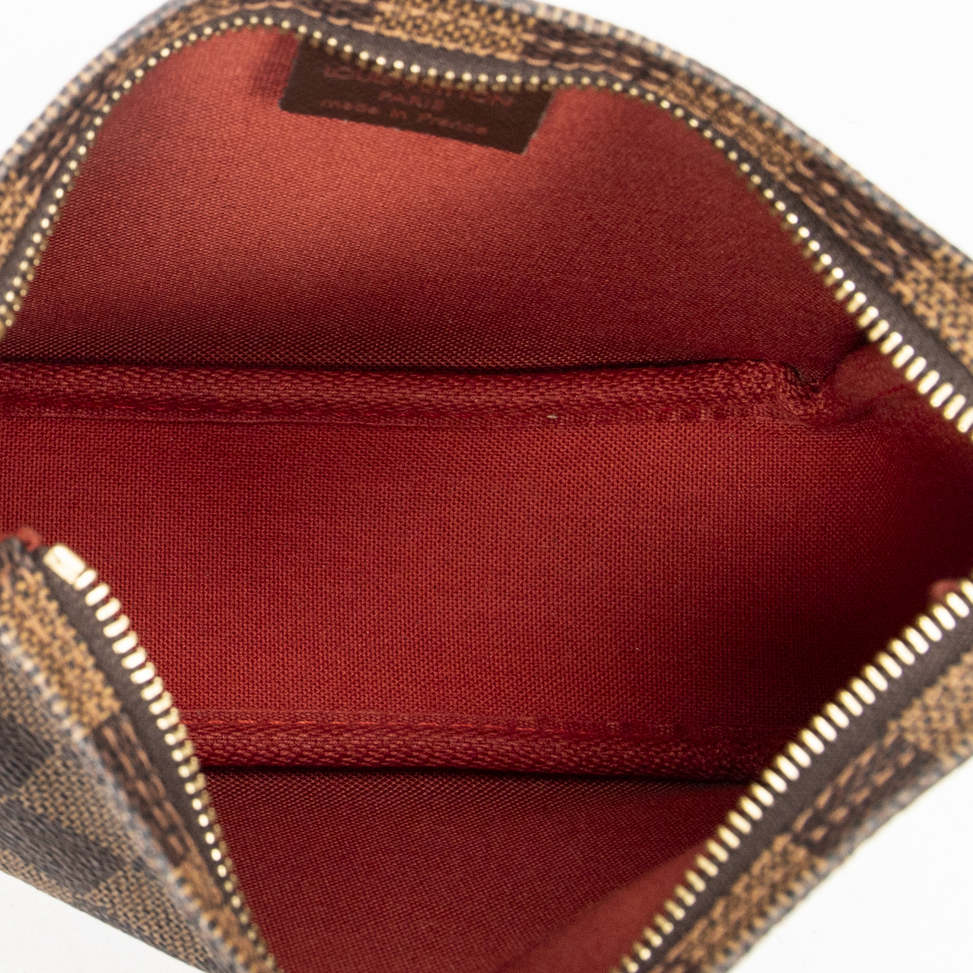 Louis Vuitton Pouch Trousse Make Up Pouch in Brown Damier Ebene and Golden Brass hardware. The product is in Perfect Condition (AA).