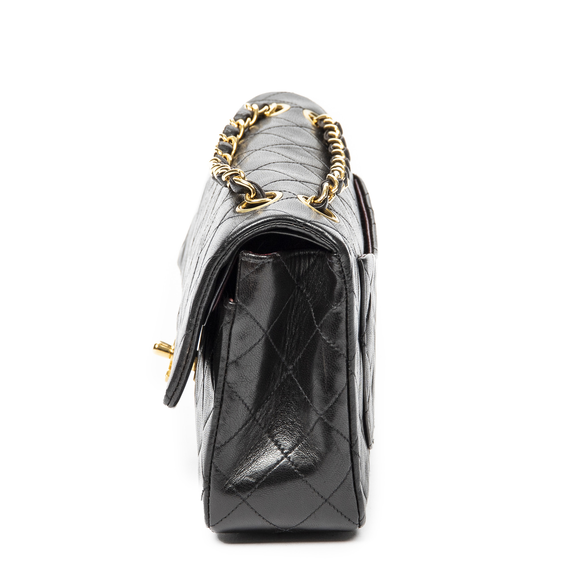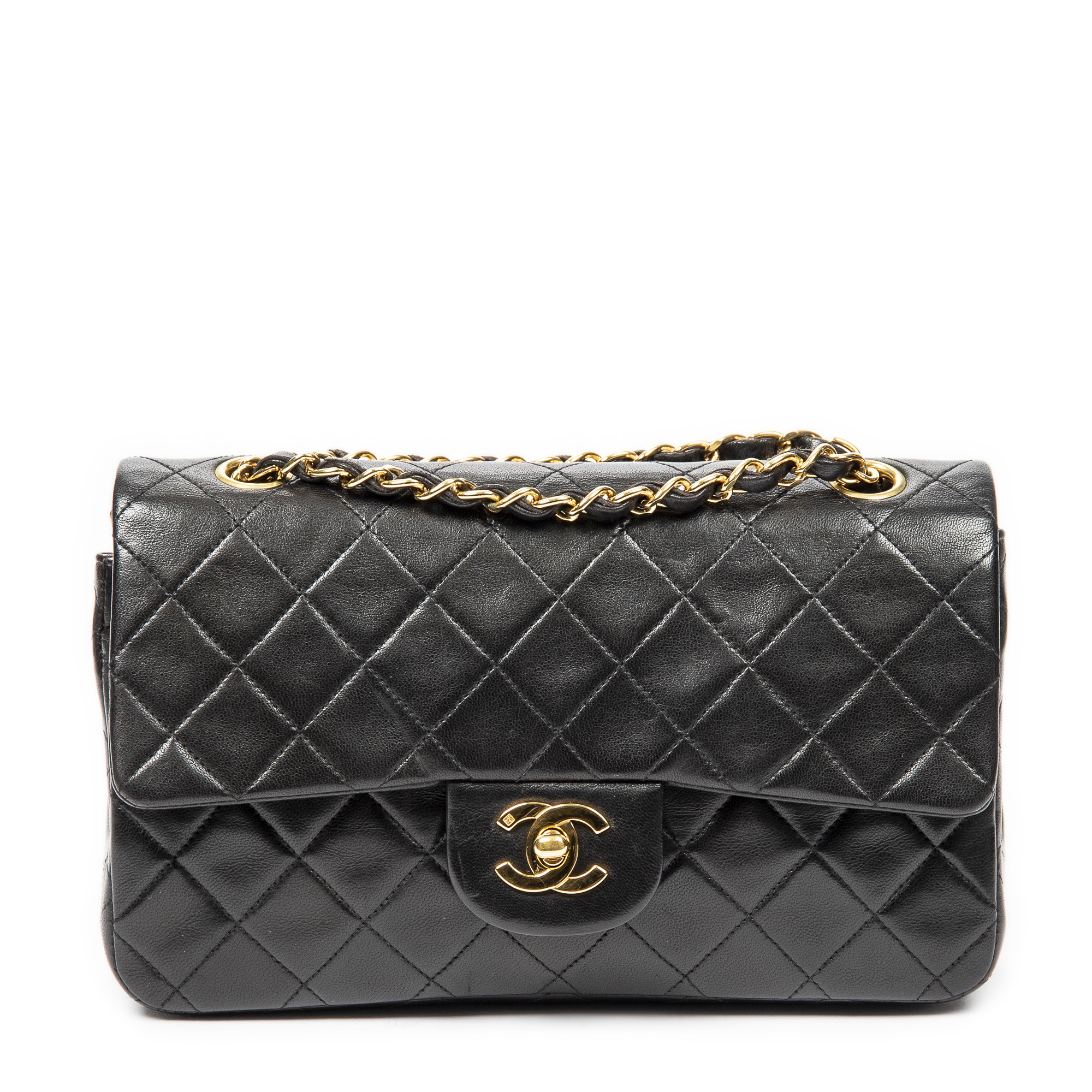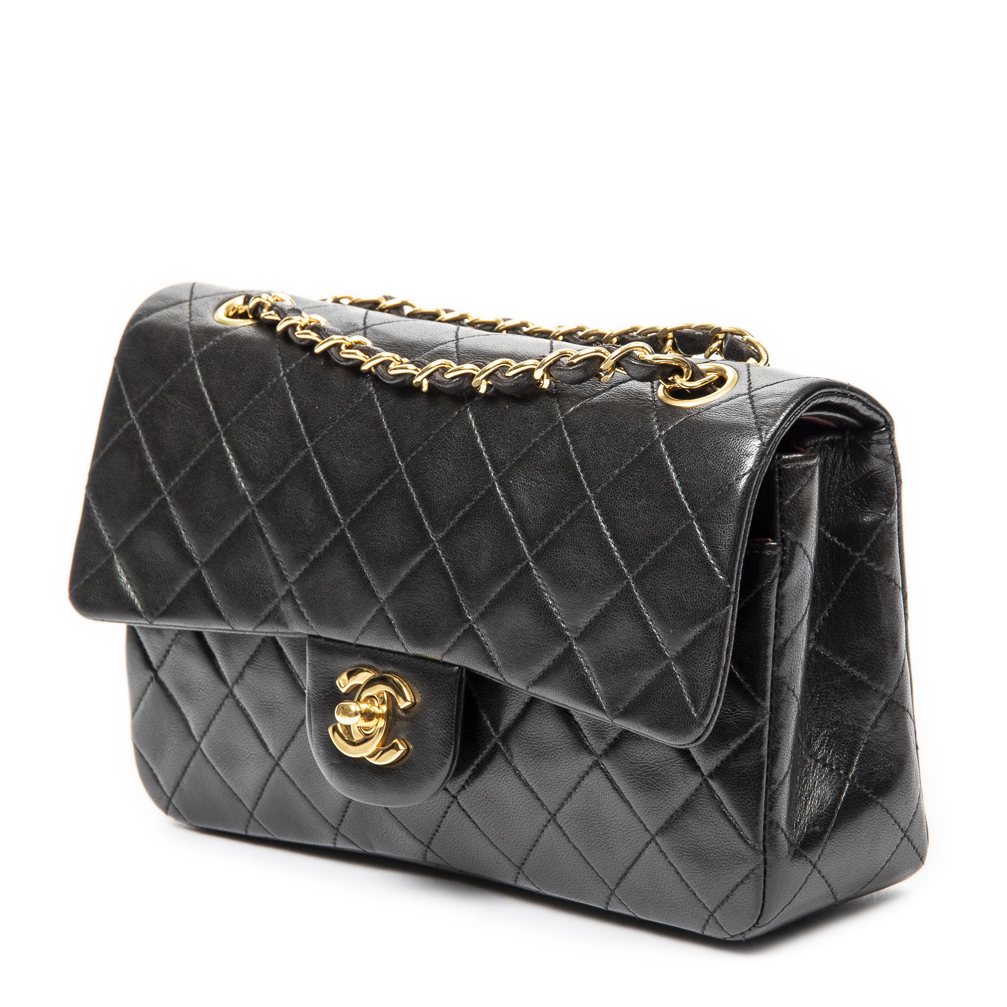 Chanel Shoulder Bag Classic Double Flap 23 in Black Quilted Lambskin Leather and Gold hardware. The product is in Excellent Condition (A).