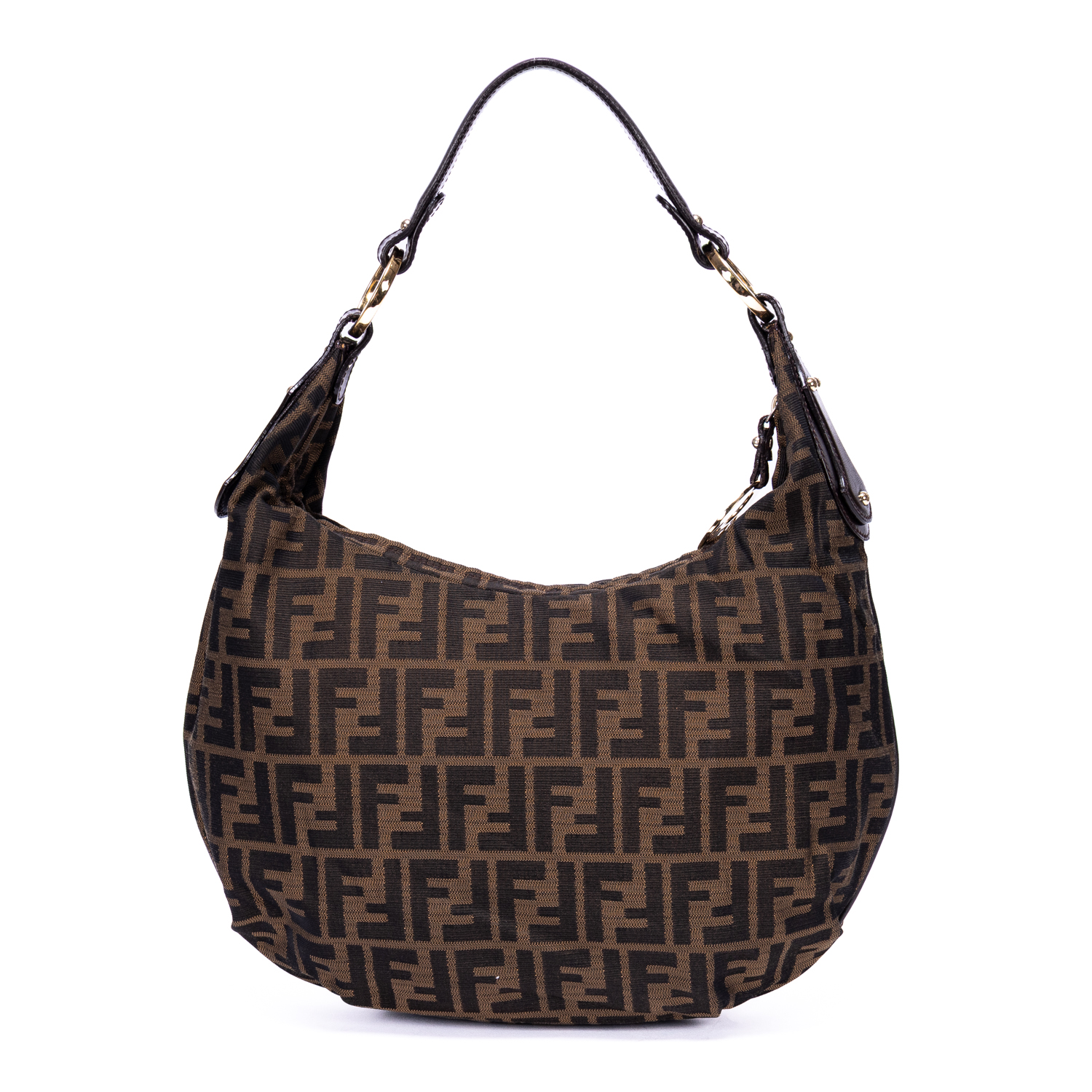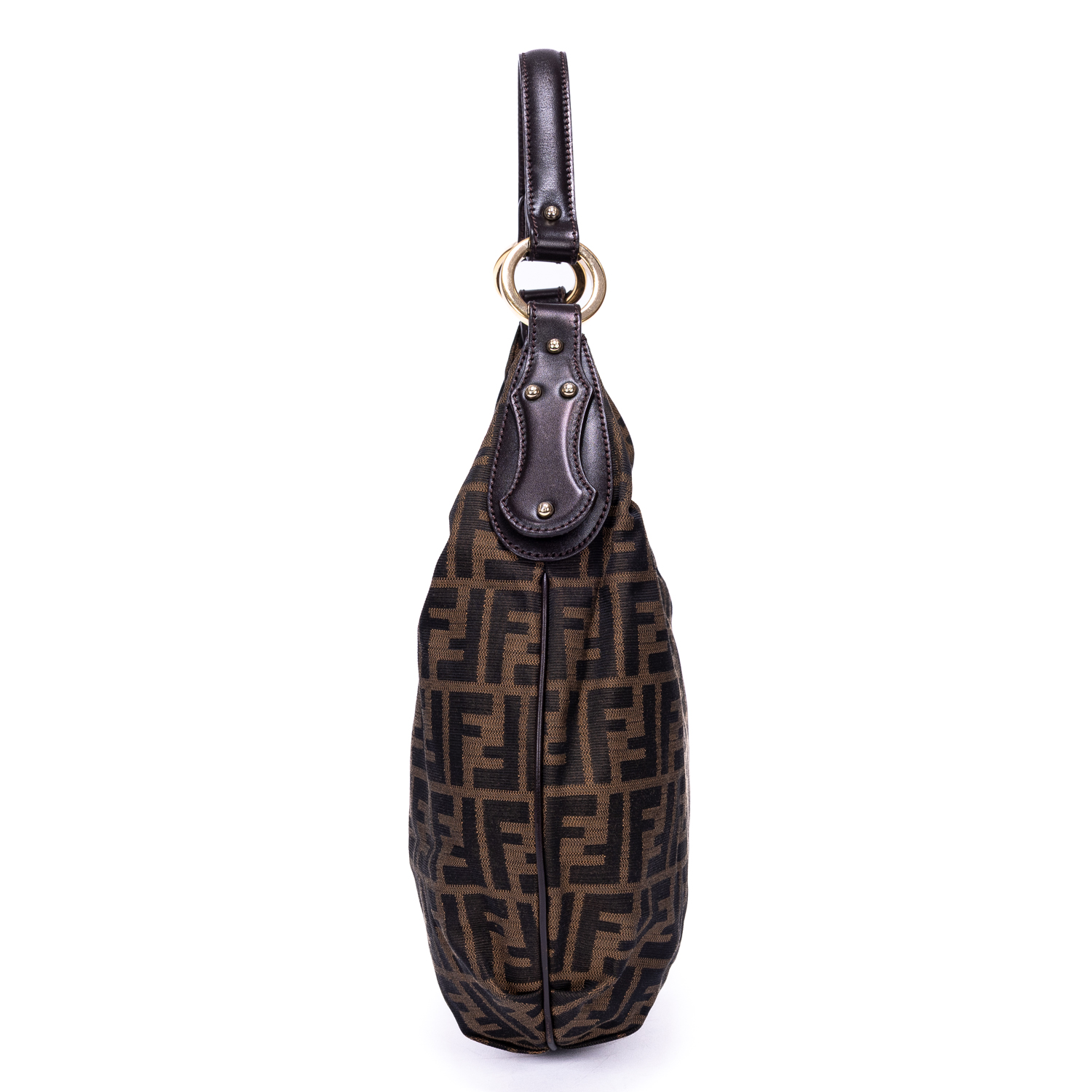 Fendi Shoulder Bag Hobo in Brown Zucca Canvas and Gold hardware. The product is in Excellent Condition (A).