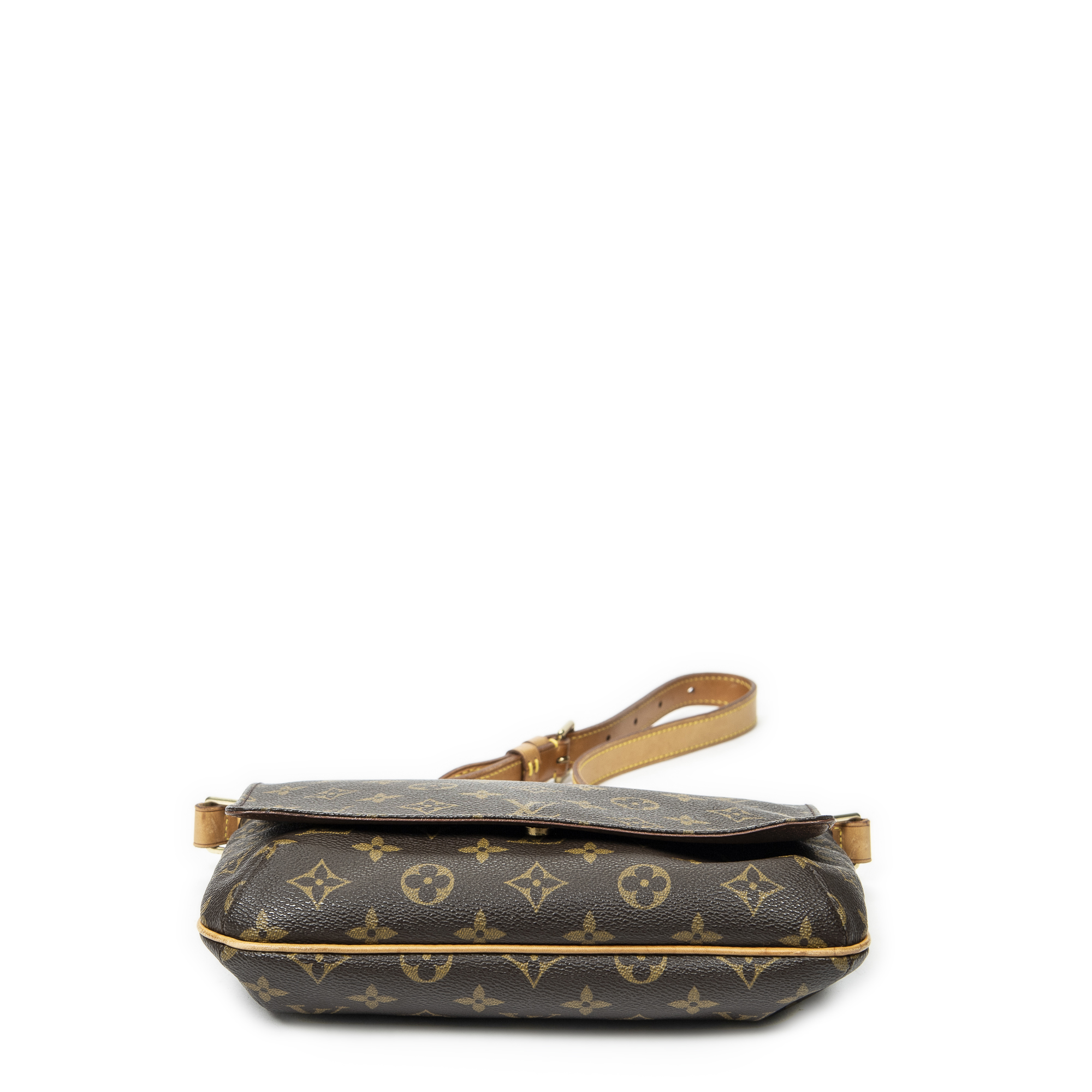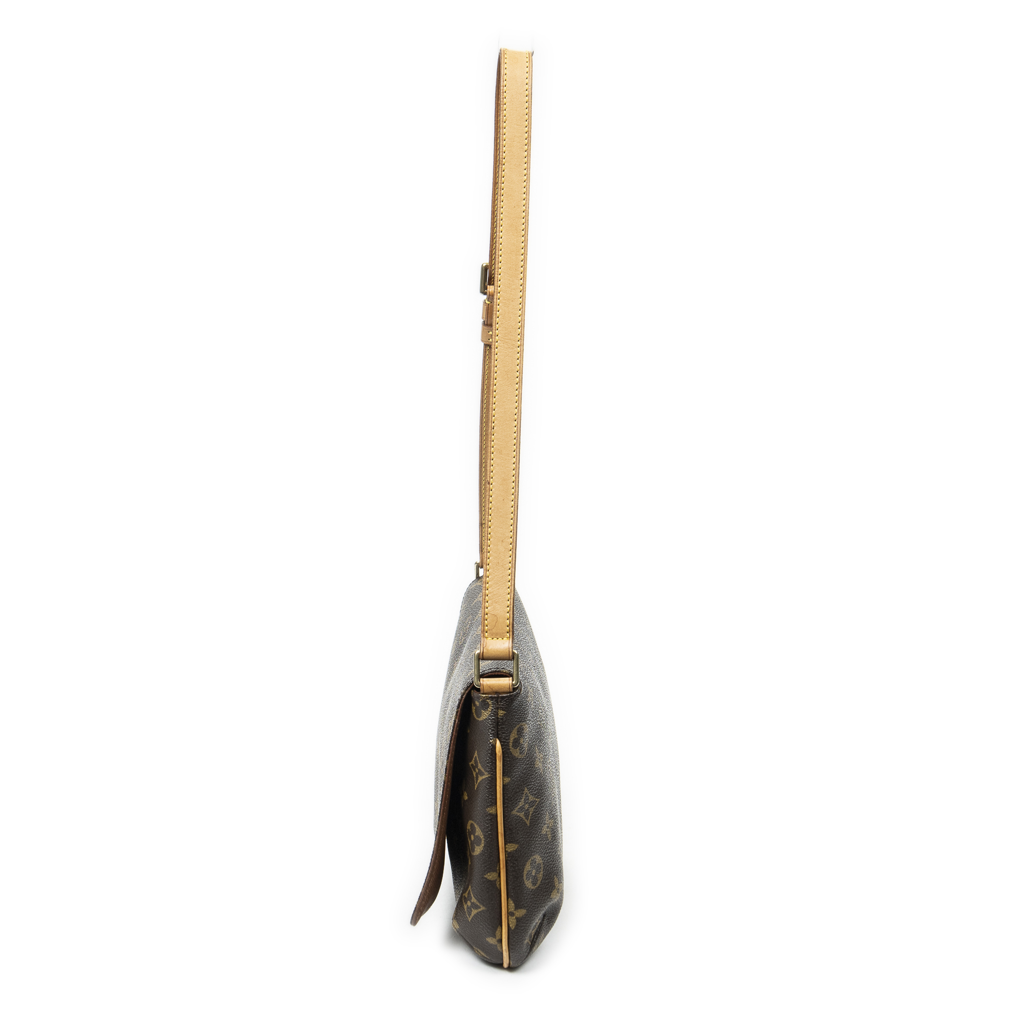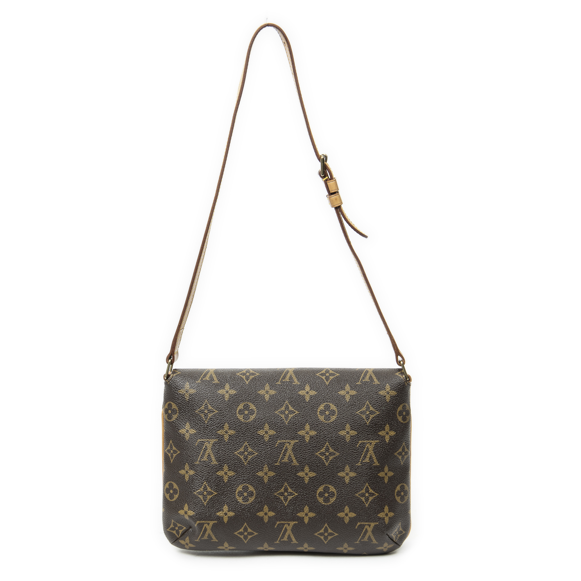 Louis Vuitton Shoulder Bag Musette Tango in Brown Monogram Canvas and Golden Brass hardware. The product is in Excellent Condition (A).