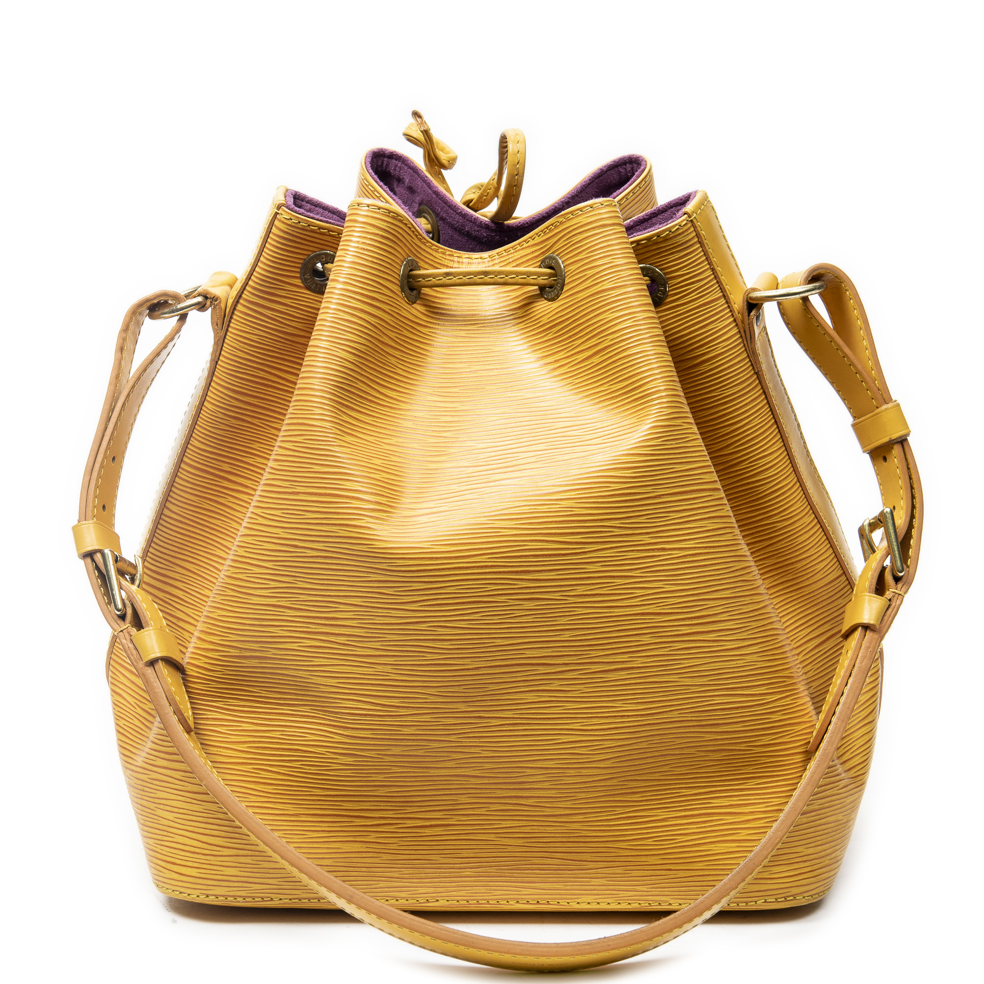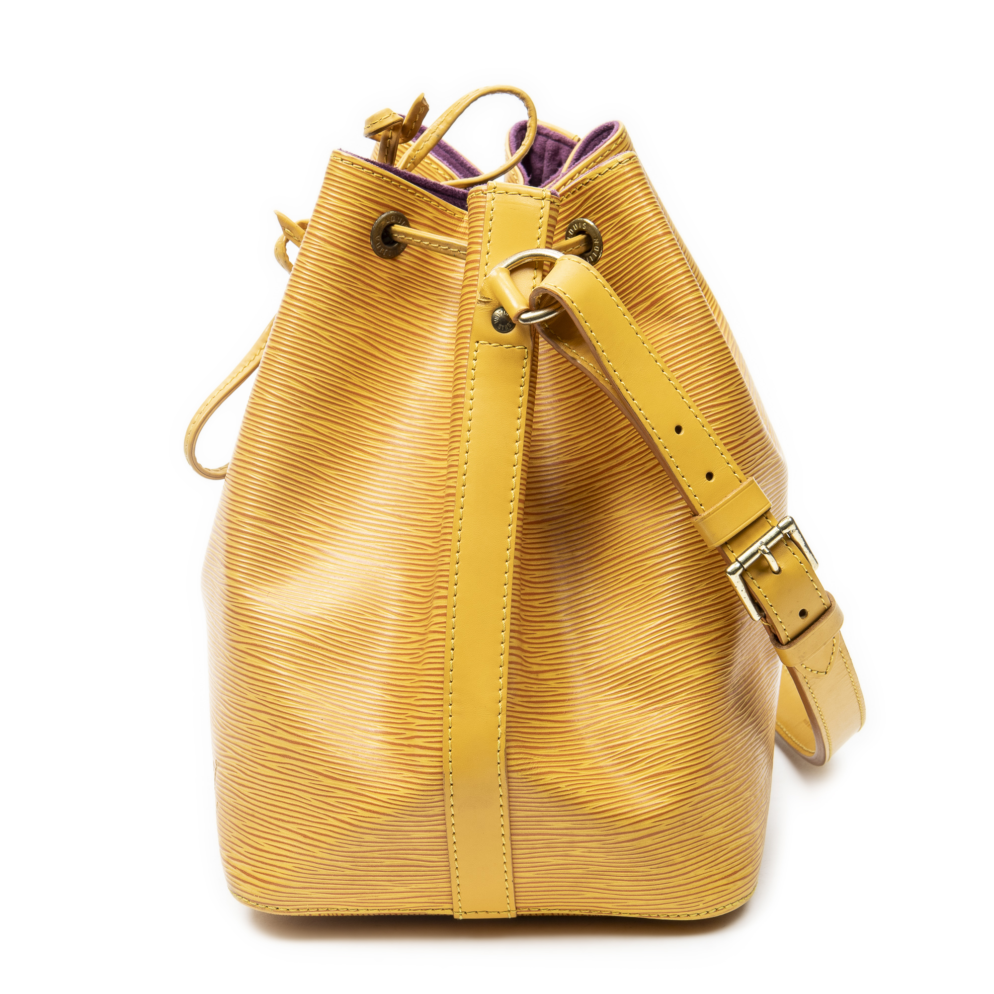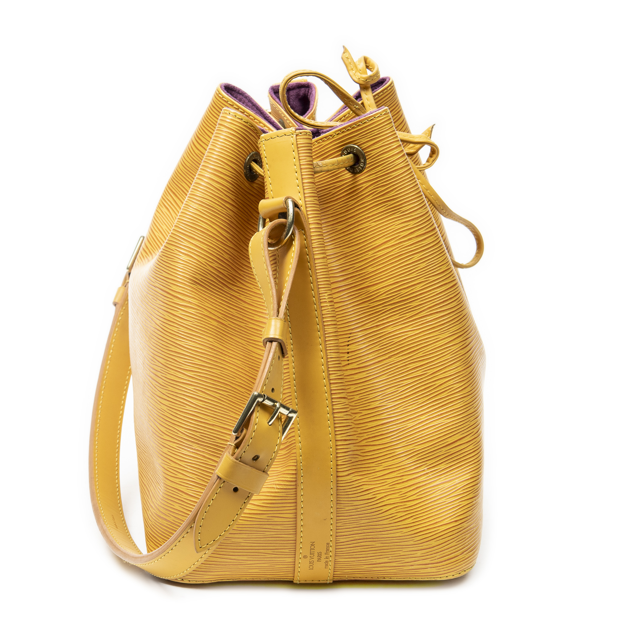 Louis Vuitton Shoulder Bag Noe PM in Yellow Epi and Golden Brass hardware. The product is in Very Good Condition (AB).