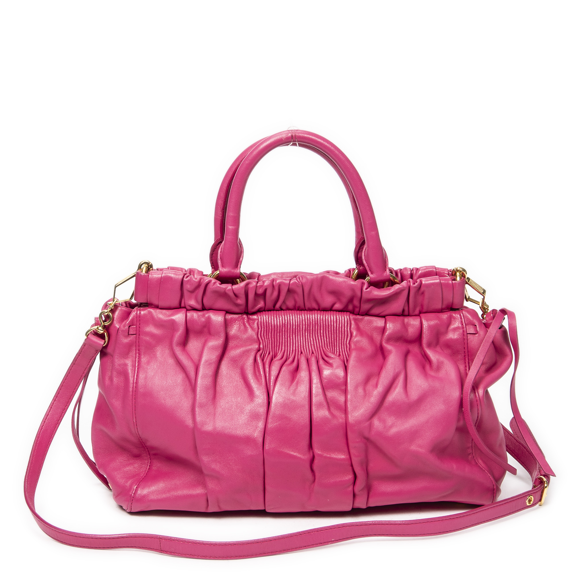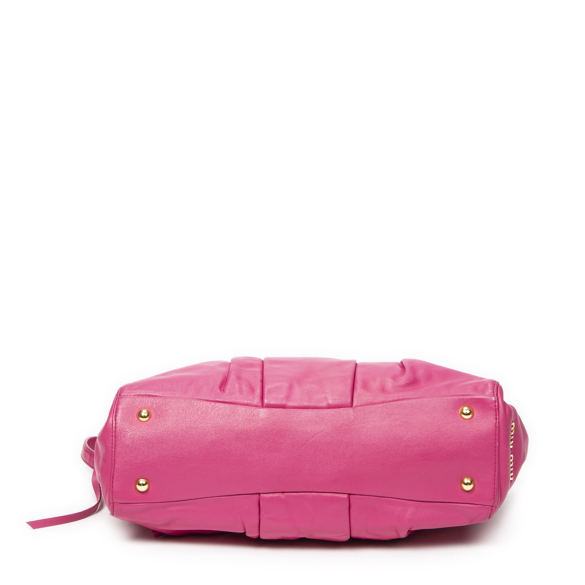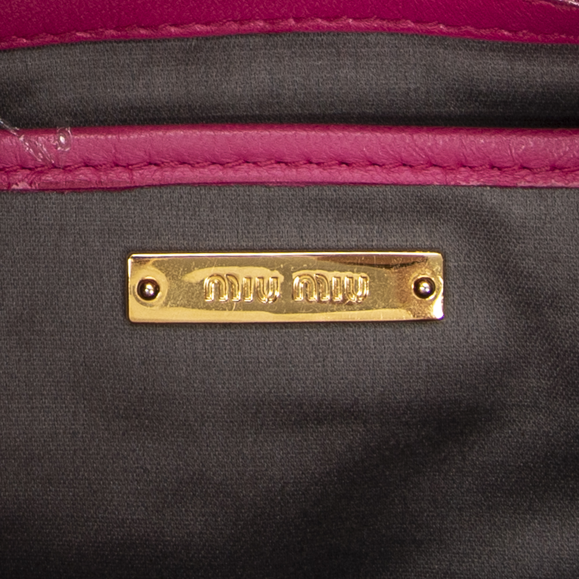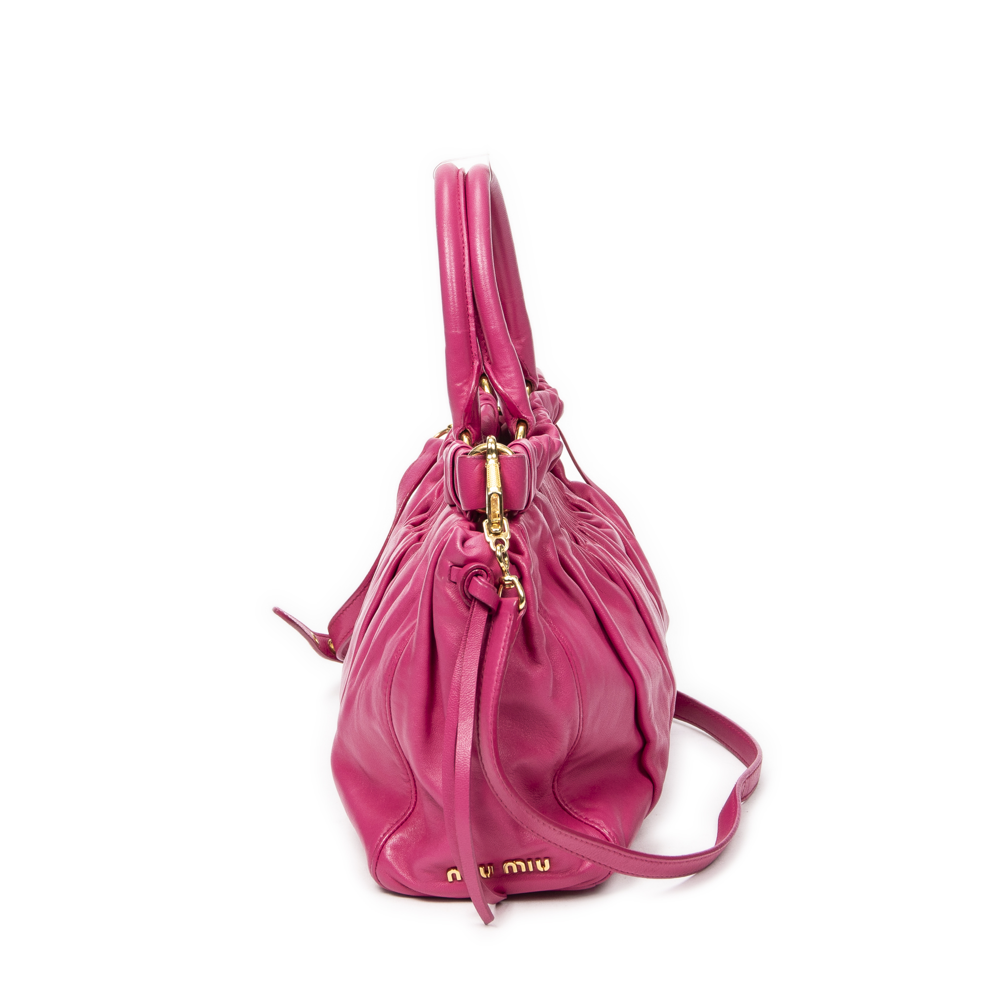 Miu Miu Shoulder Bag 2 Way Top Handle Bag in Pink Goatskin Leather and Gold hardware. The product is in Excellent Condition (A).