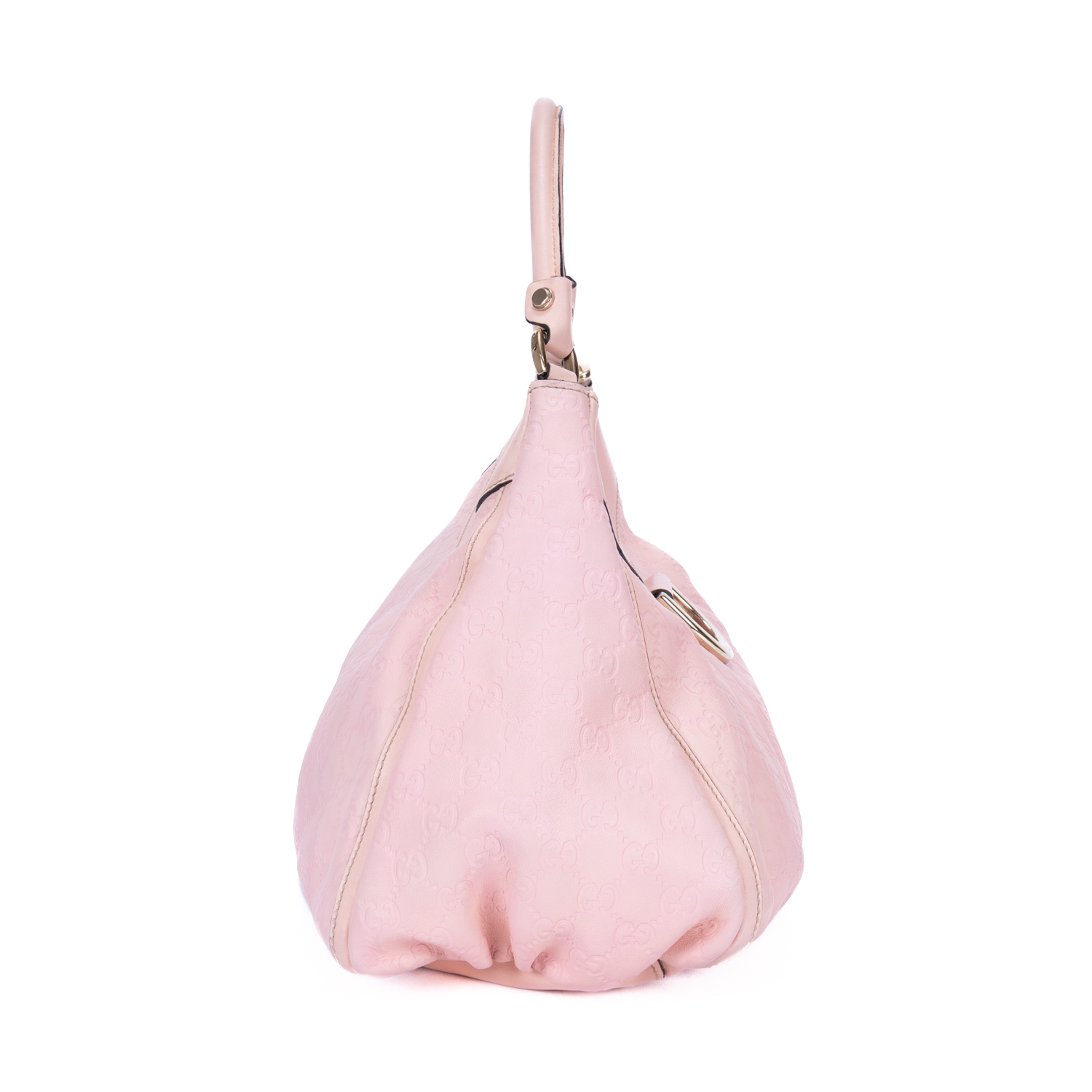 Gucci Shoulder Bag Abbey D Ring Hobo in Light Pink Guccissima Leather and Champagne Gold hardware. The product is in Excellent Condition (A).