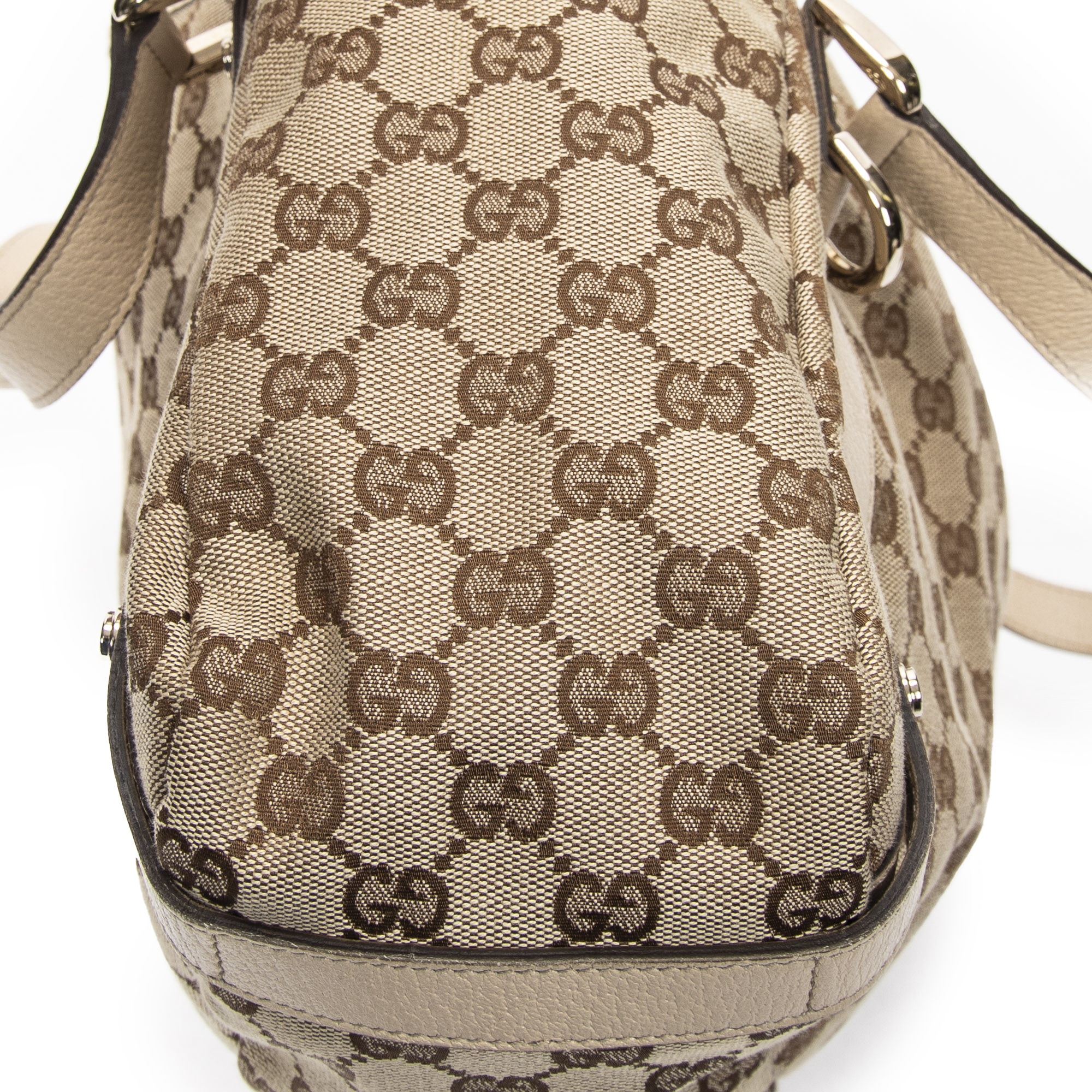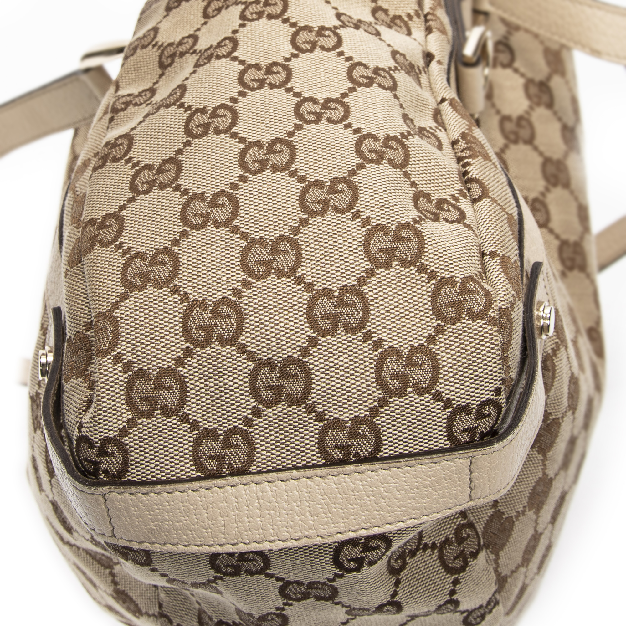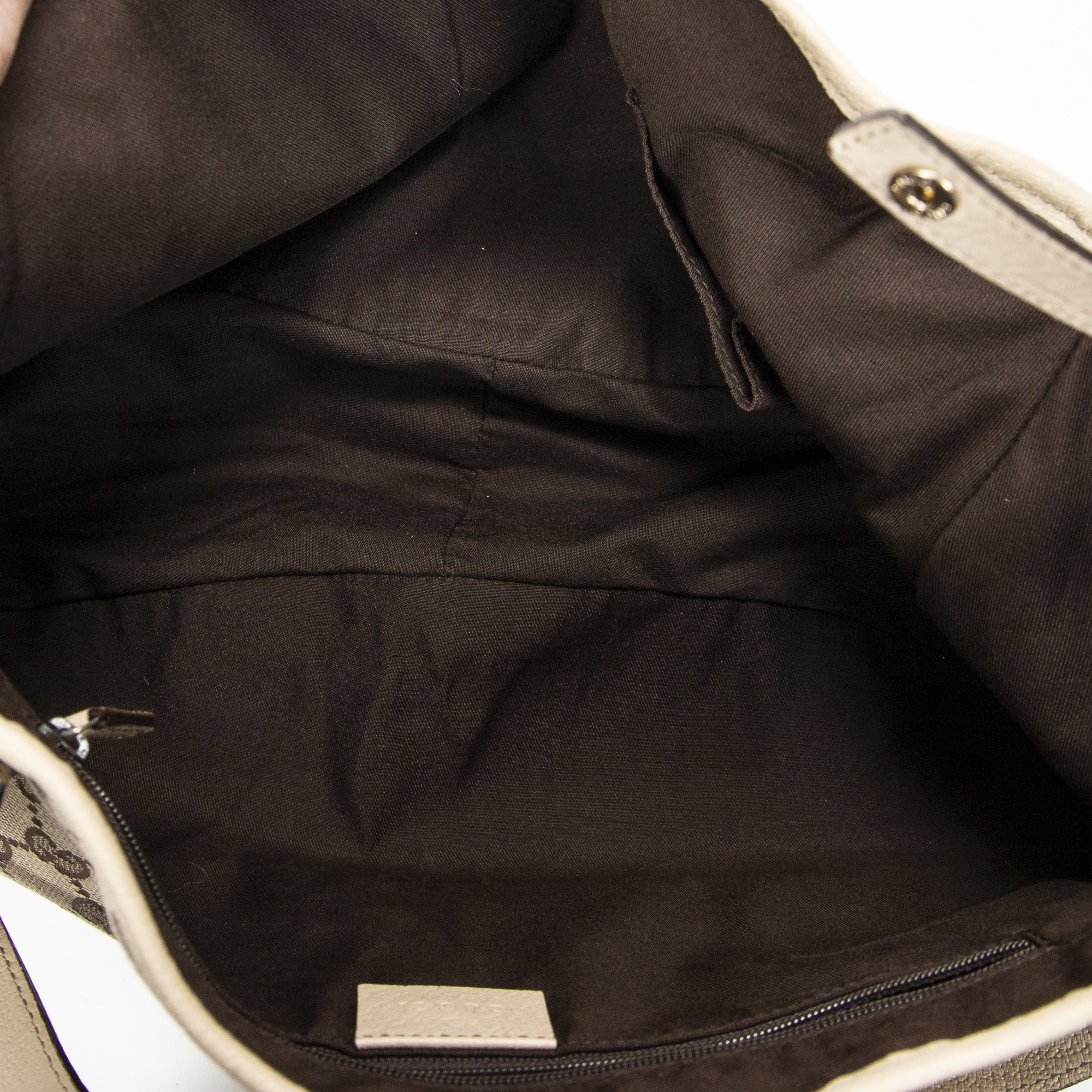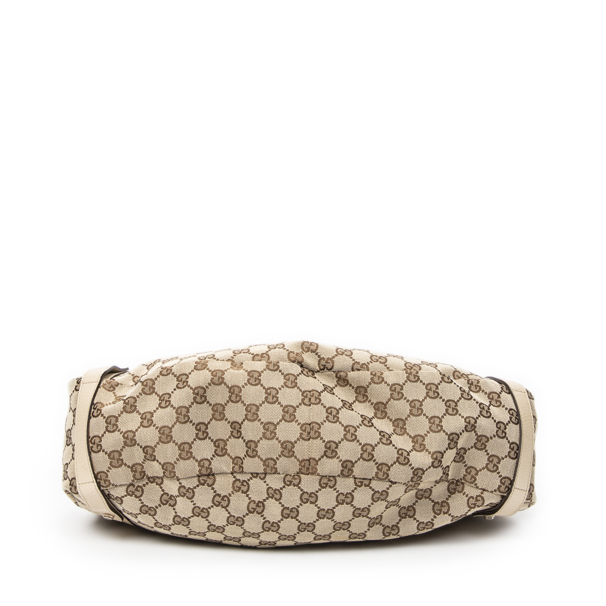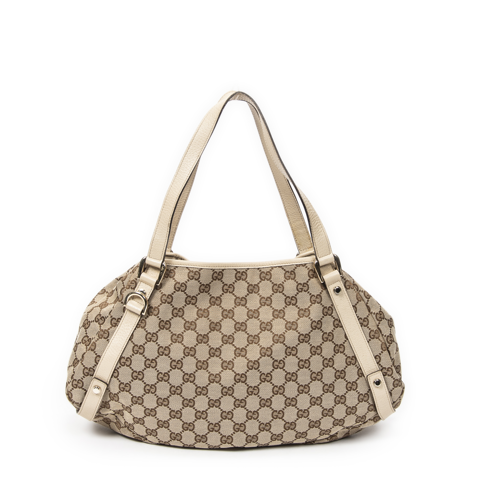 Gucci Shoulder Bag Abbey Hobo Diagonal in Beige Monogrammed Canvas and Gold hardware. The product is in Excellent Condition (A).
