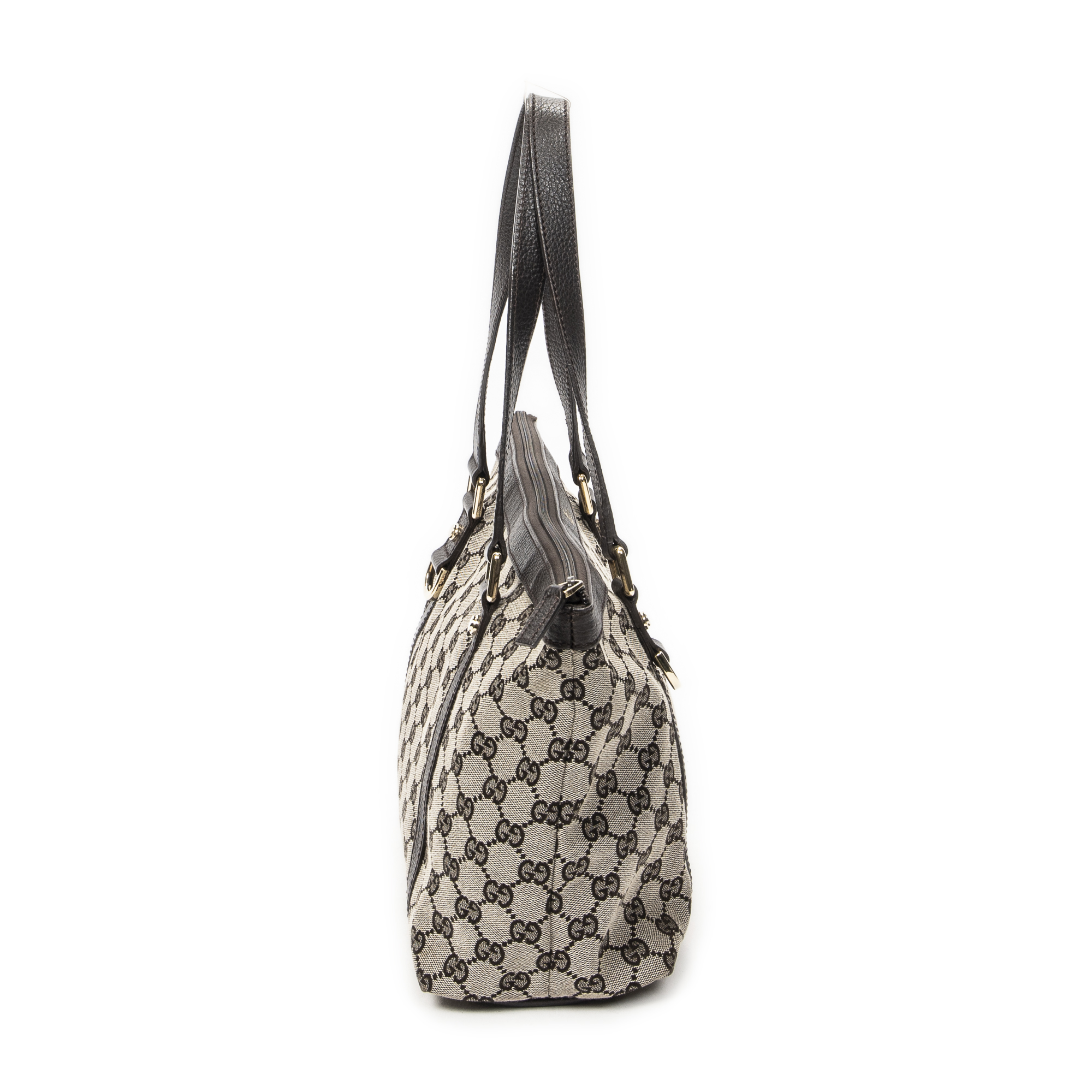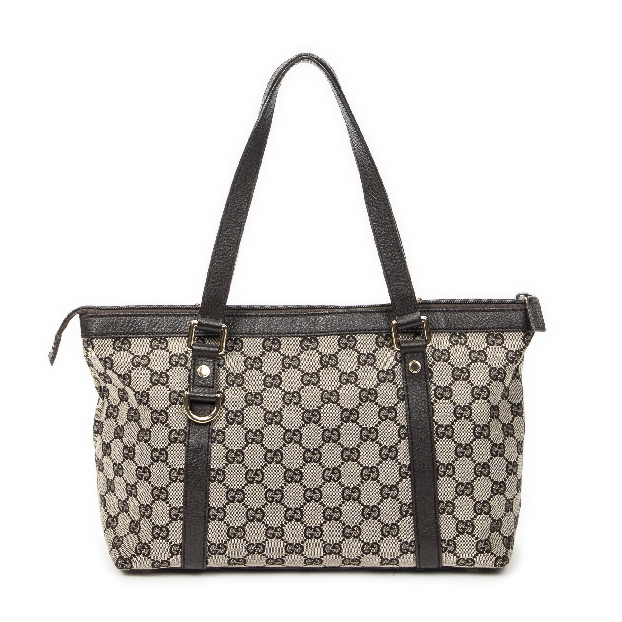 Gucci Shoulder Bag Abbey Zip Tote in Beige/Dark Brown Monogrammed Canvas and Gold hardware. The product is in Perfect Condition (AA).