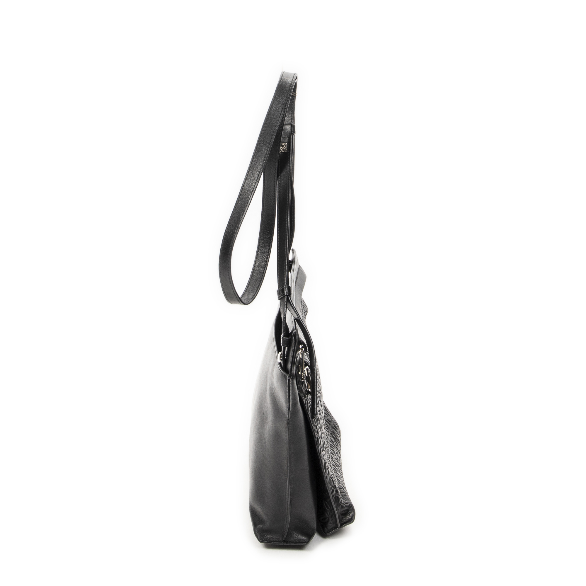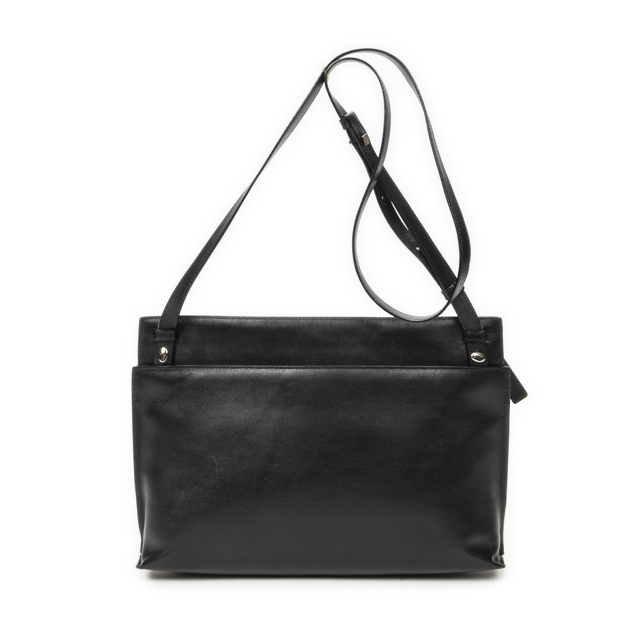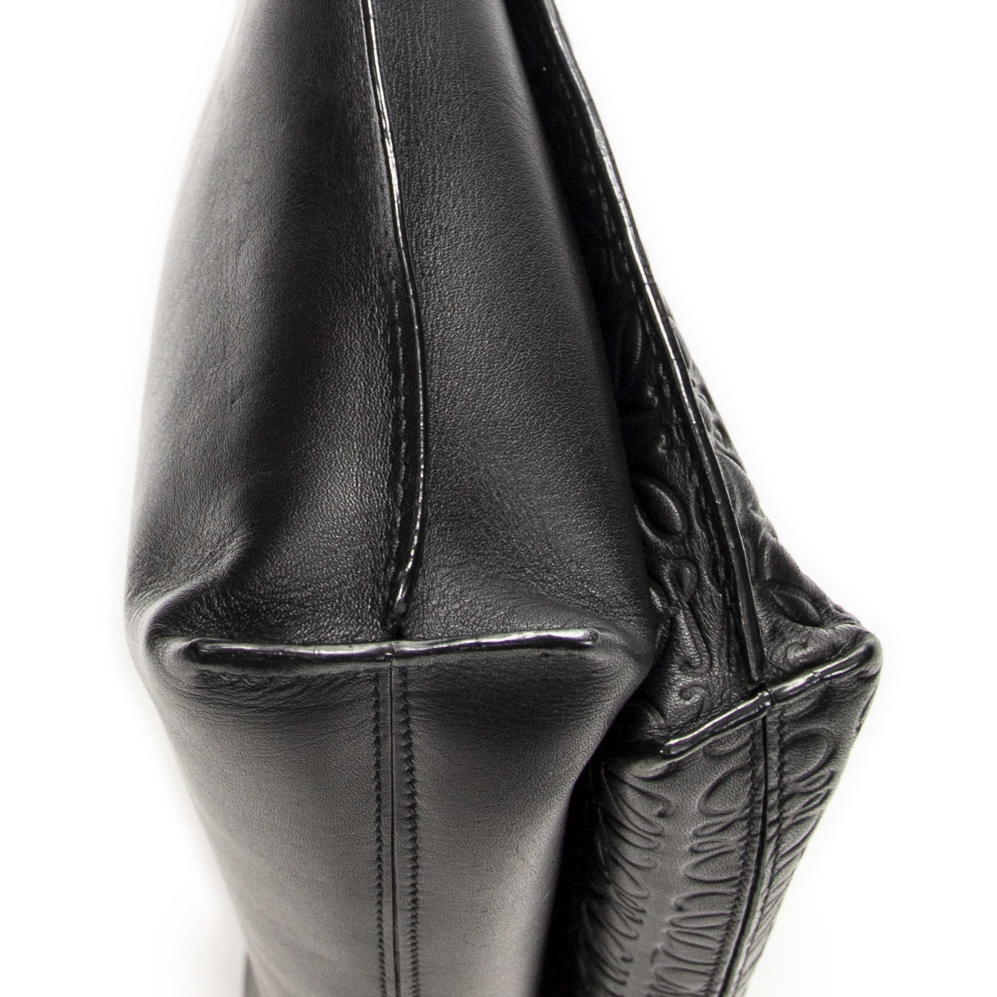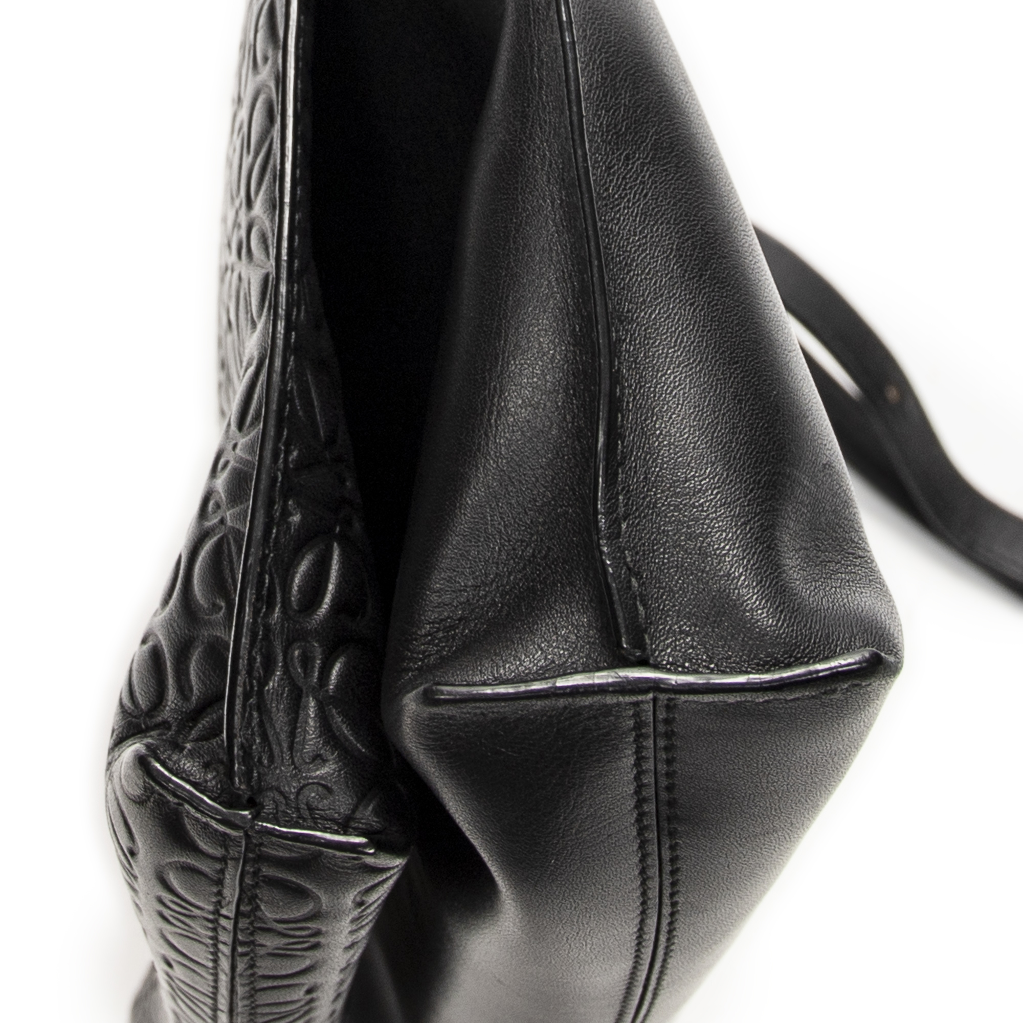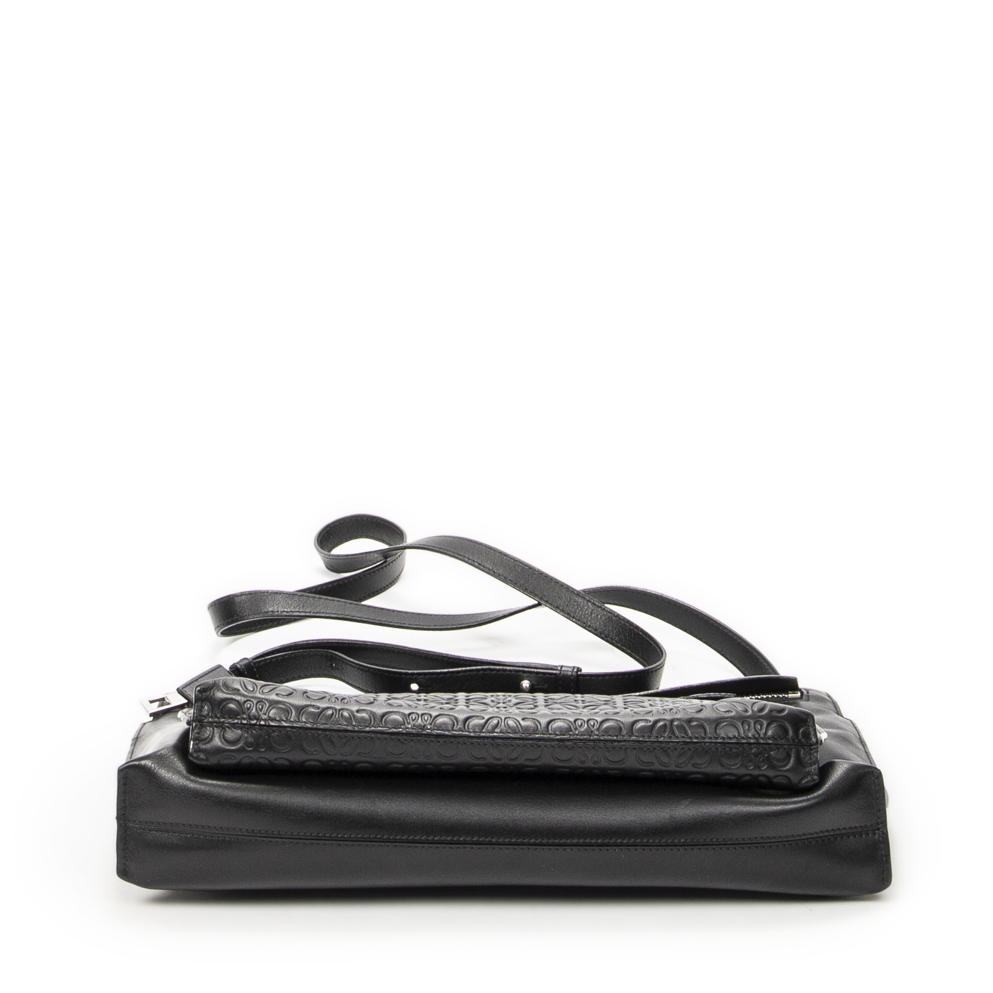 Loewe Shoulder Bag Anagram Double T Pouch Crossbody in Black Calfskin Leather and Silver hardware. The product is in Excellent Condition (A).
