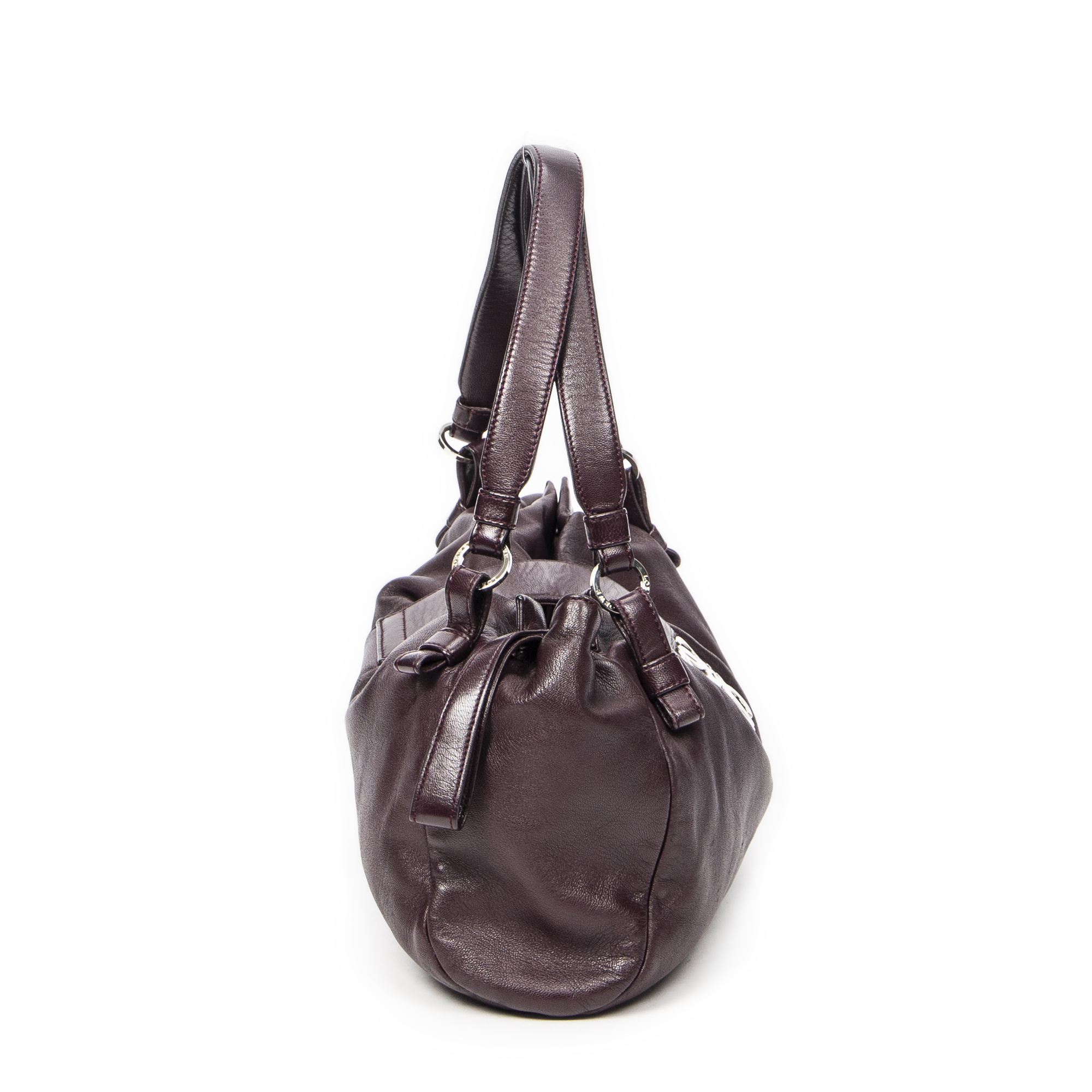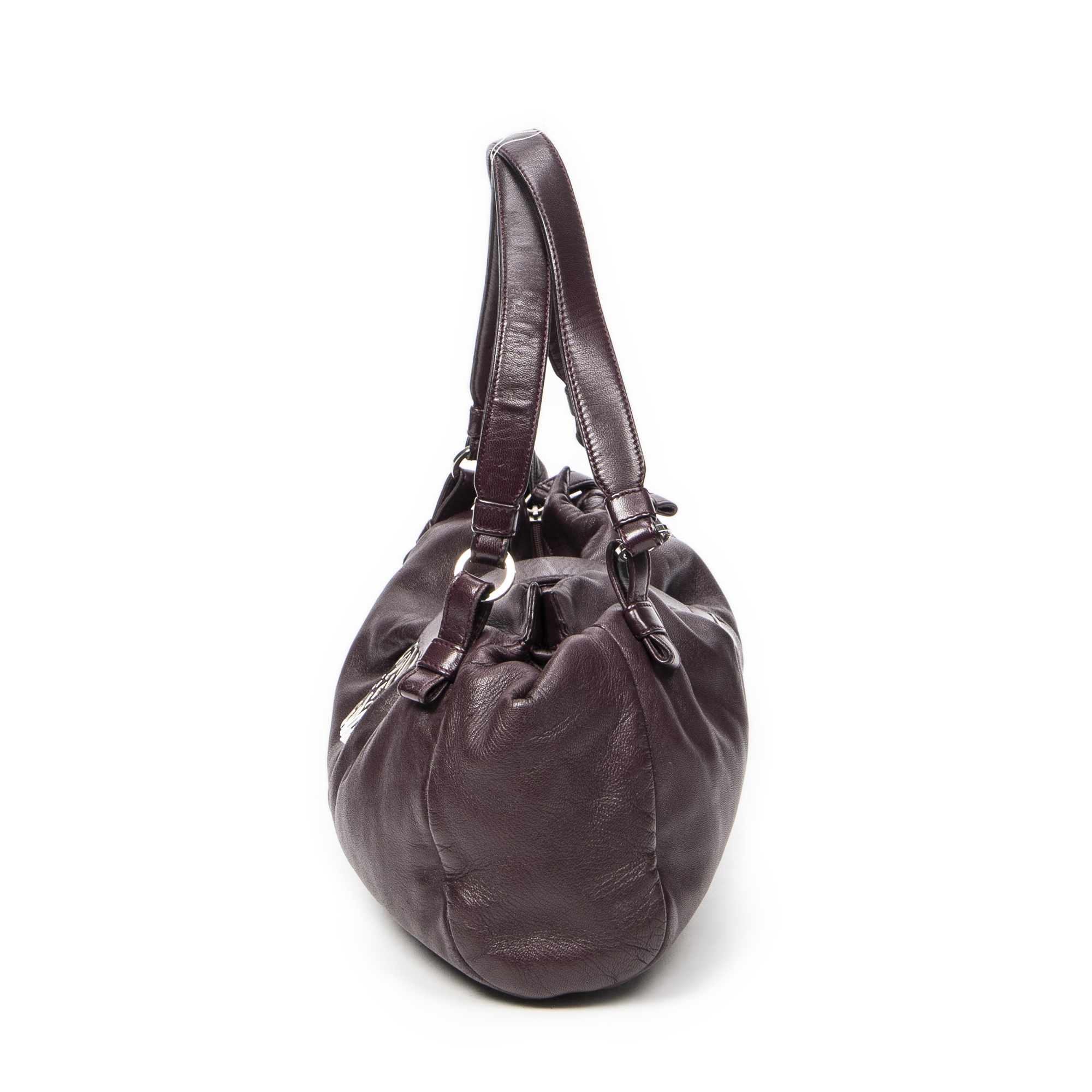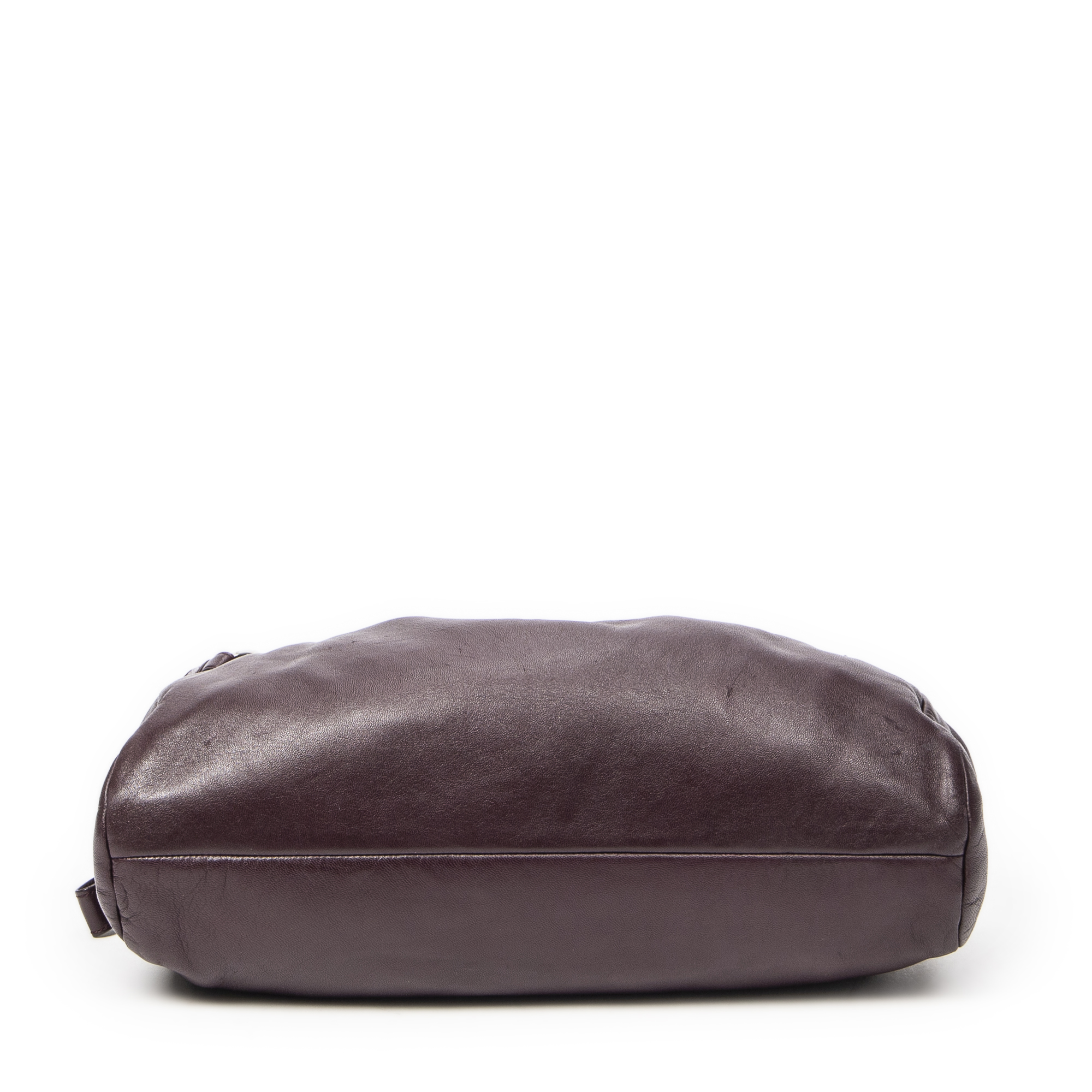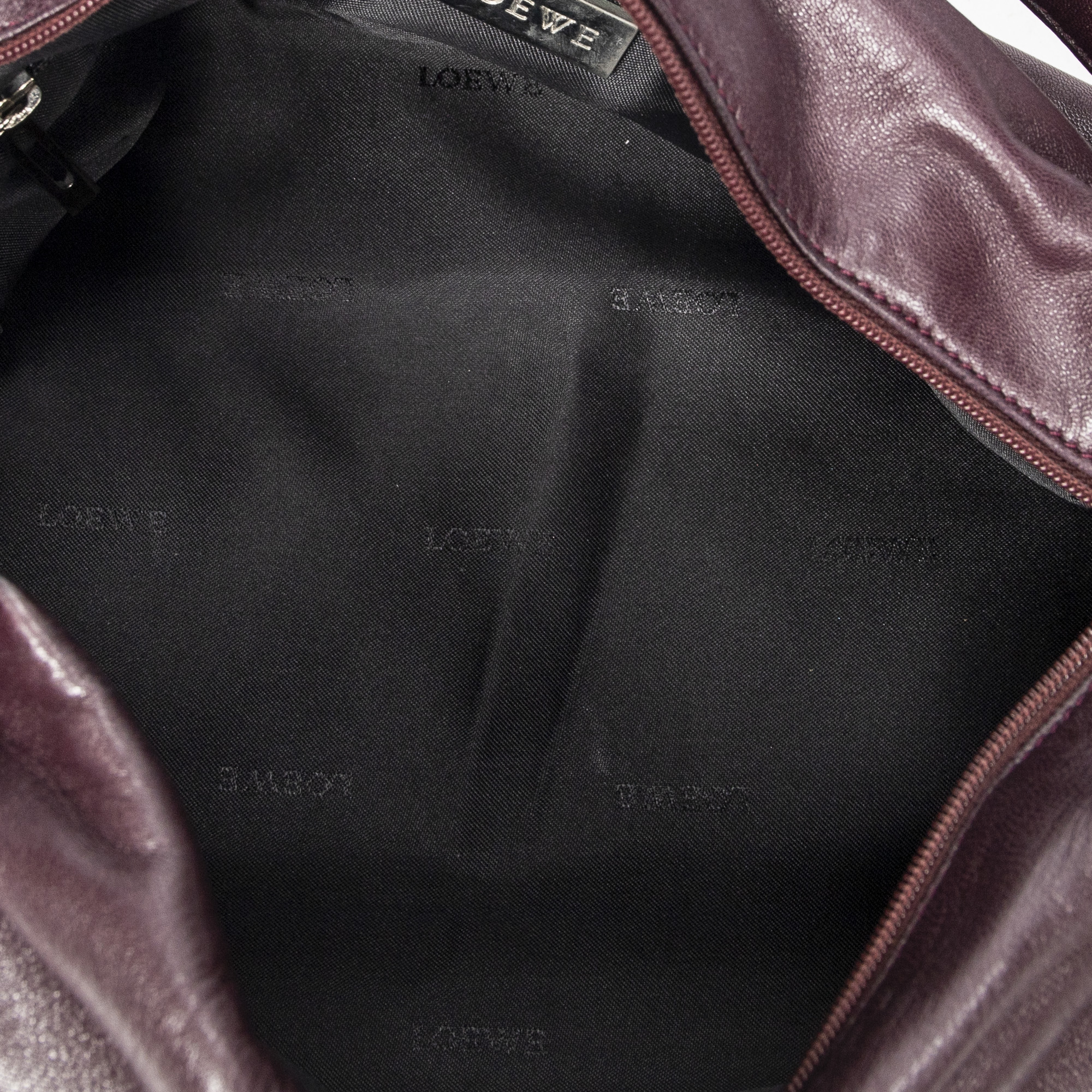 Loewe Shoulder Bag Anagram Plate Shoulder Bag in Burgundy Nappa Leather and Silver hardware. The product is in Excellent Condition (A).