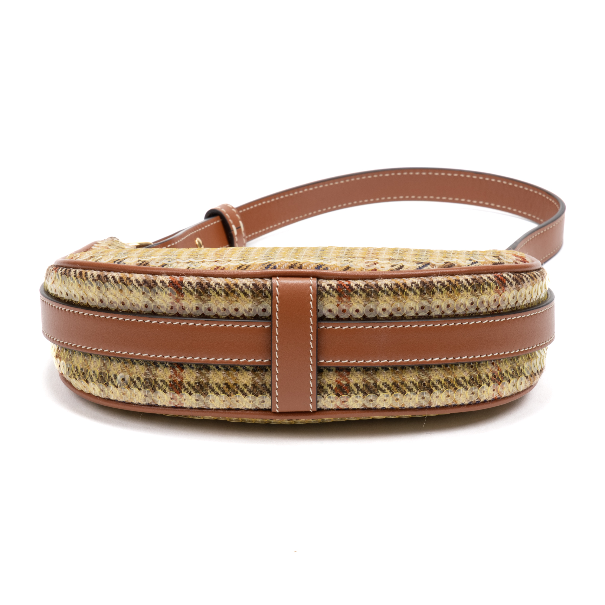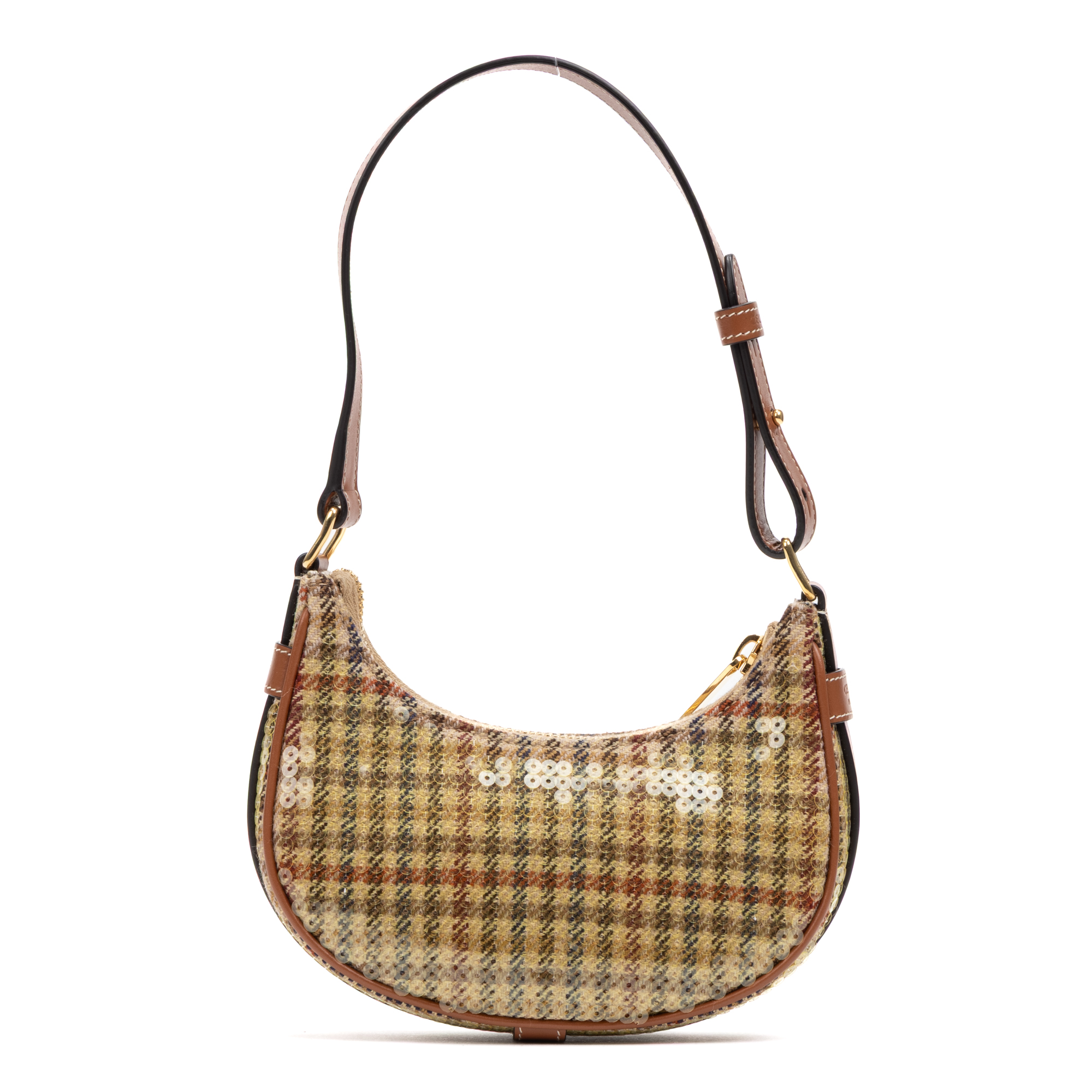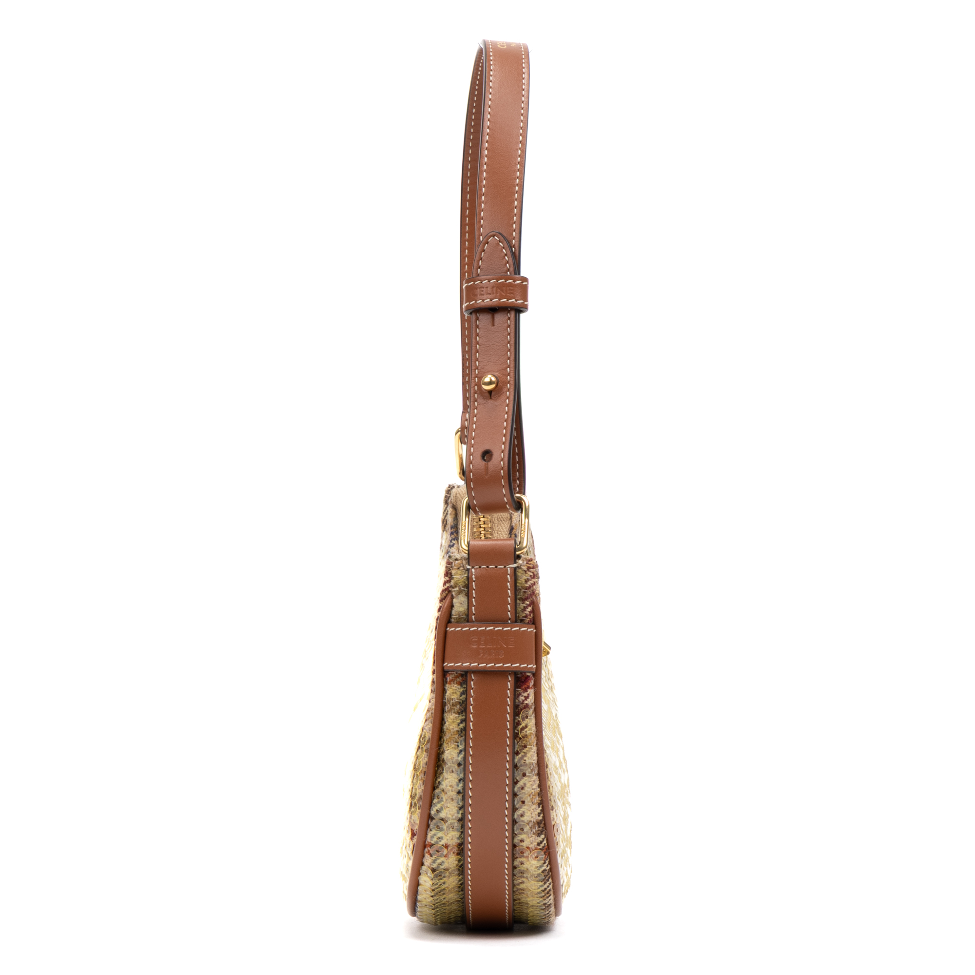 Celine Shoulder Bag Ava Bag Mini in Brown/Beige Tweed Canvas/Sequins and Gold hardware. The product is in Perfect Condition (AA).
