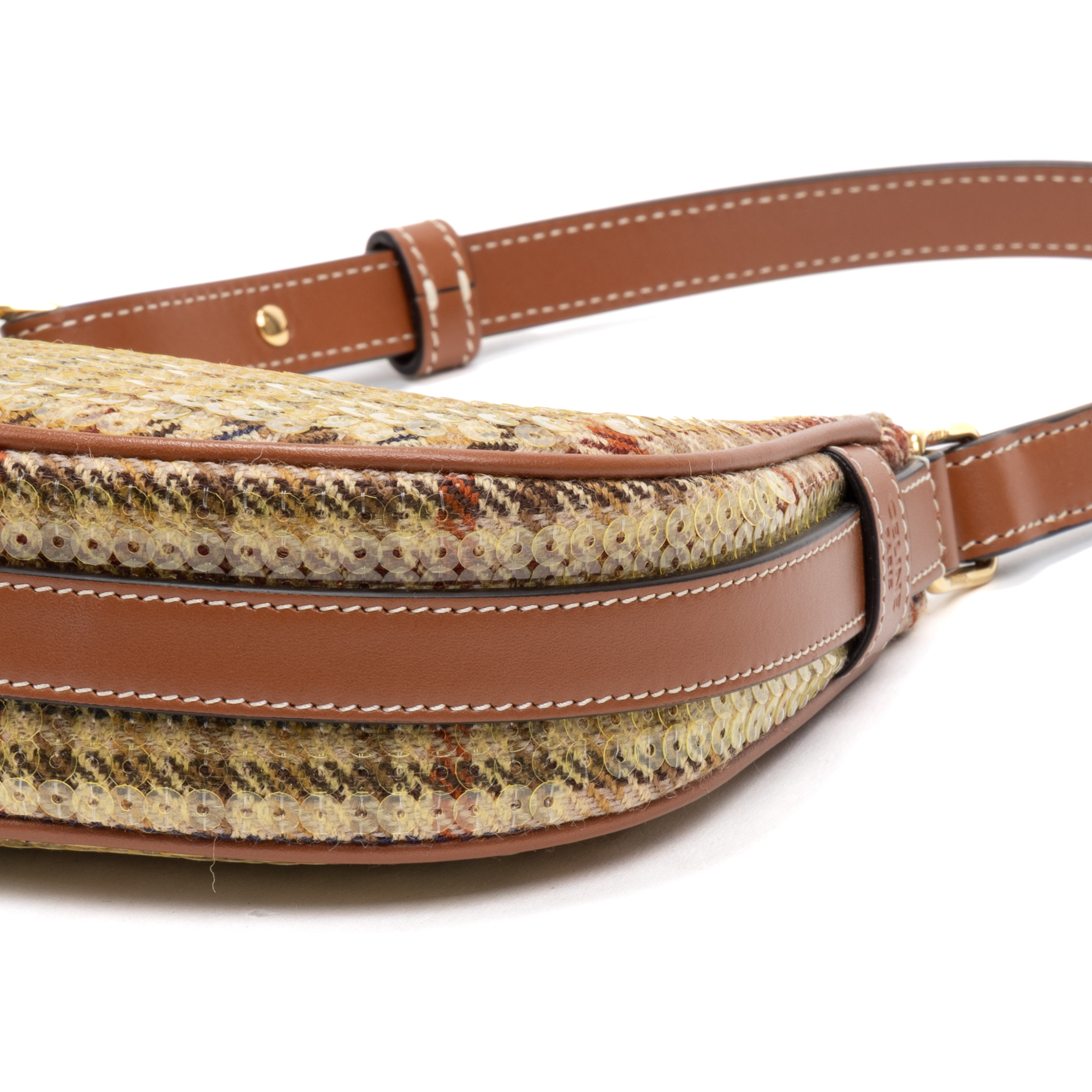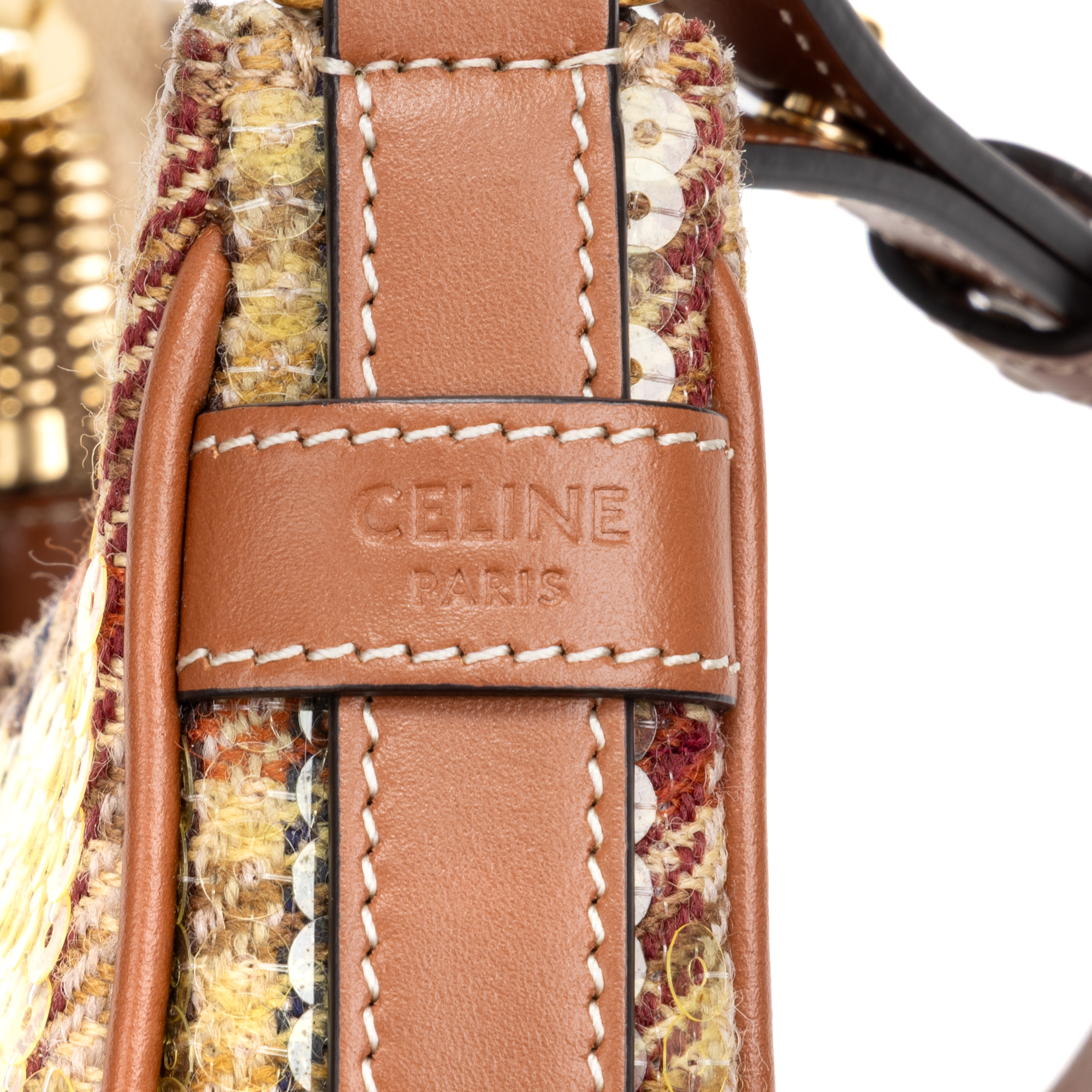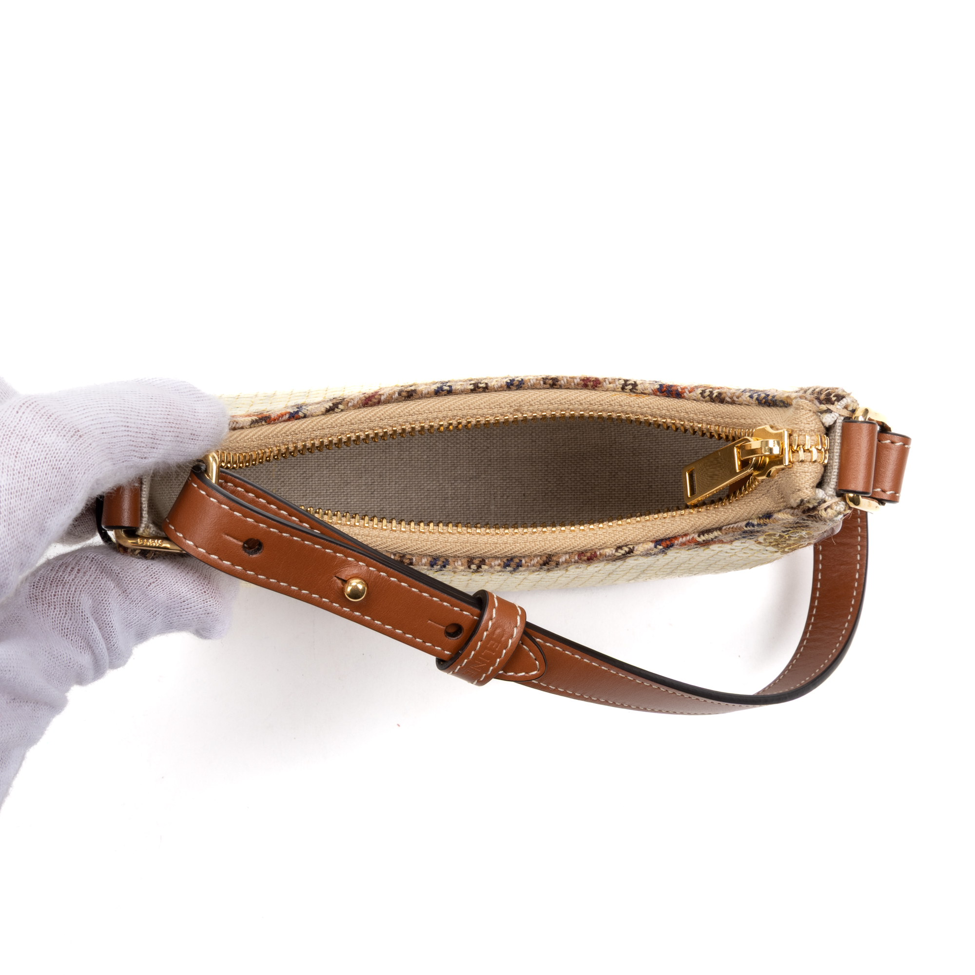 Celine Shoulder Bag Ava Bag Mini in Brown/Beige Tweed Canvas/Sequins and Gold hardware. The product is in Perfect Condition (AA).