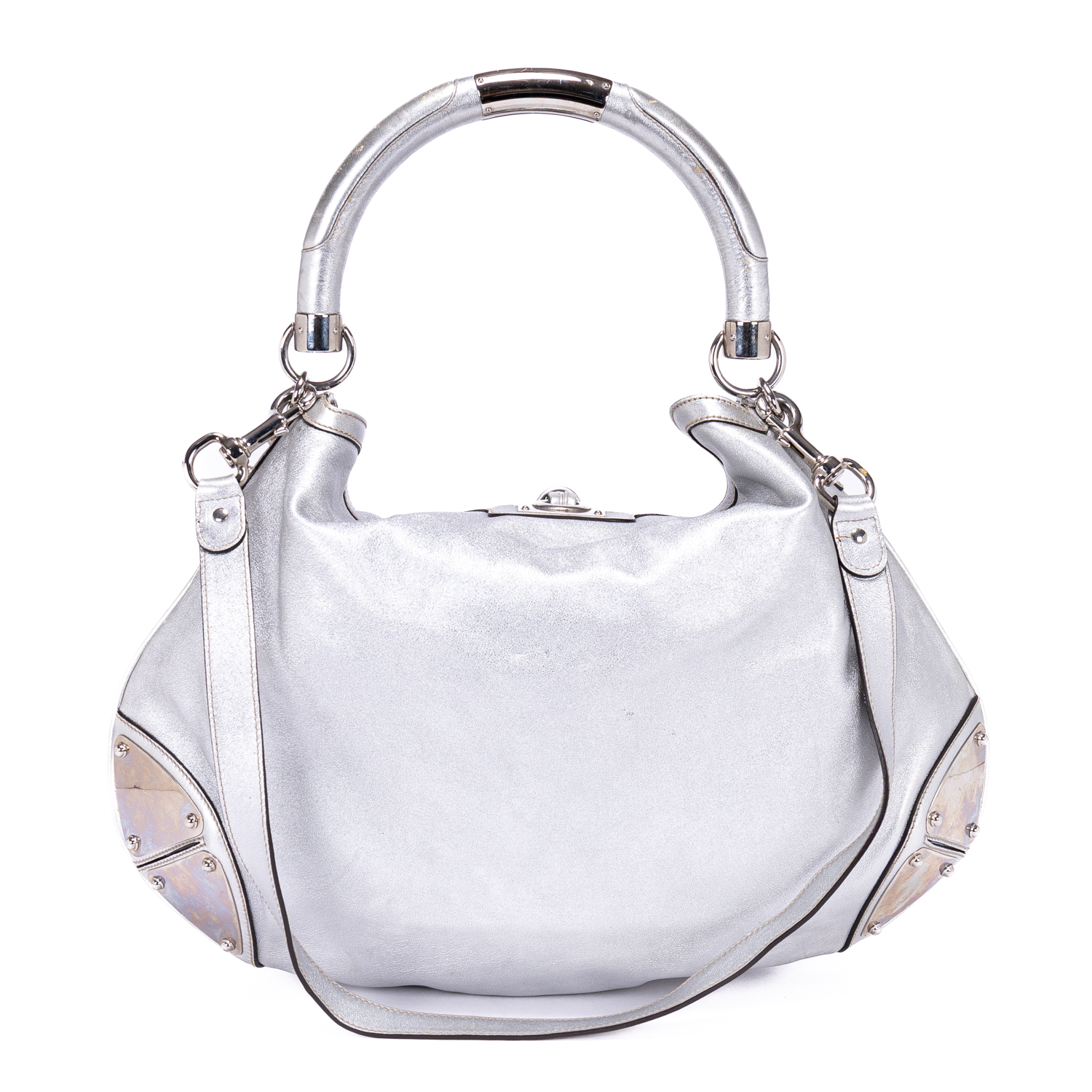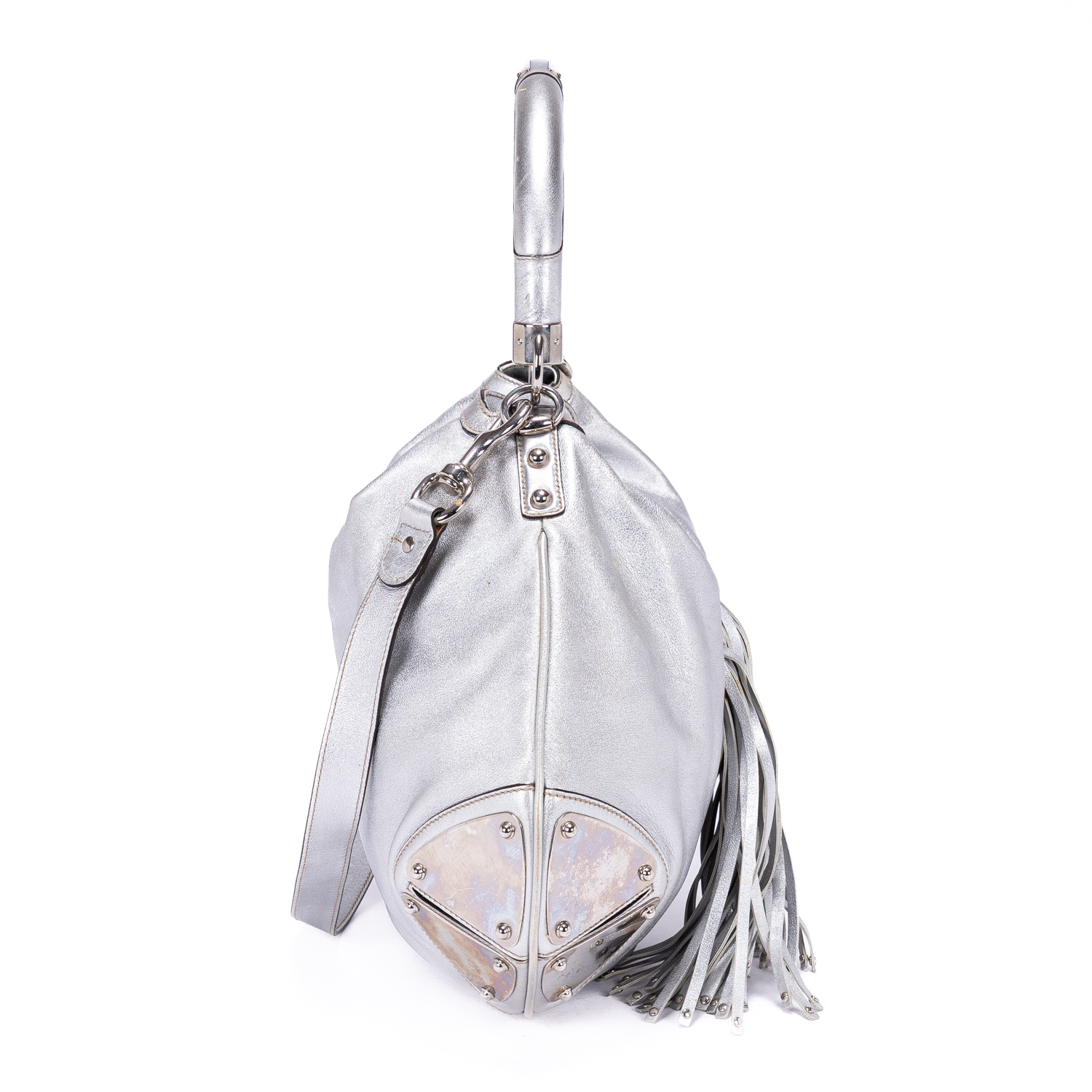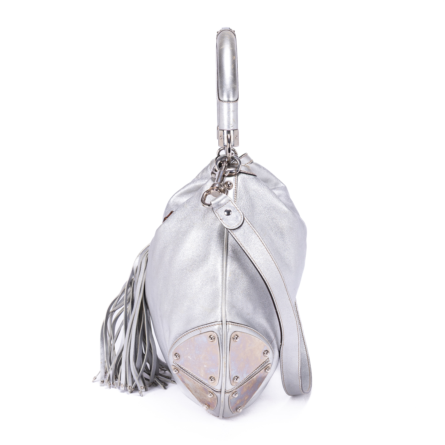 Gucci Shoulder Bag Babouska Tassel in Silver Smooth Leather and Silver hardware. The product is in Excellent Condition (A).