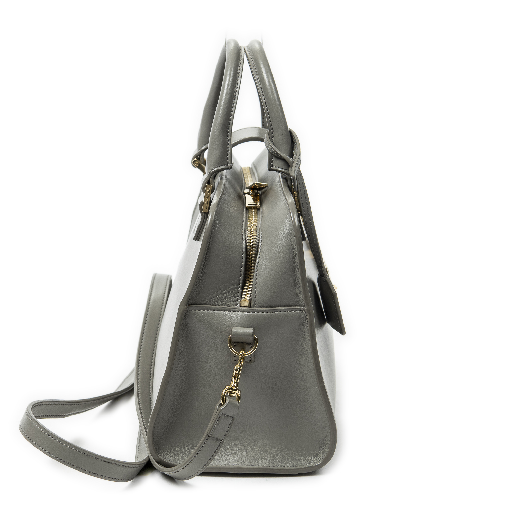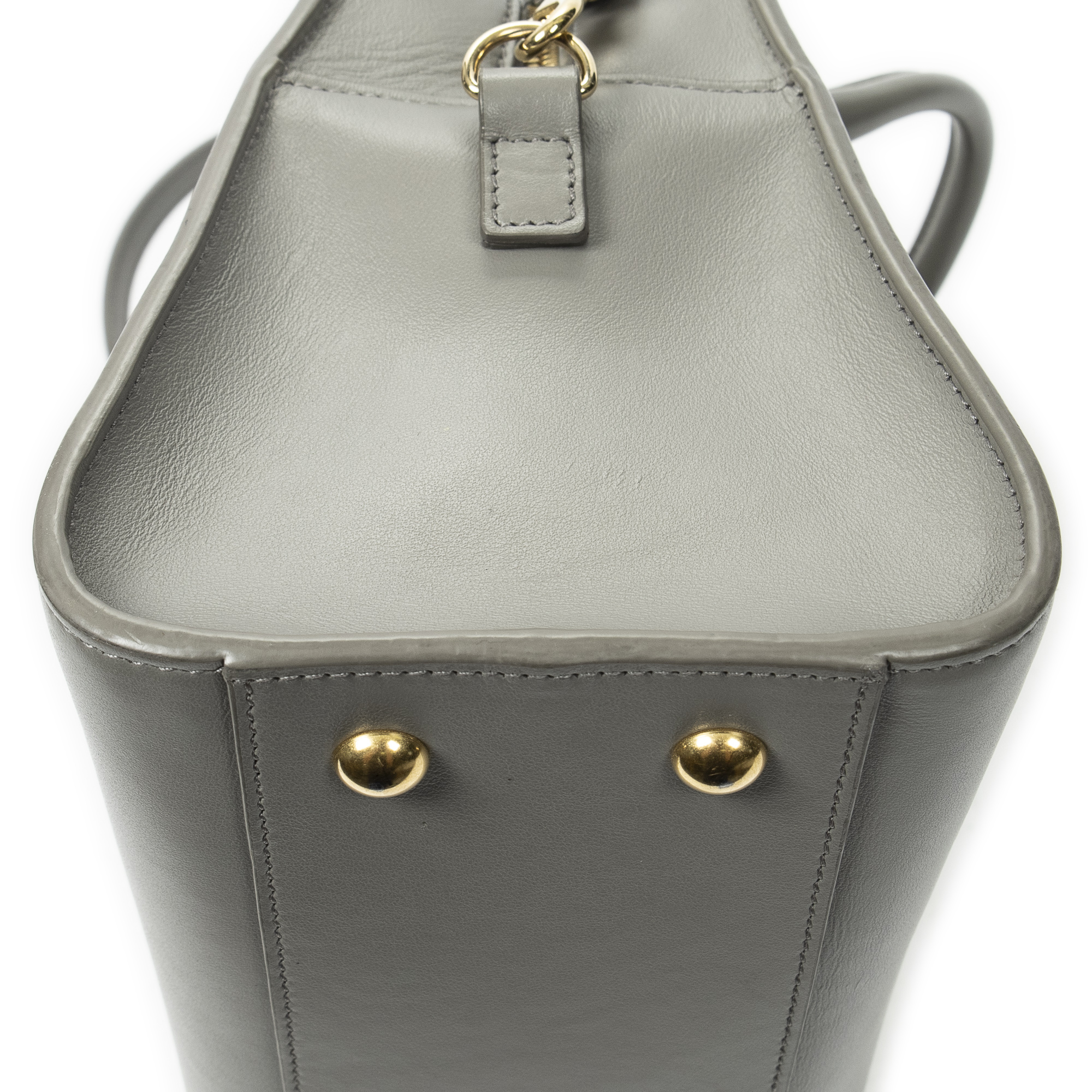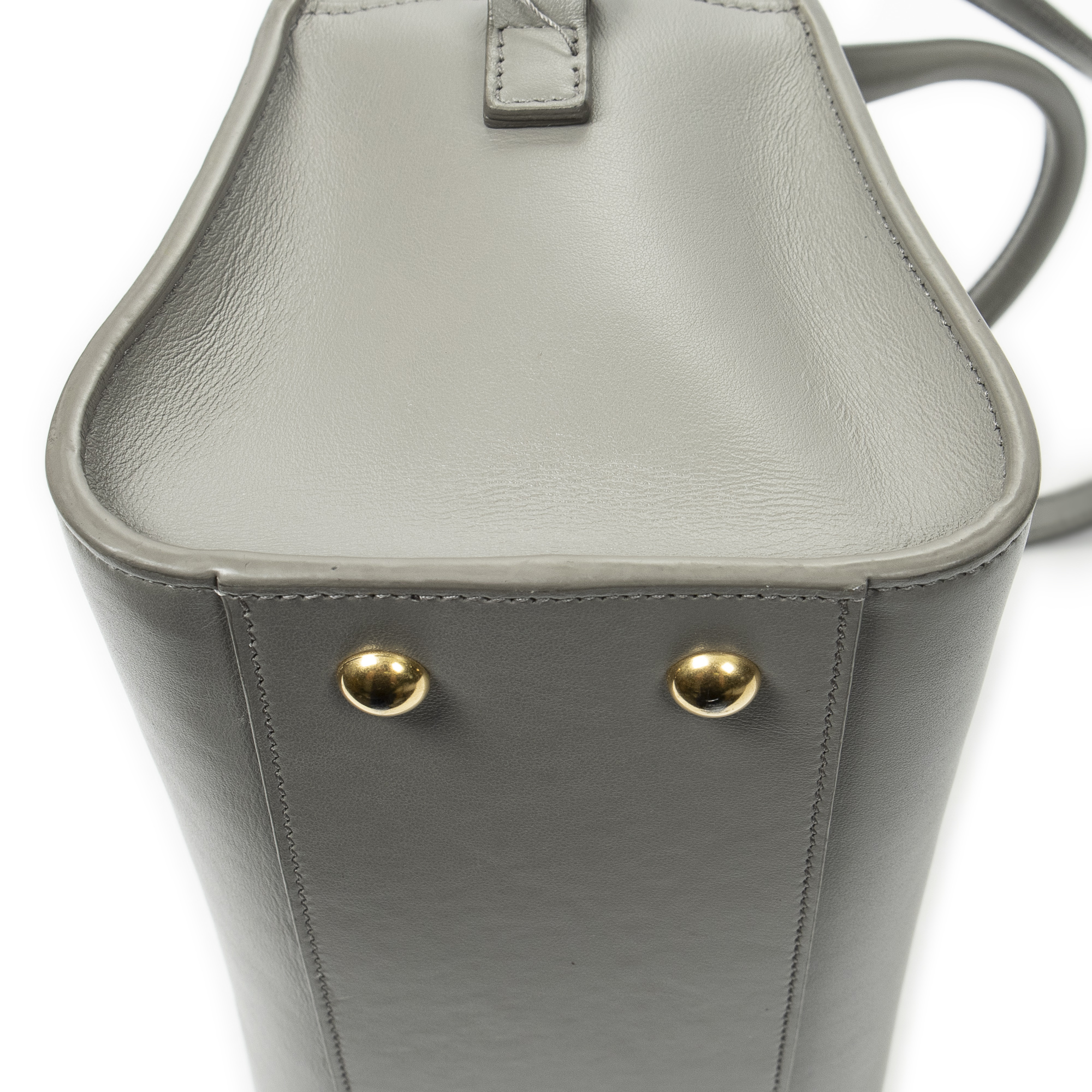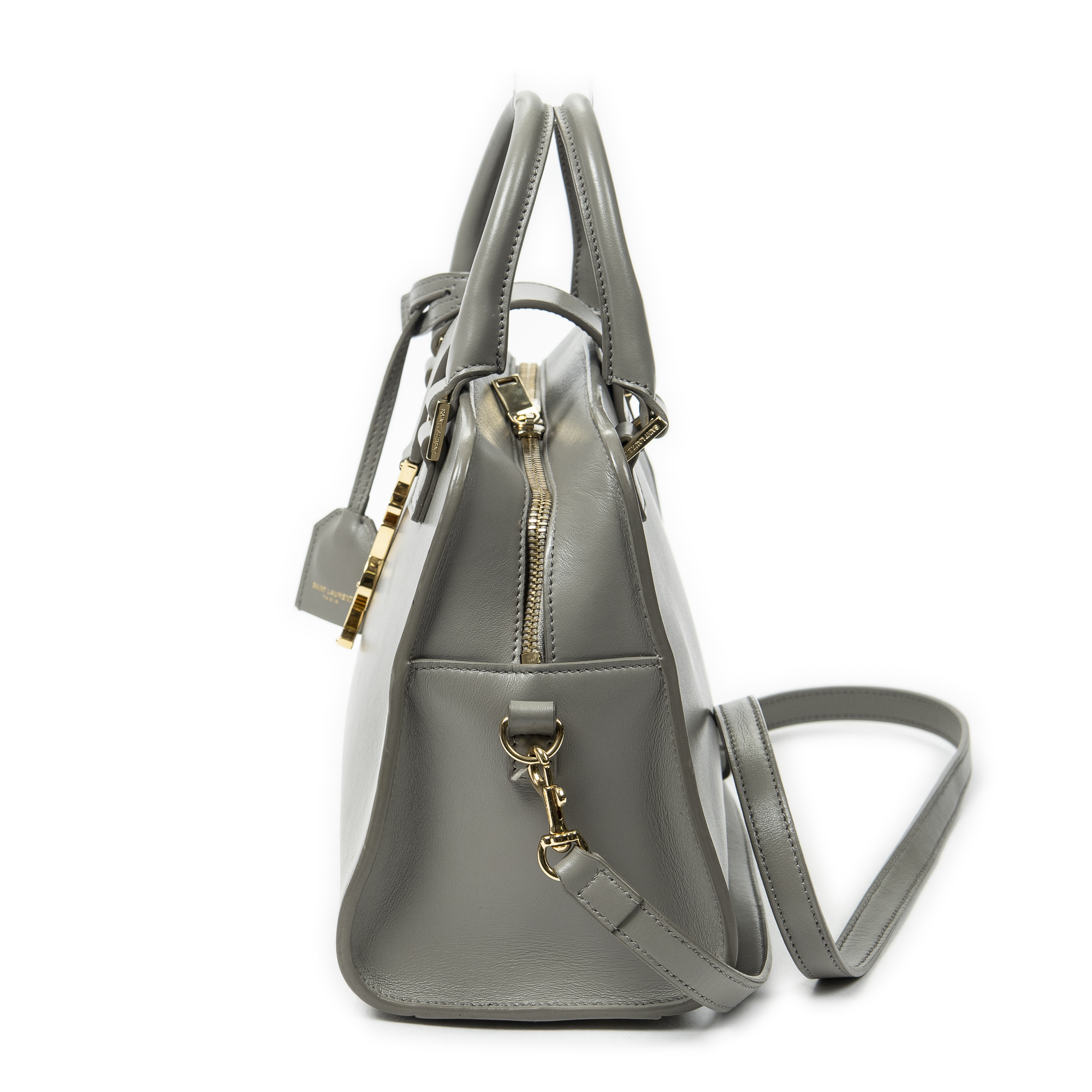 Yves Saint Laurent Shoulder Bag Baby Monogram Cabas in Taupe Calfskin Leather and Gold hardware. The product is in Excellent Condition (A).
