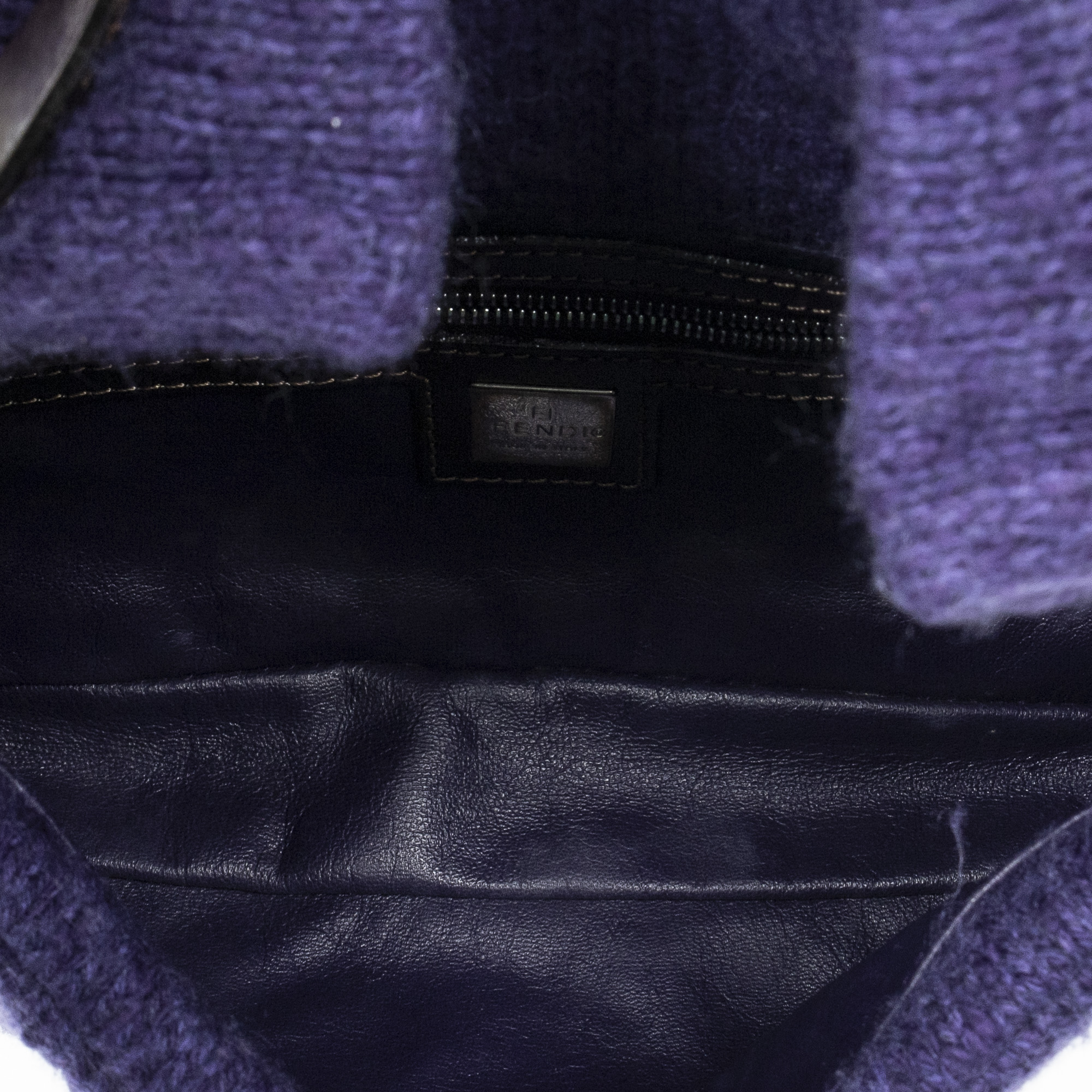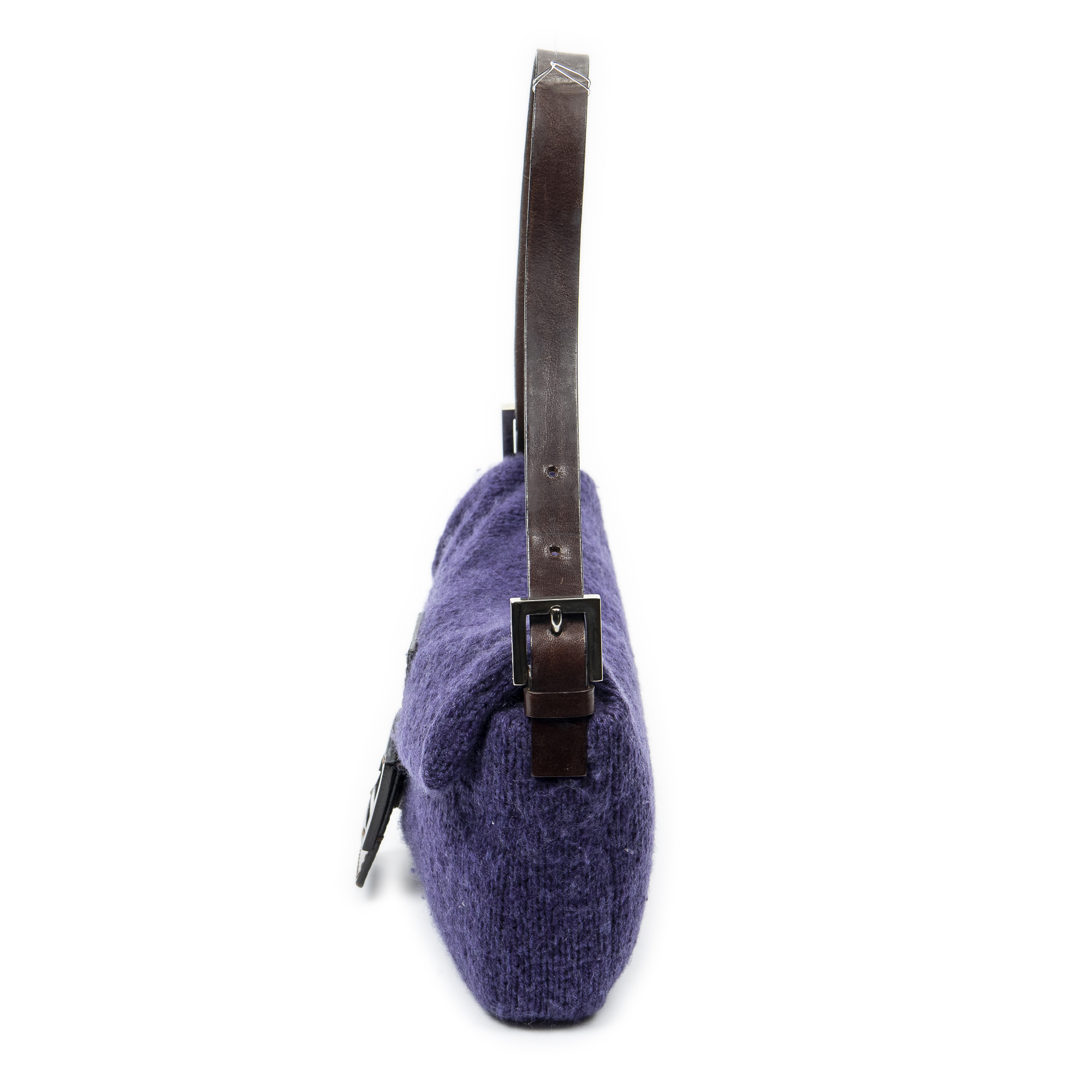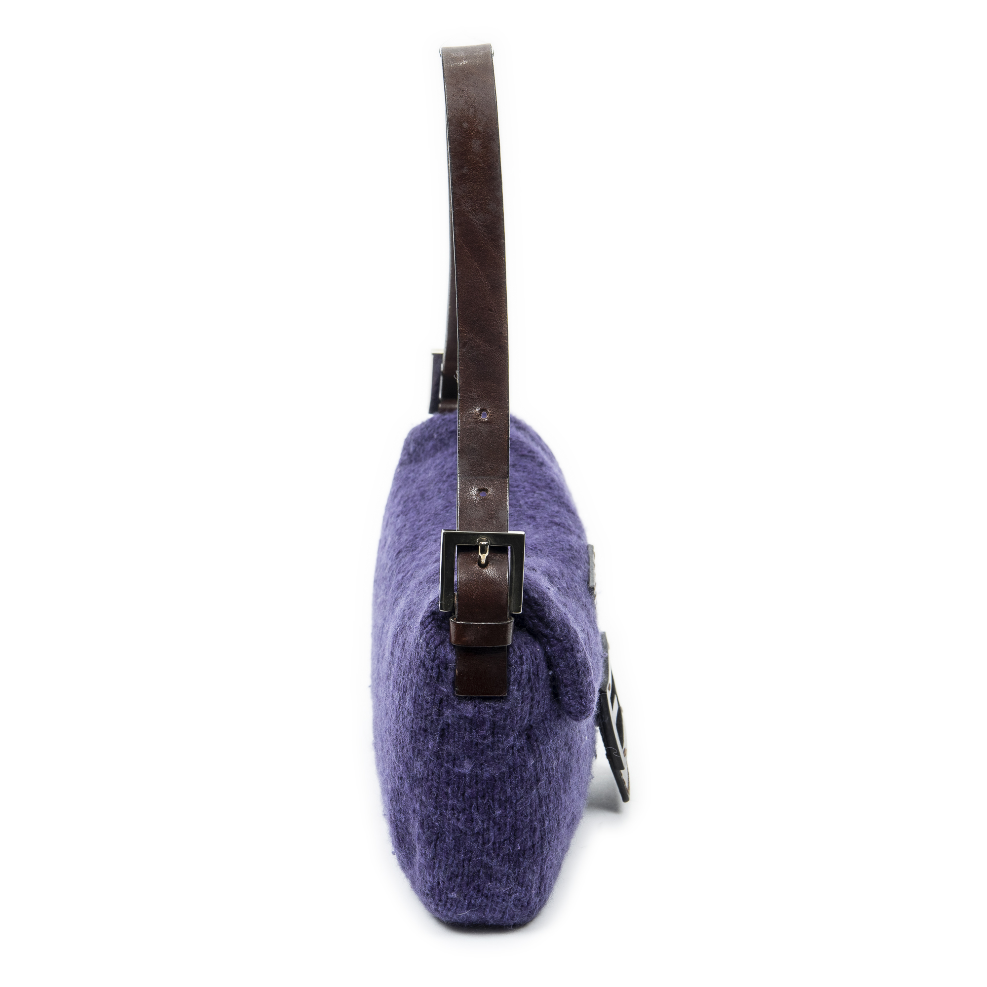Fendi Shoulder Bag Baguette in Purple/Brown Wool Canvas and Silver hardware. The product is in Very Good Condition (AB).