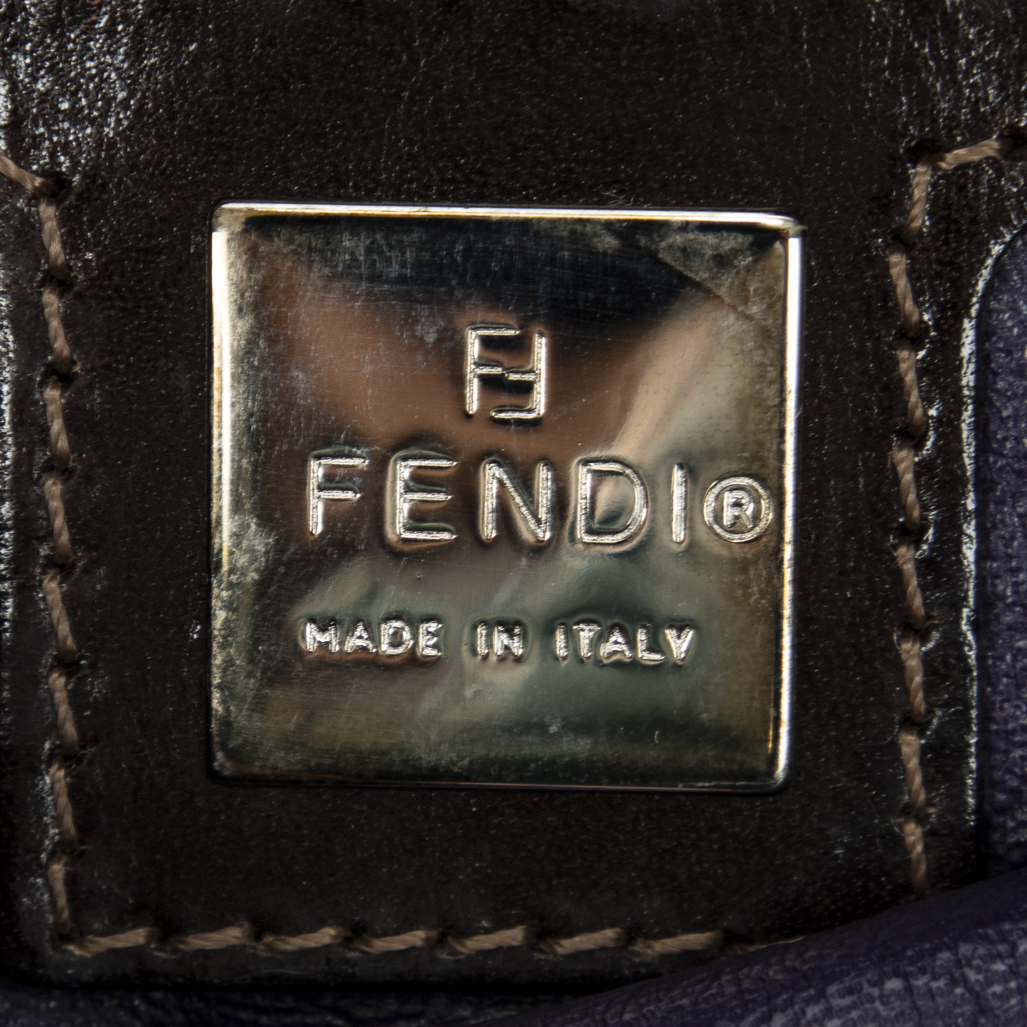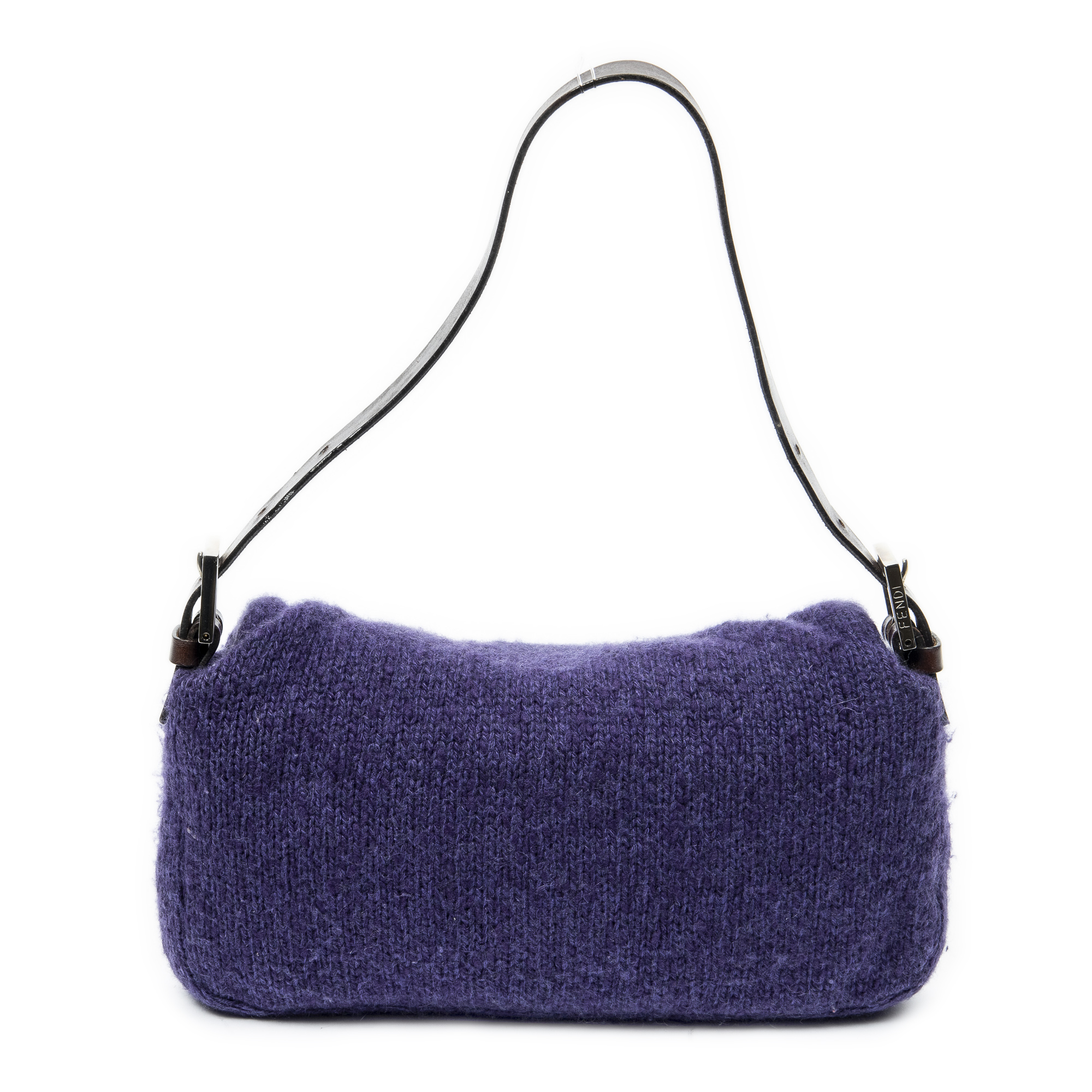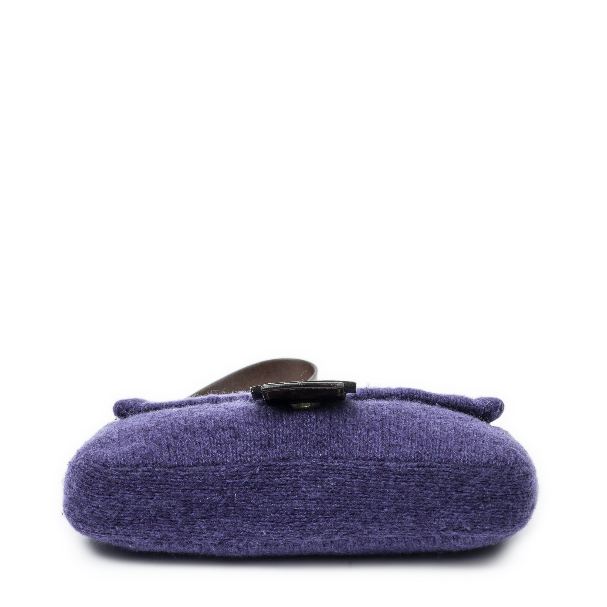 Fendi Shoulder Bag Baguette in Purple/Brown Wool Canvas and Silver hardware. The product is in Very Good Condition (AB).