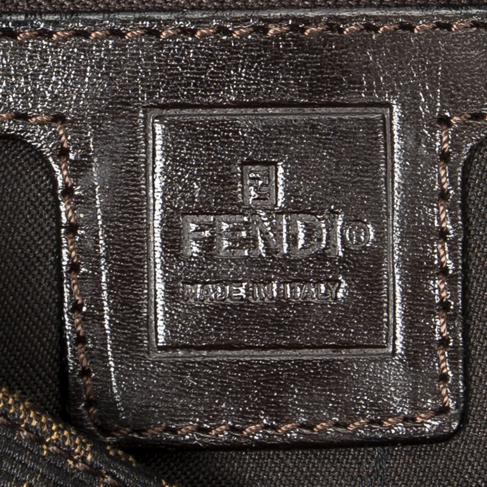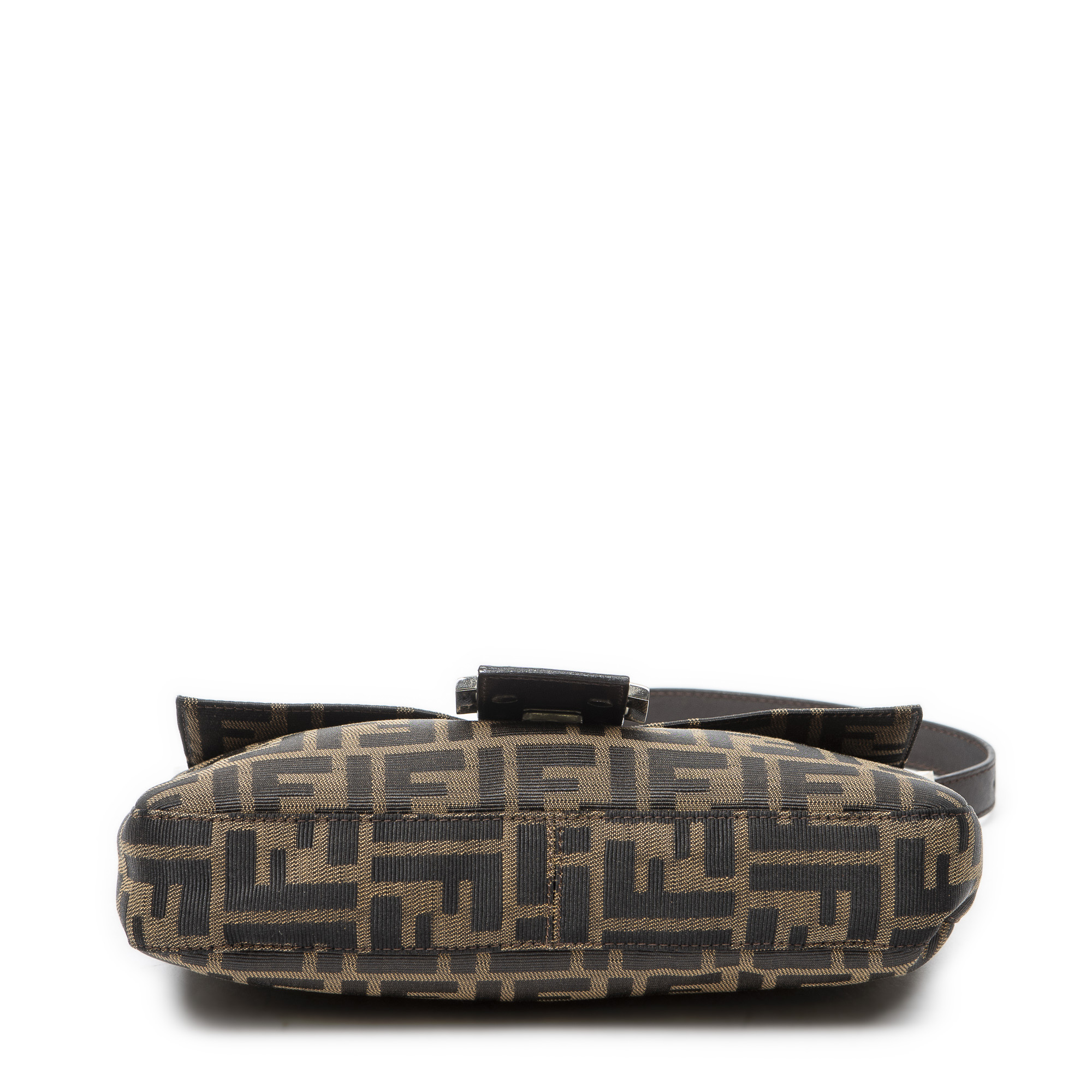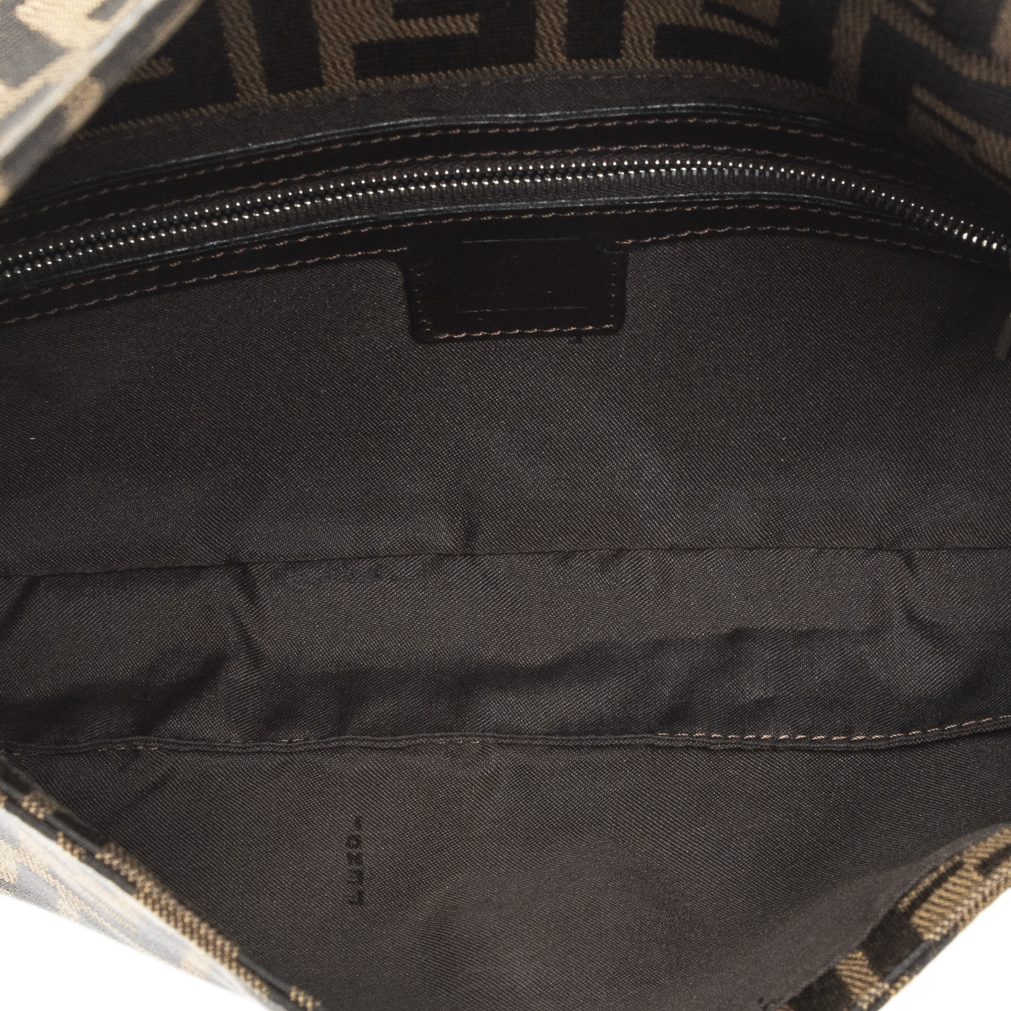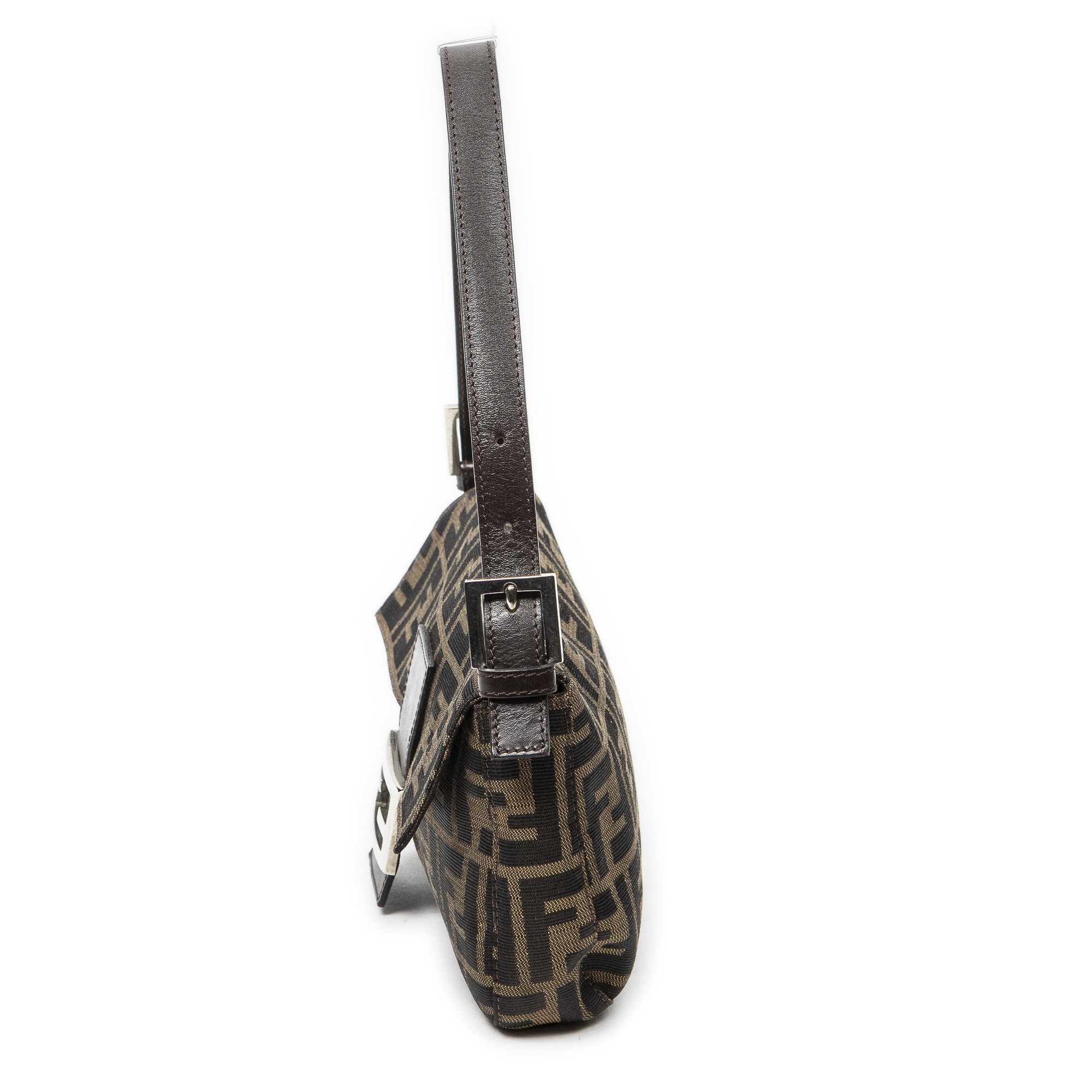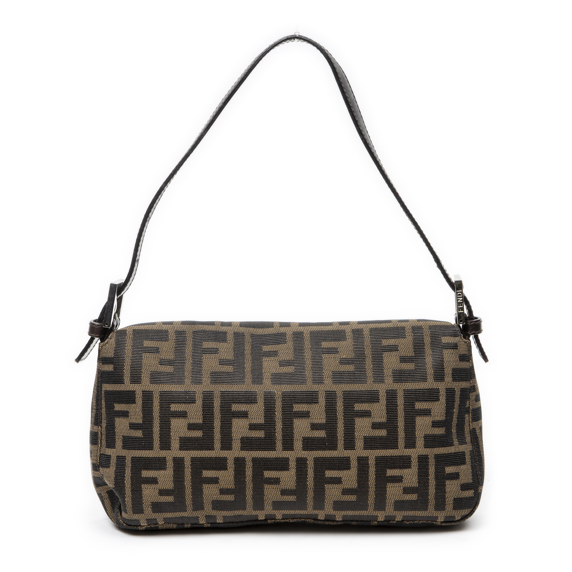 Fendi Handbag Baguette in Khaki/Dark Brown Zucca Canvas and Silver hardware. The product is in Excellent Condition (A).