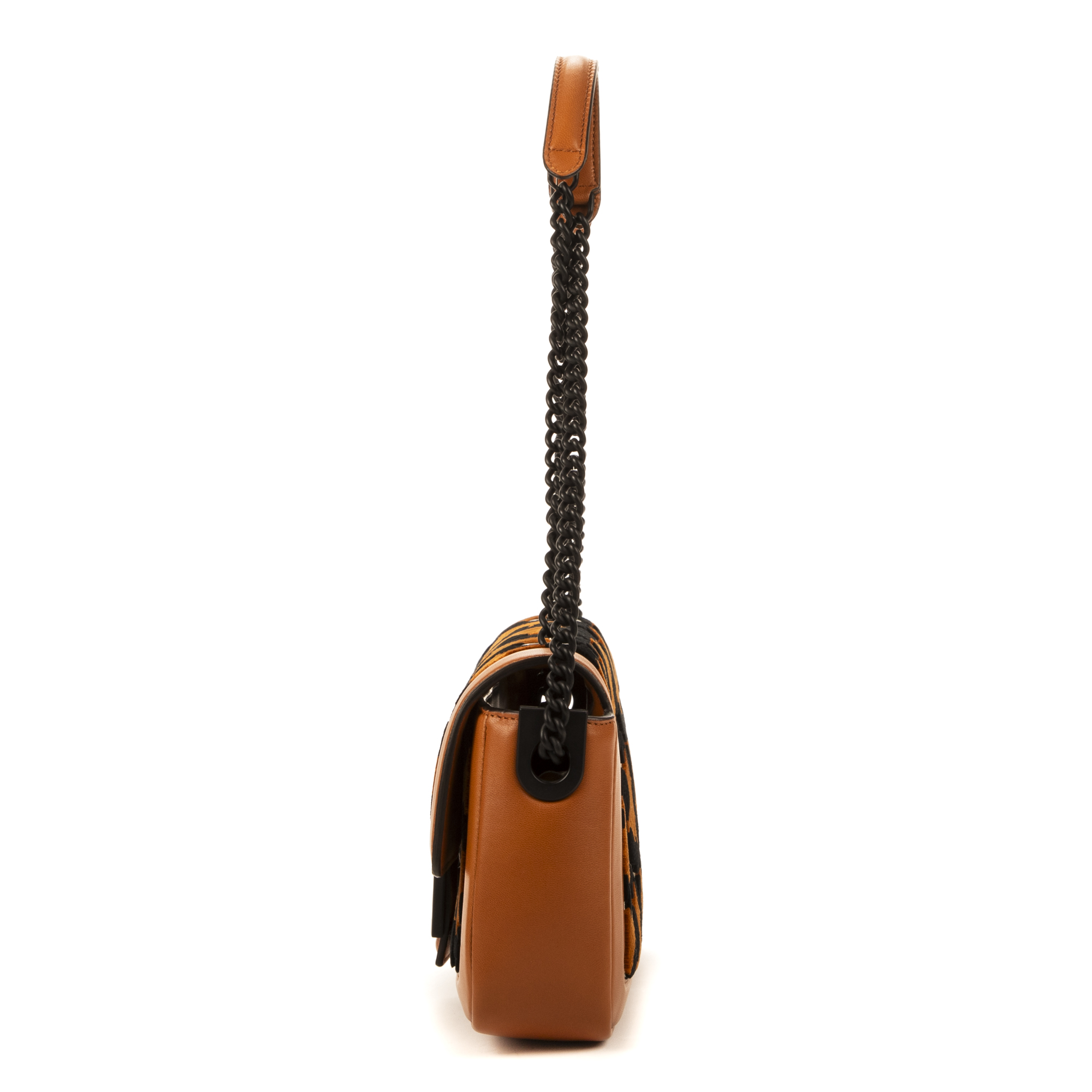 Fendi Shoulder bag Baguette Leopard in Brown Calfskin/Velvet Leopard Leather and Black Matte Metal hardware. The product is in Perfect Condition (AA).