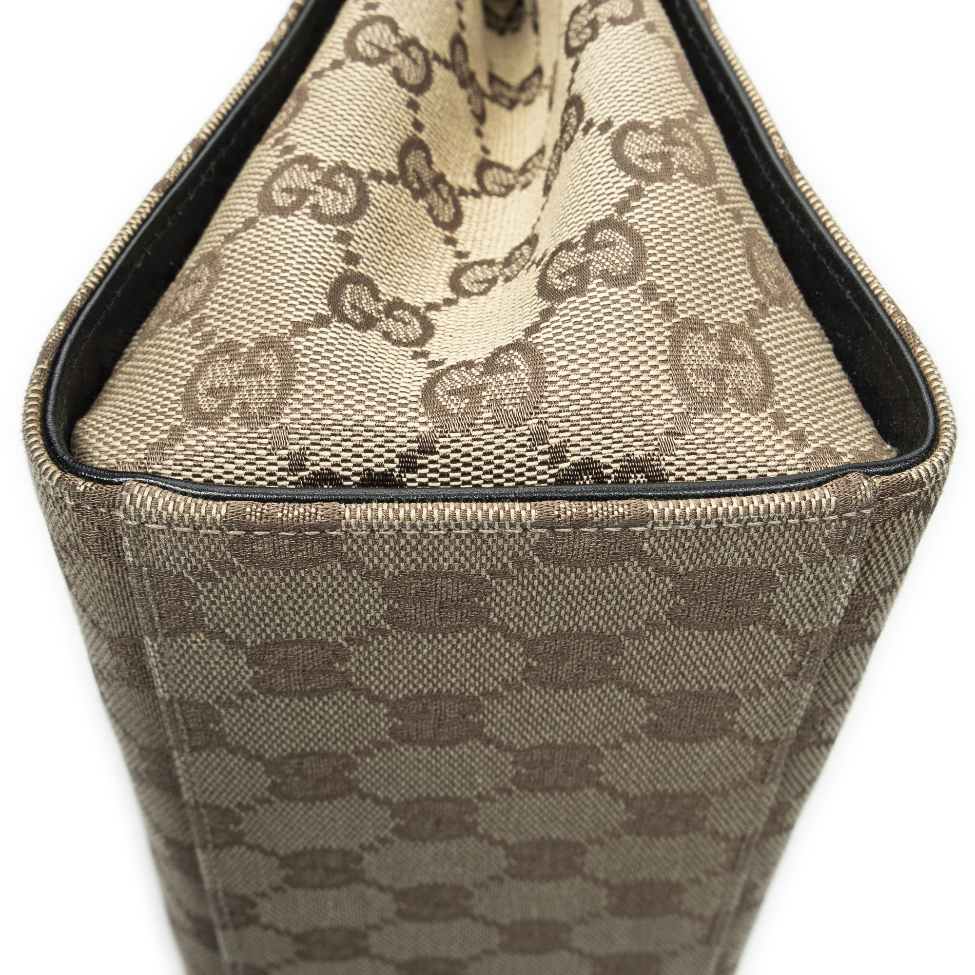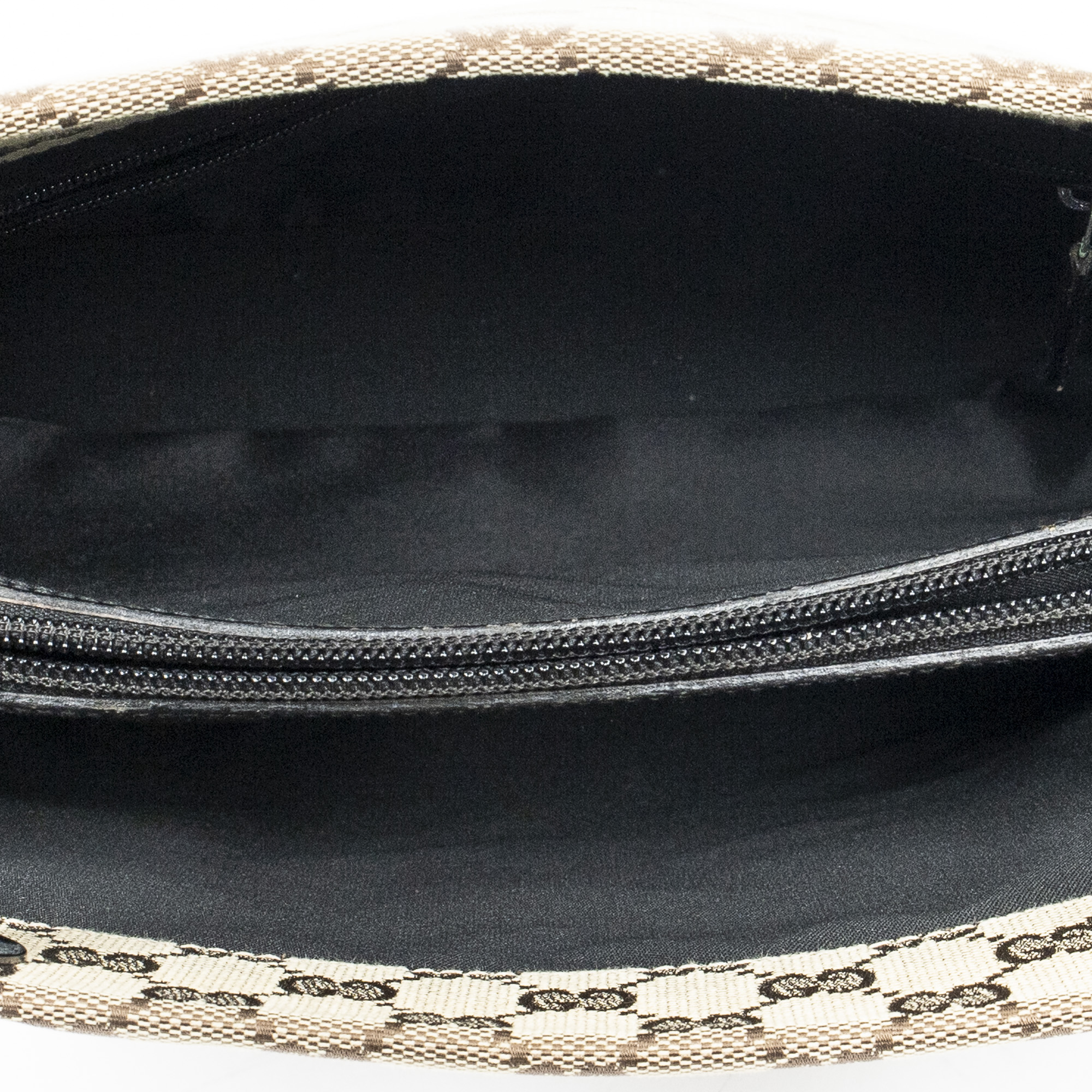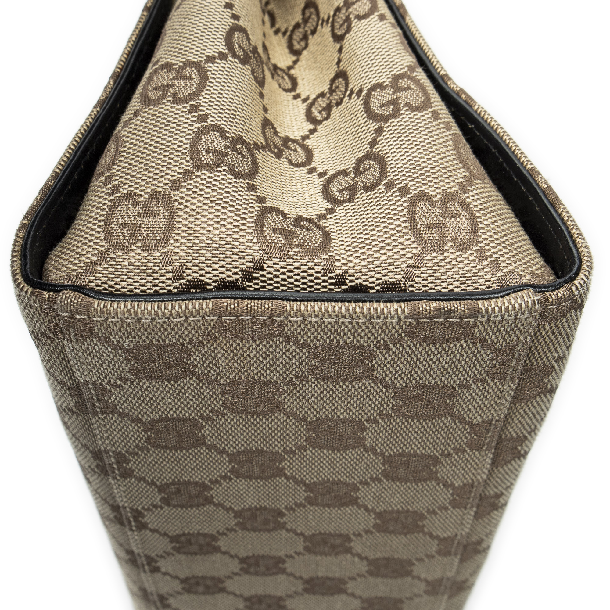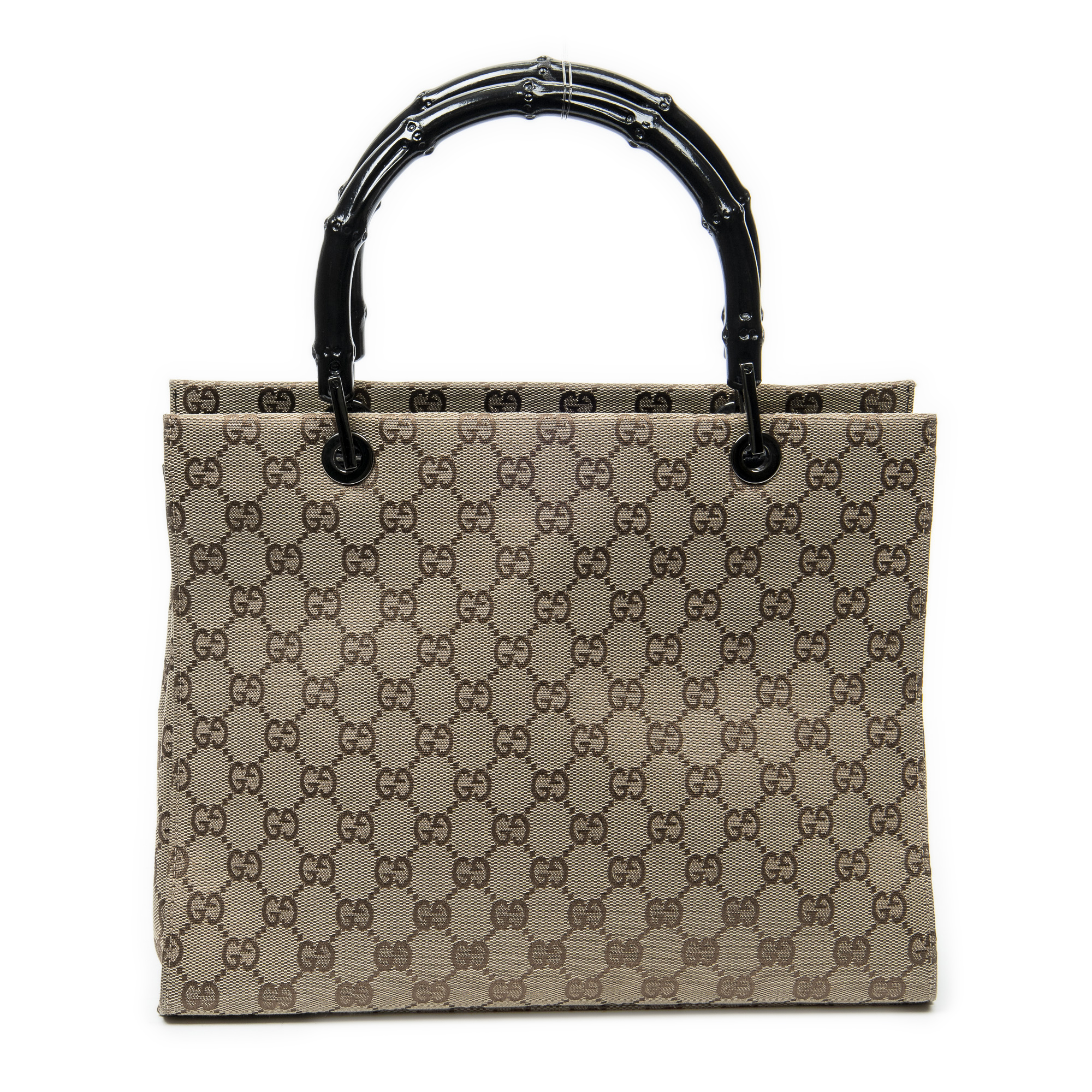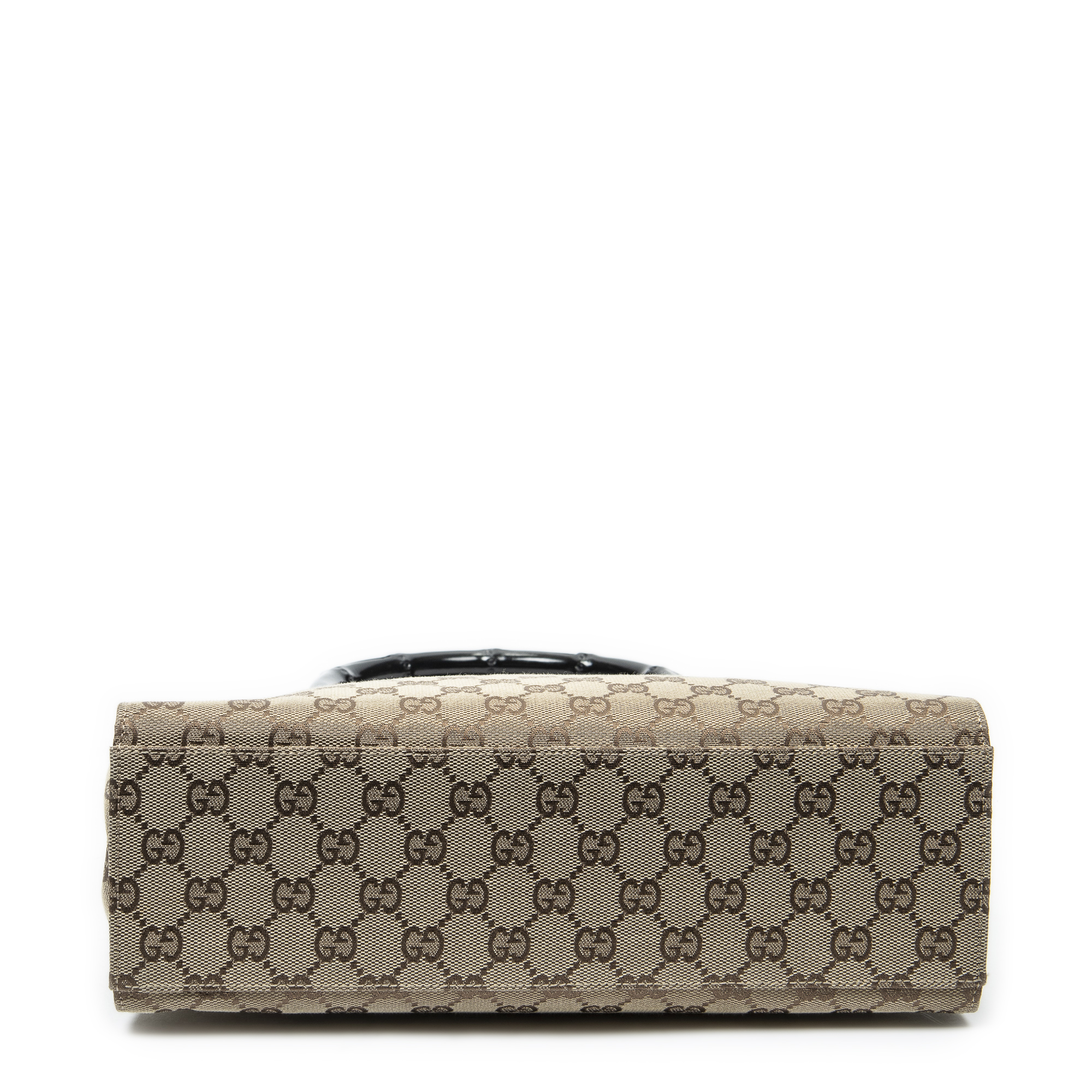 Gucci Shoulder Bag Bamboo Square Tote in Black/Beige Monogrammed Canvas and Silver hardware. The product is in Excellent Condition (A).