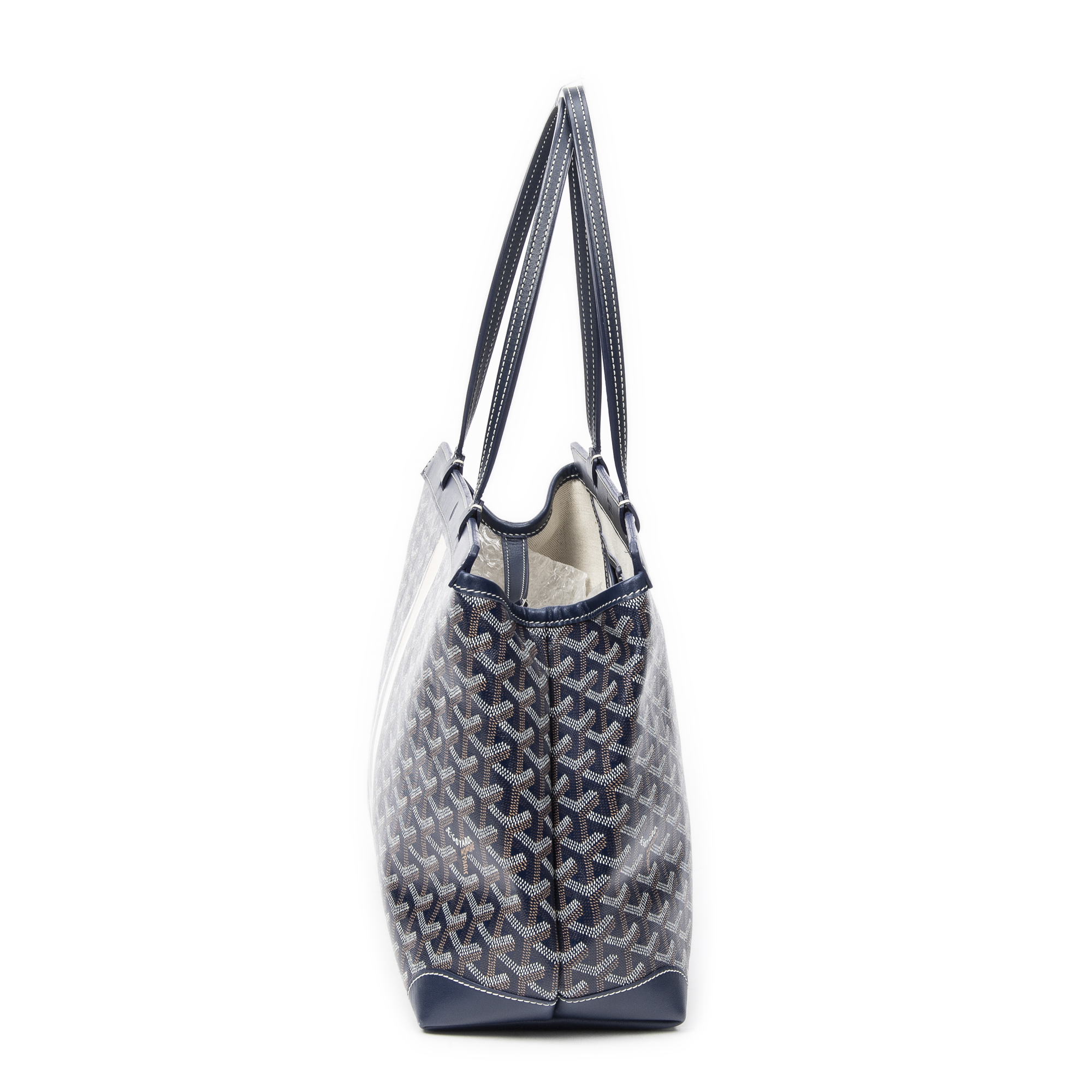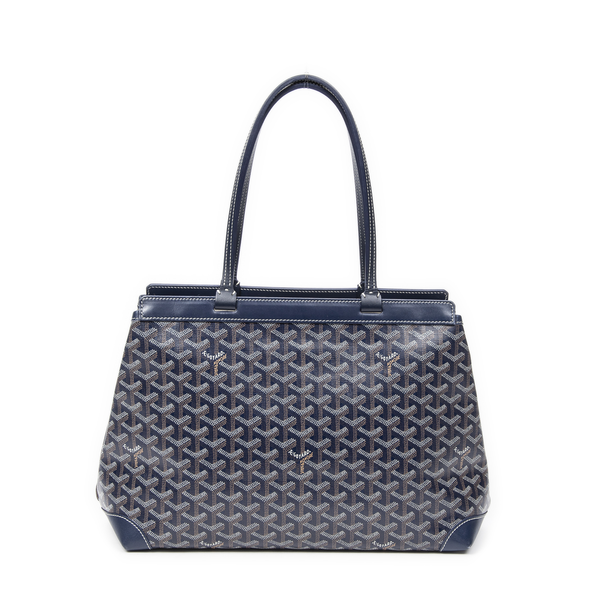 Goyard Shoulder Bag Bellechasse Biaude PM in Navy Goyardine Coated Canvas and Palladium hardware. The product is in Excellent Condition (A).