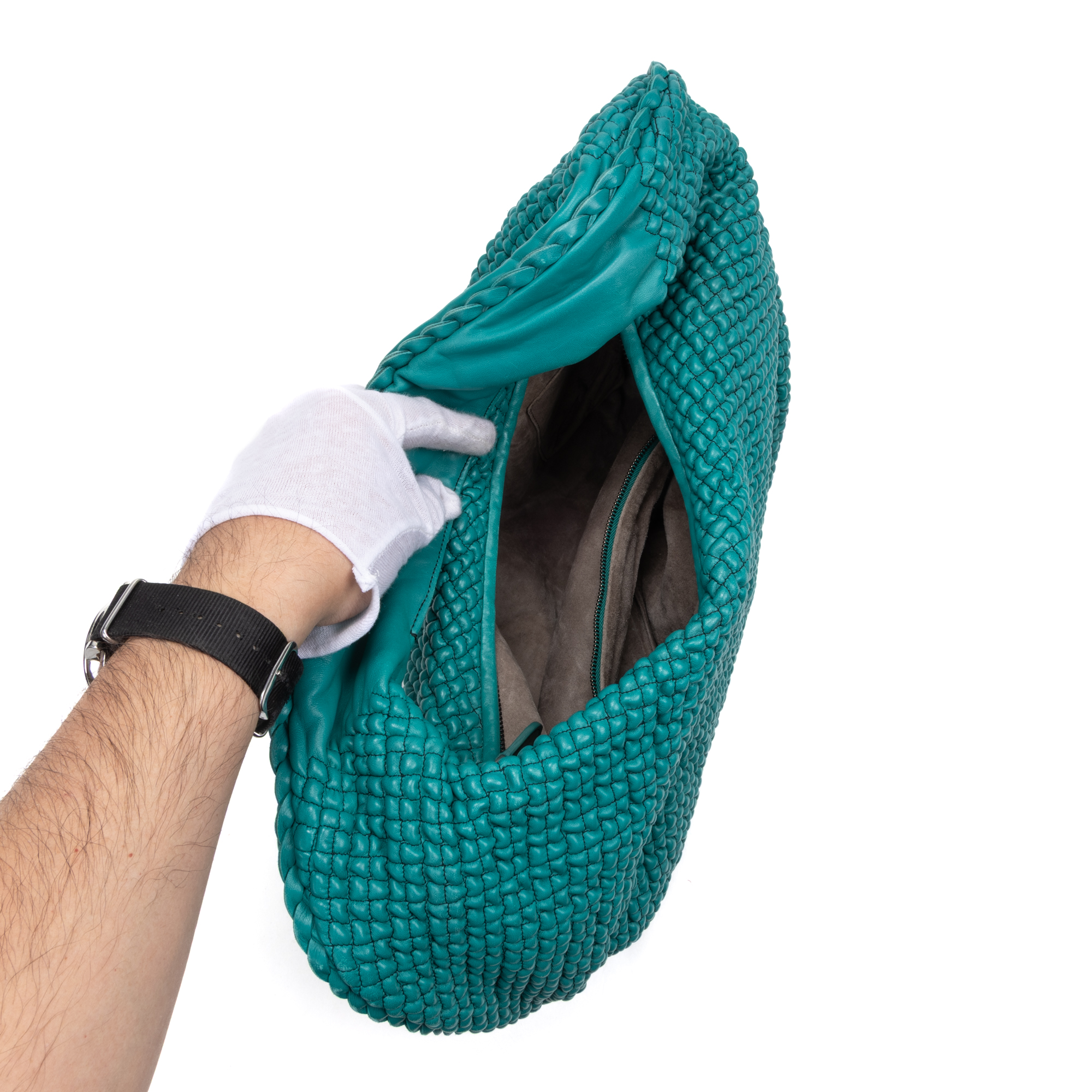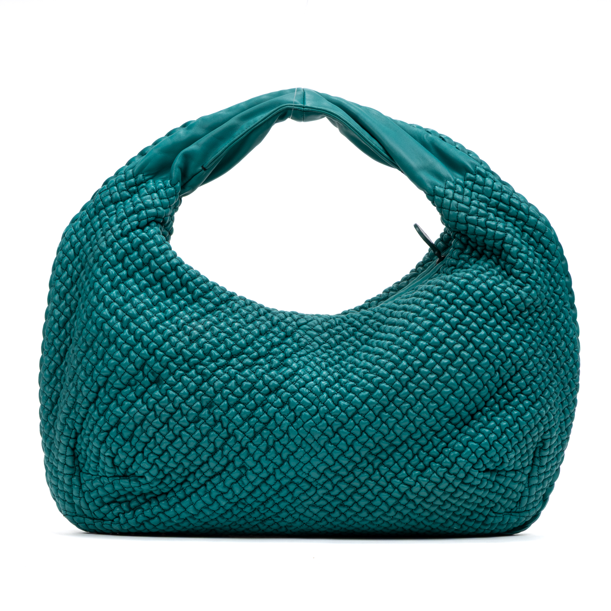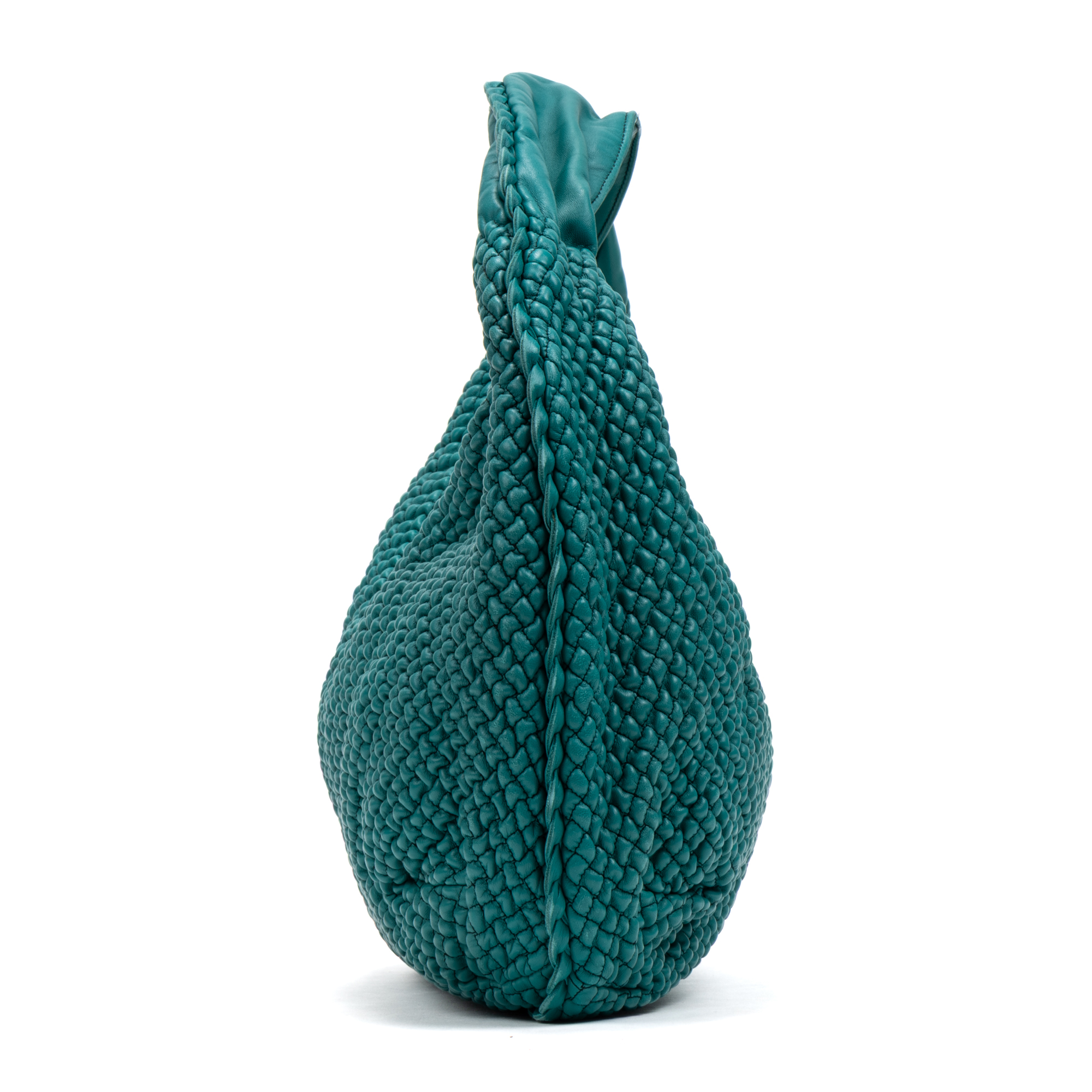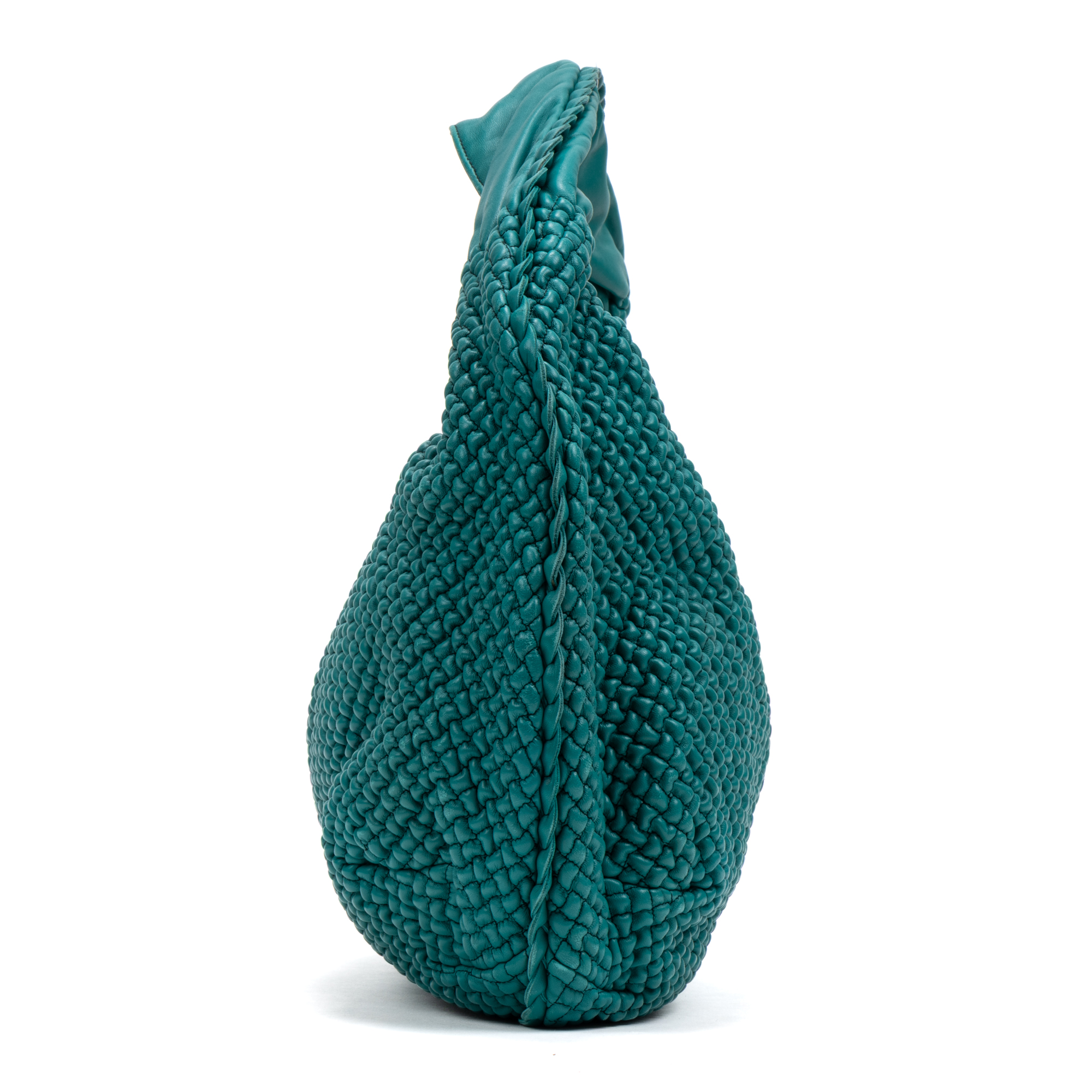 Bottega Veneta Shoulder Bag Belly Hobo Mini in Green Ponza Leather and Brass hardware. The product is in Excellent Condition (A).