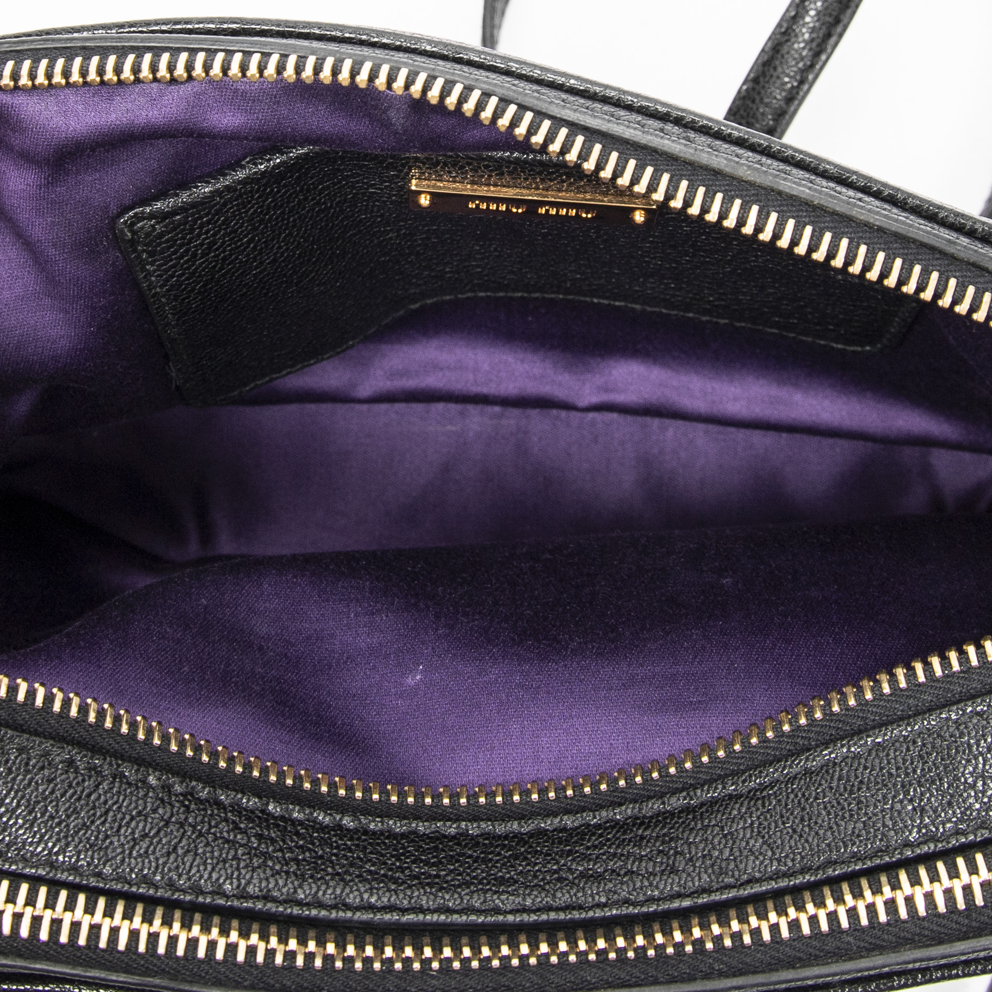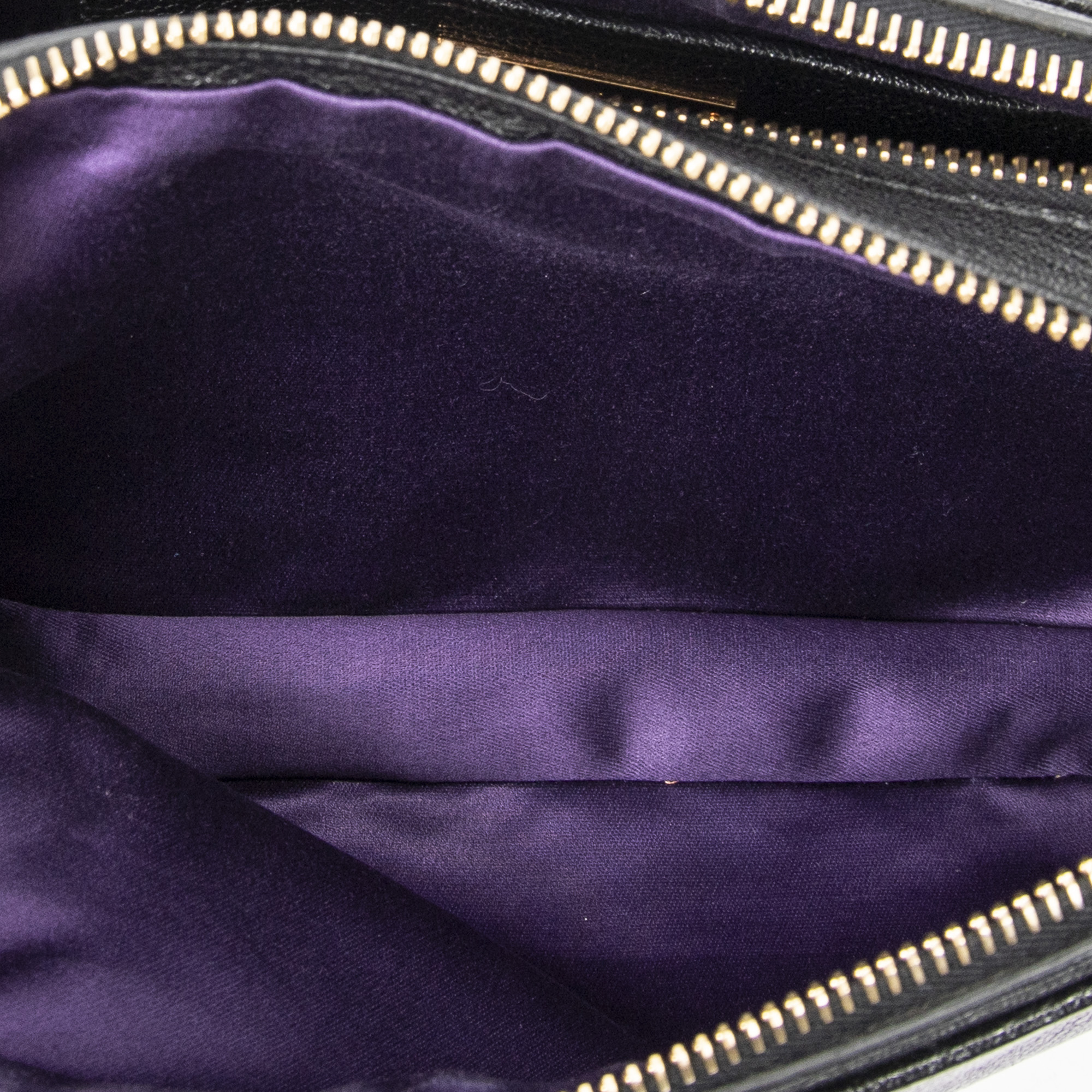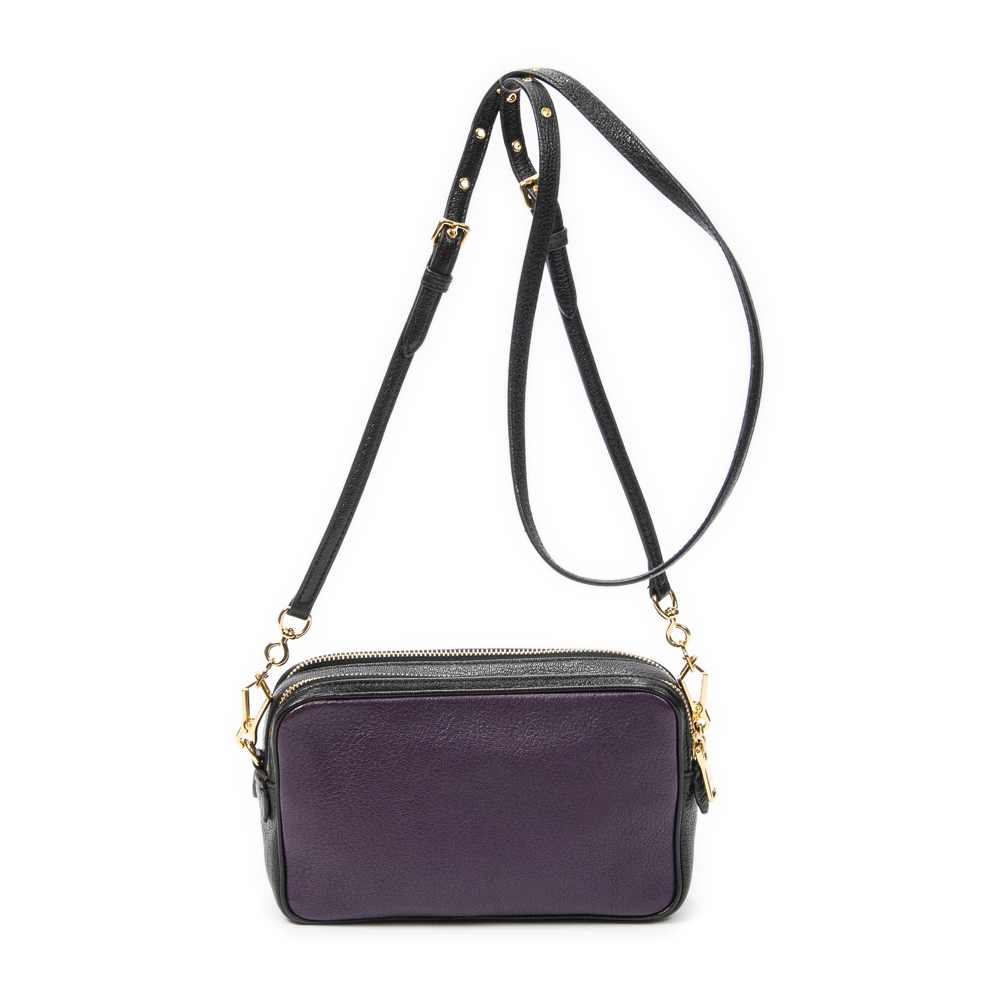 Miu Miu Shoulder Bag Bicolor Double Zip Camera Crossbody in Purple/Black Goatskin Leather and Gold hardware. The product is in Excellent Condition (A).