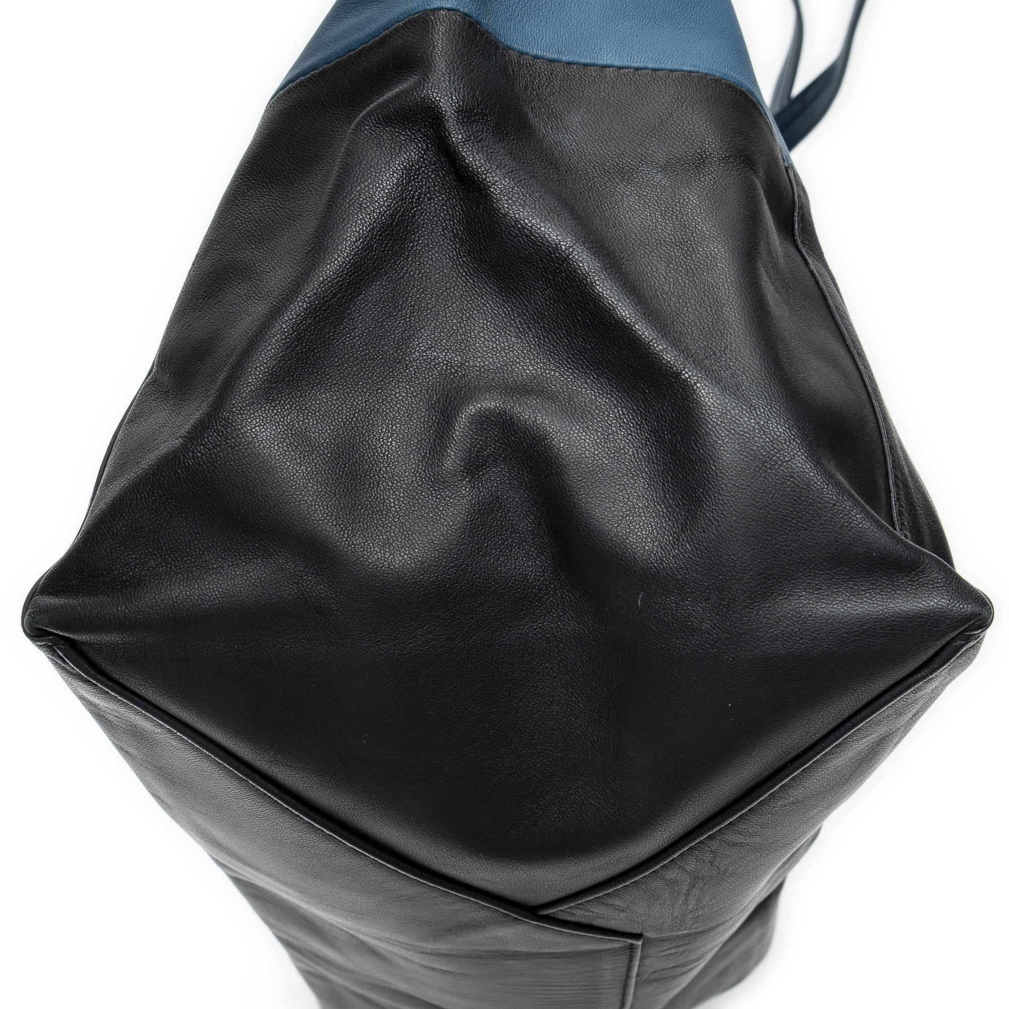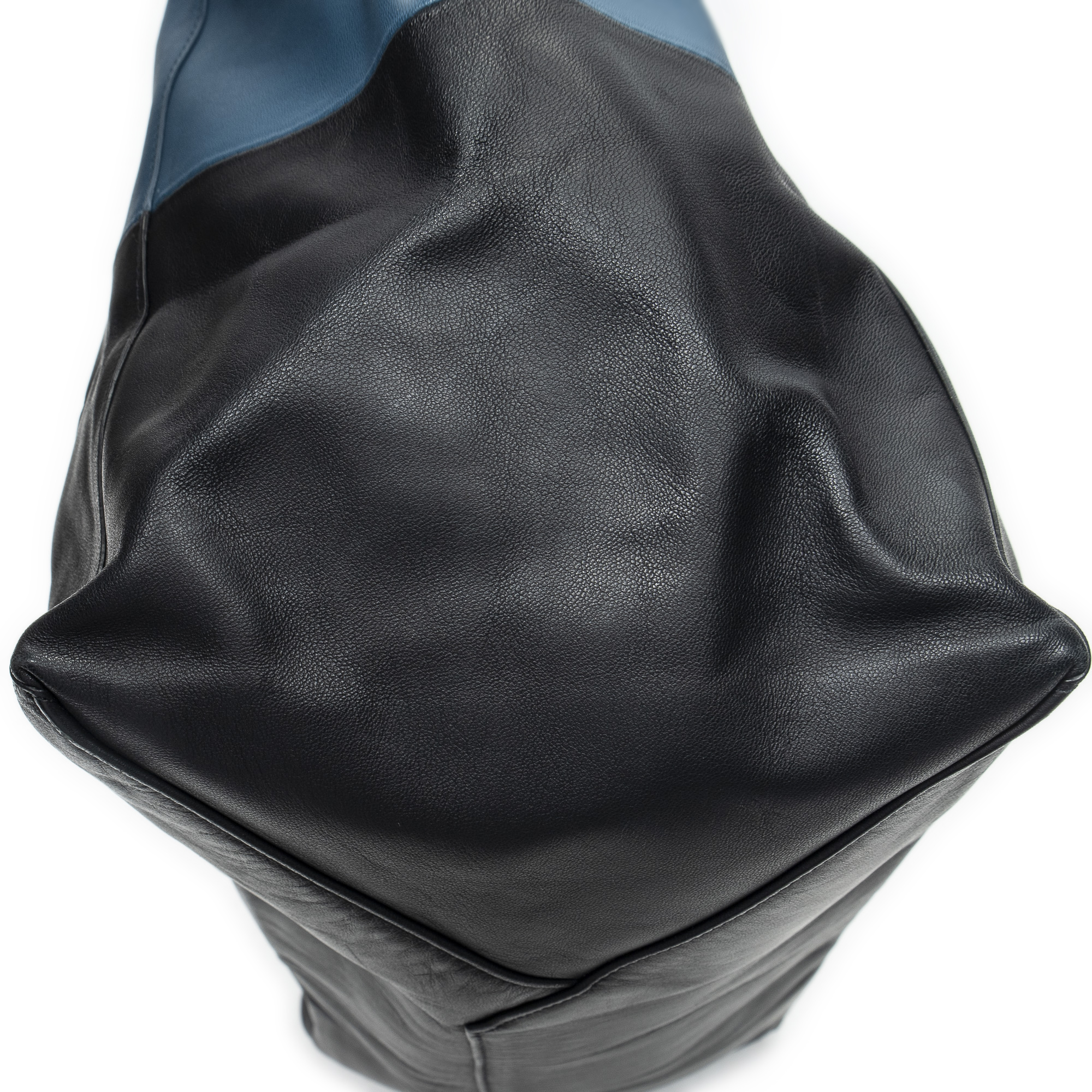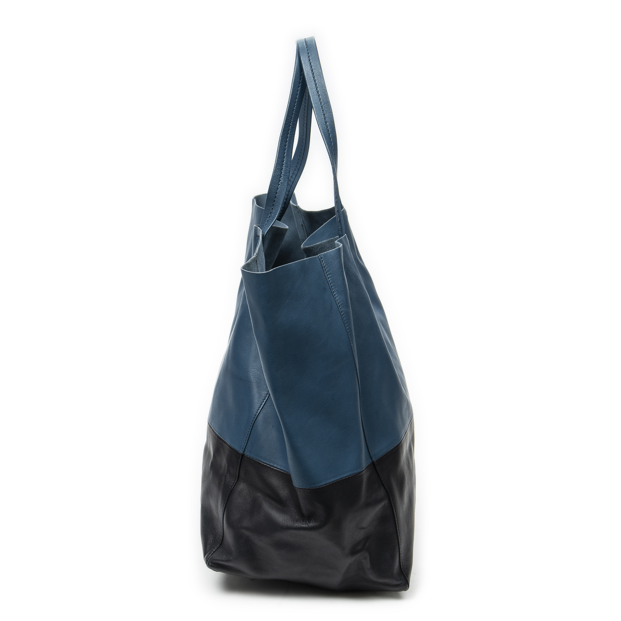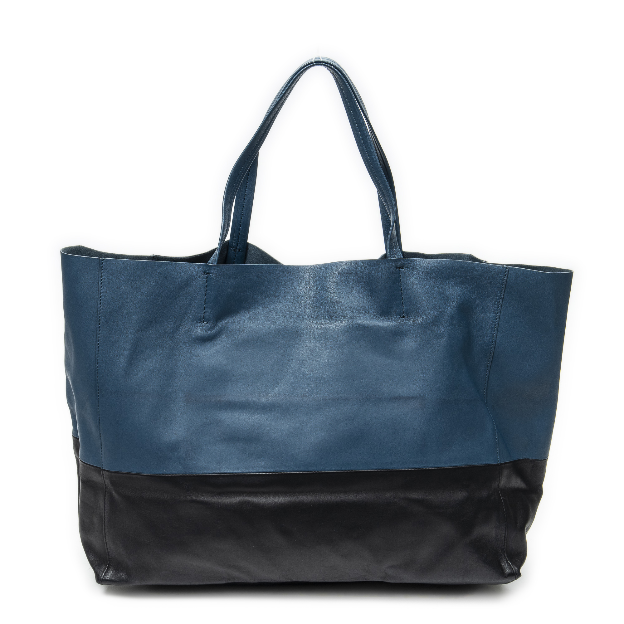 Celine Shoulder Bag Bicolor Horizontal Hippo Tote in Blue/Black Calfskin Leather and Gold hardware. The product is in Very Good Condition (AB).