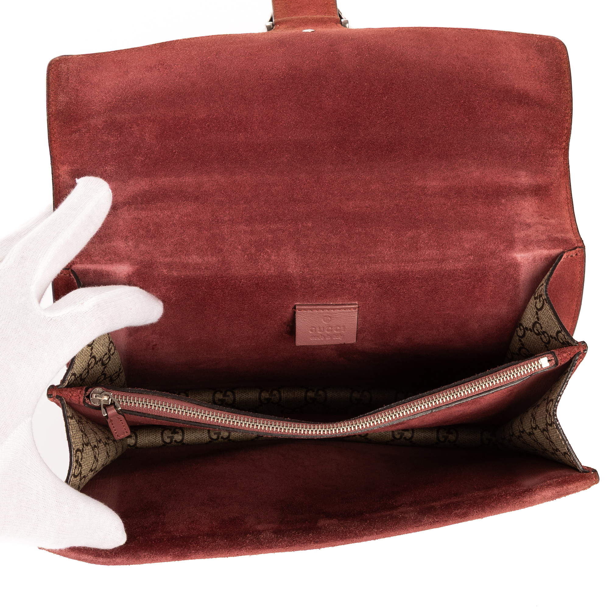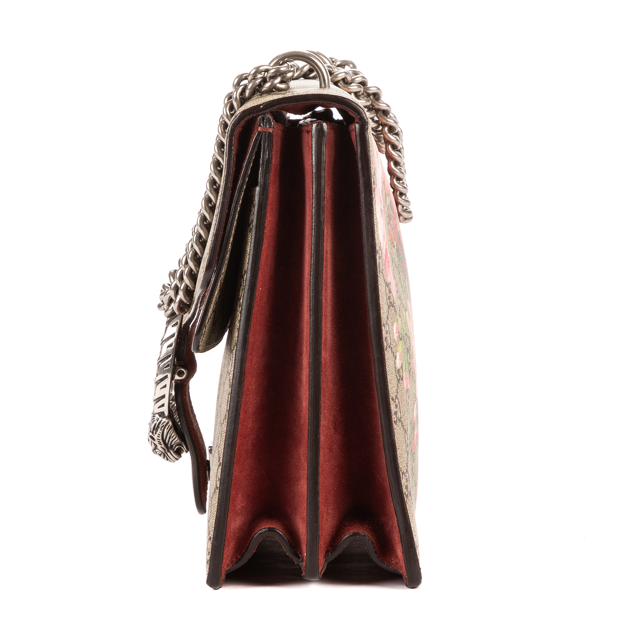 Gucci Shoulder Bag Blooms Dionysus Medium in Beige/Burgundy Blooms Supreme Coated Canvas and Silver hardware. The product is in Excellent Condition (A).
