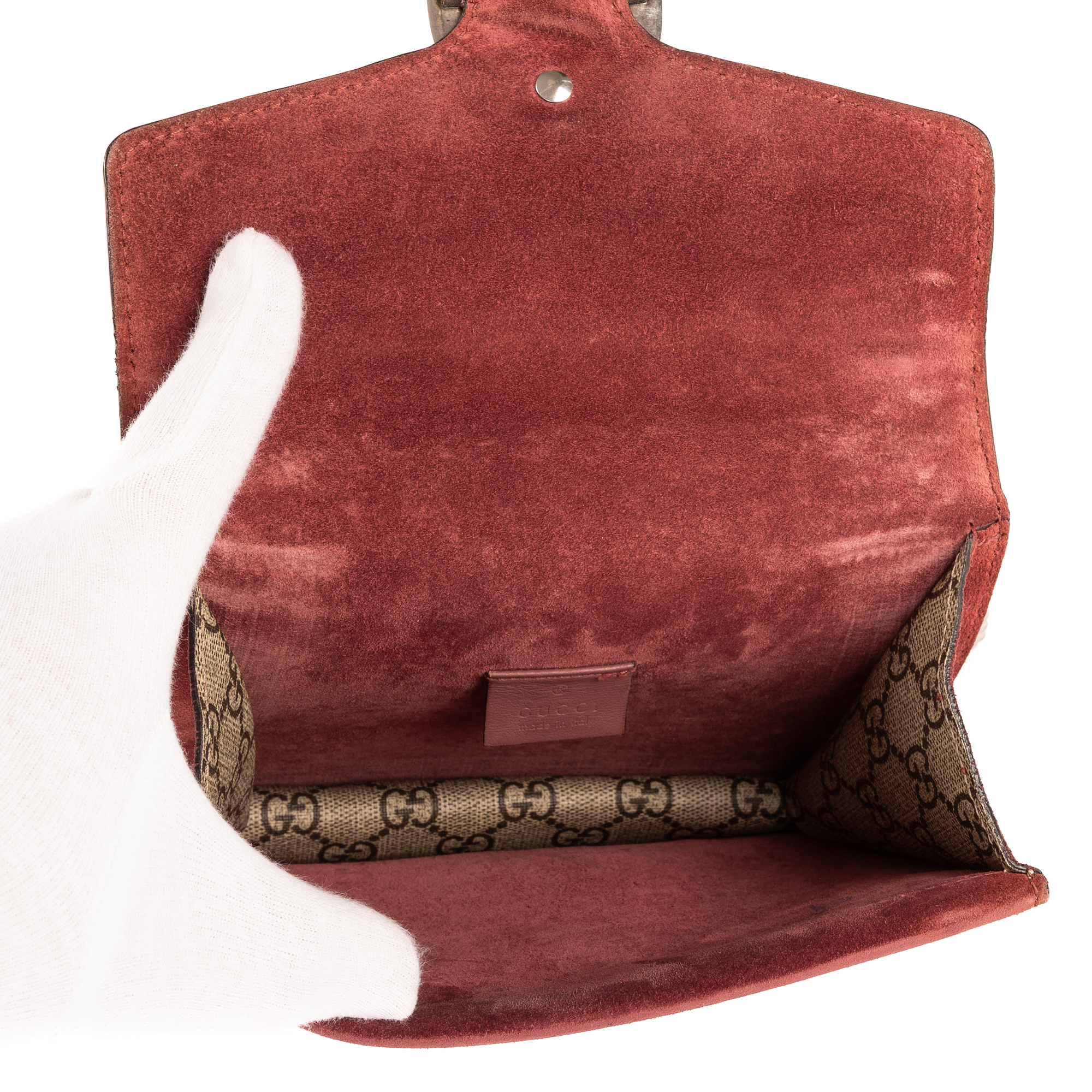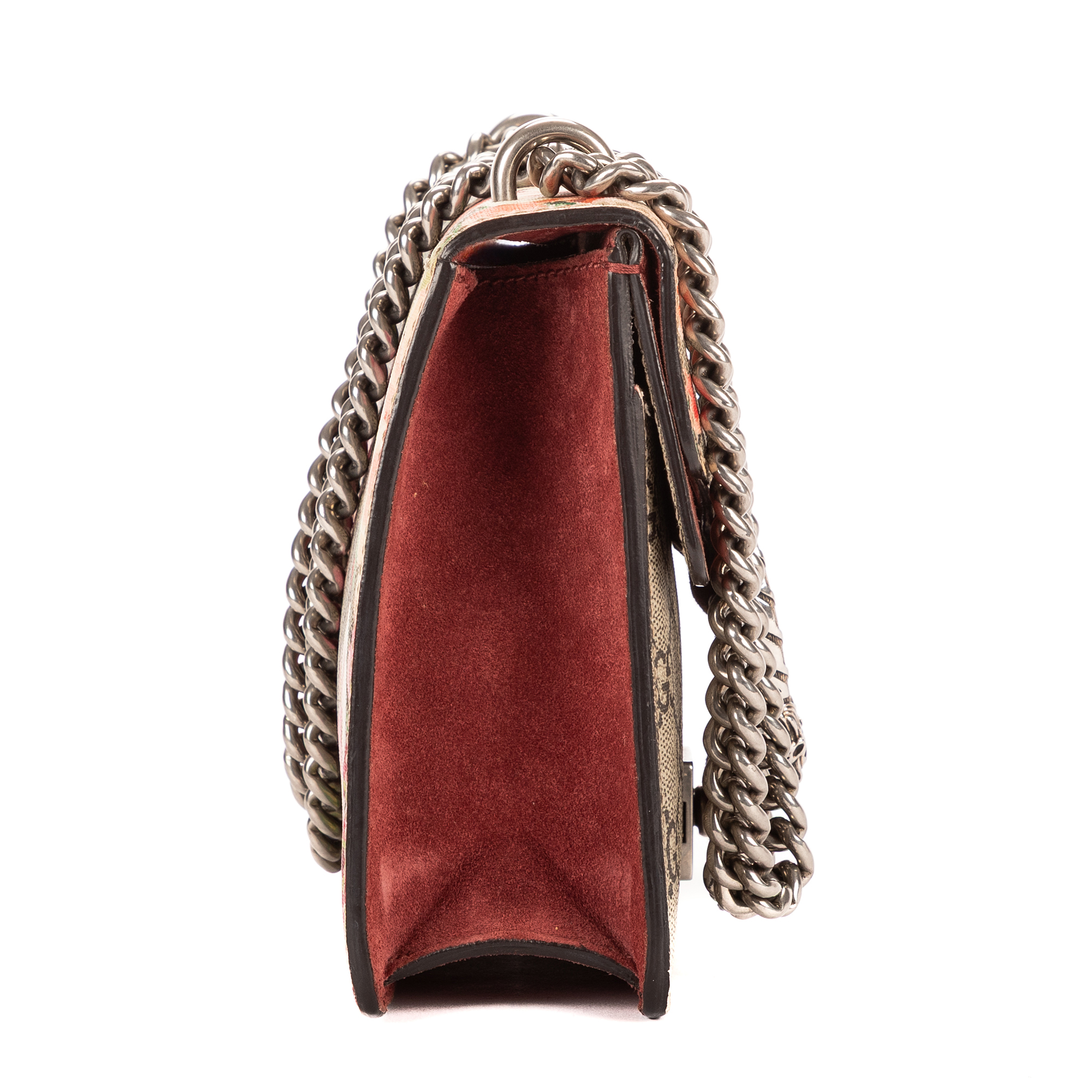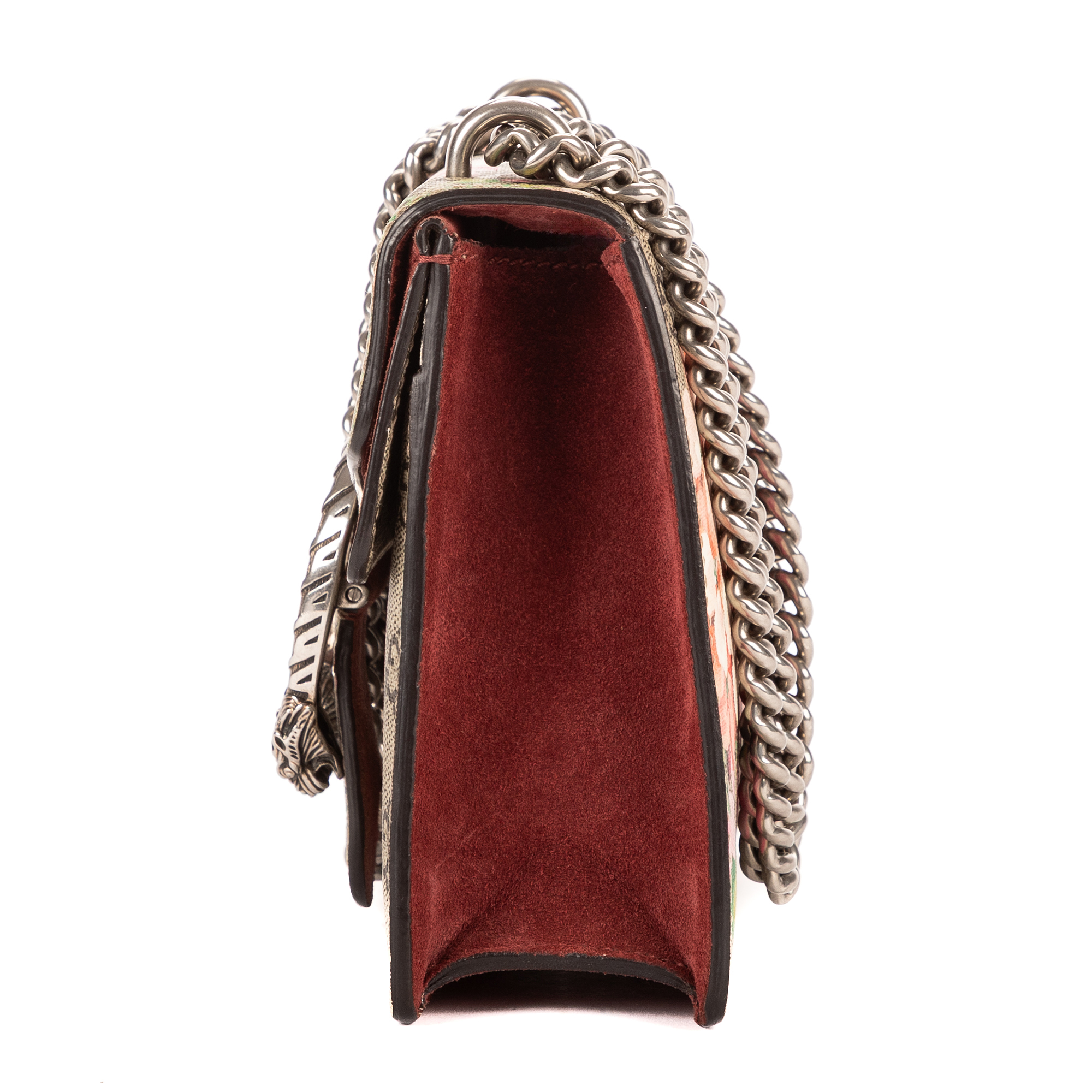 Gucci Shoulder Bag Blooms Dionysus Mini in Beige/Burgundy Blooms Supreme Coated Canvas and Silver hardware. The product is in Excellent Condition (A).