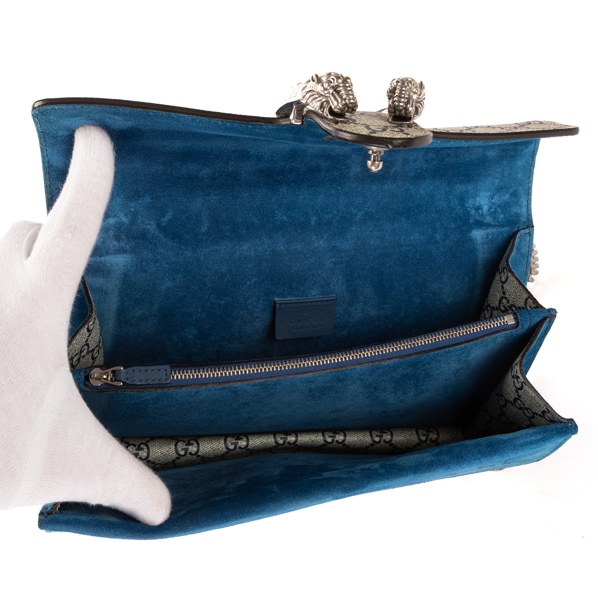 Description : Gucci Shoulder Bag Blooms Dionysus Small in Beige/Blue Blooms Supreme Coated Canvas and Silver hardware. The product is in Perfect Condition (AA). Dimensions: 27x16x6 cm SKU: EAH3389 Serial number: 400249-502752 Accessories Included: None Delivery: We have a 5 to 7 business days delivery policy, hassle-free and duties/tariffs included! BrandCo Paris finds rare and top condition items at great deals, they are worth your patience! Shop with confidence - All BrandCo Paris items are carefully selected and authenticated by our team of experts. All the items come with an authenticity certificate and packaging delivered by BrandCo Paris. Item Condition Grading Table N (Like New) AA (Perfect Condition) A (Excellent Condition) AB (Very Good Condition) B (Good/Fair)