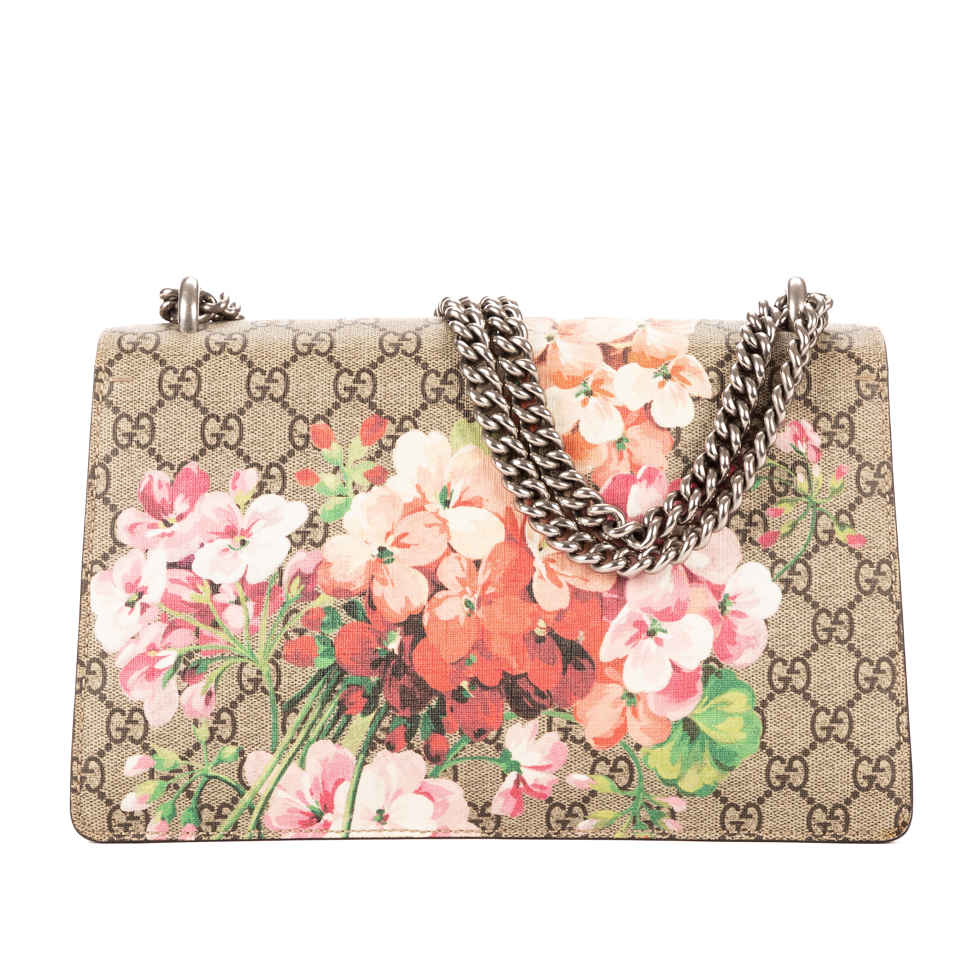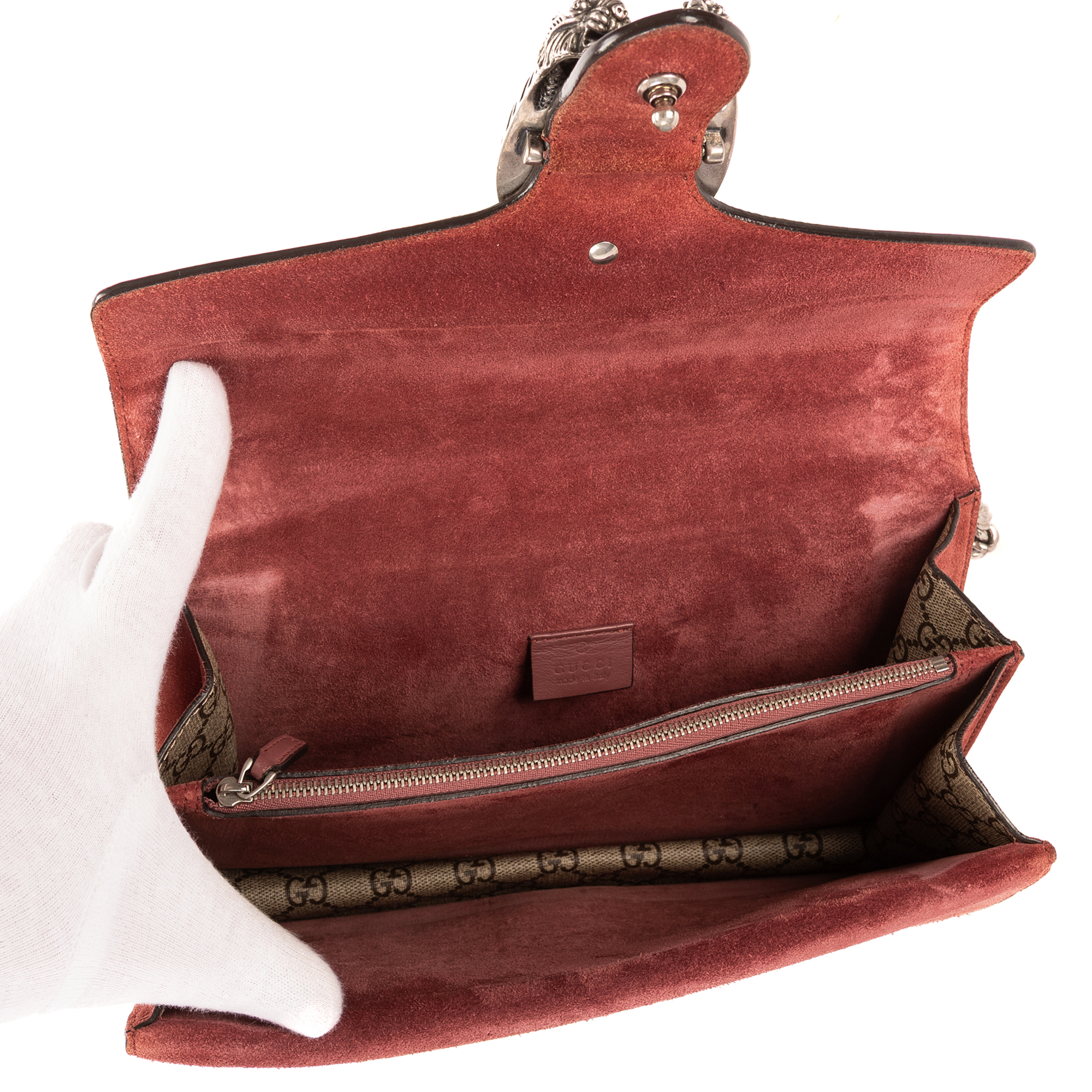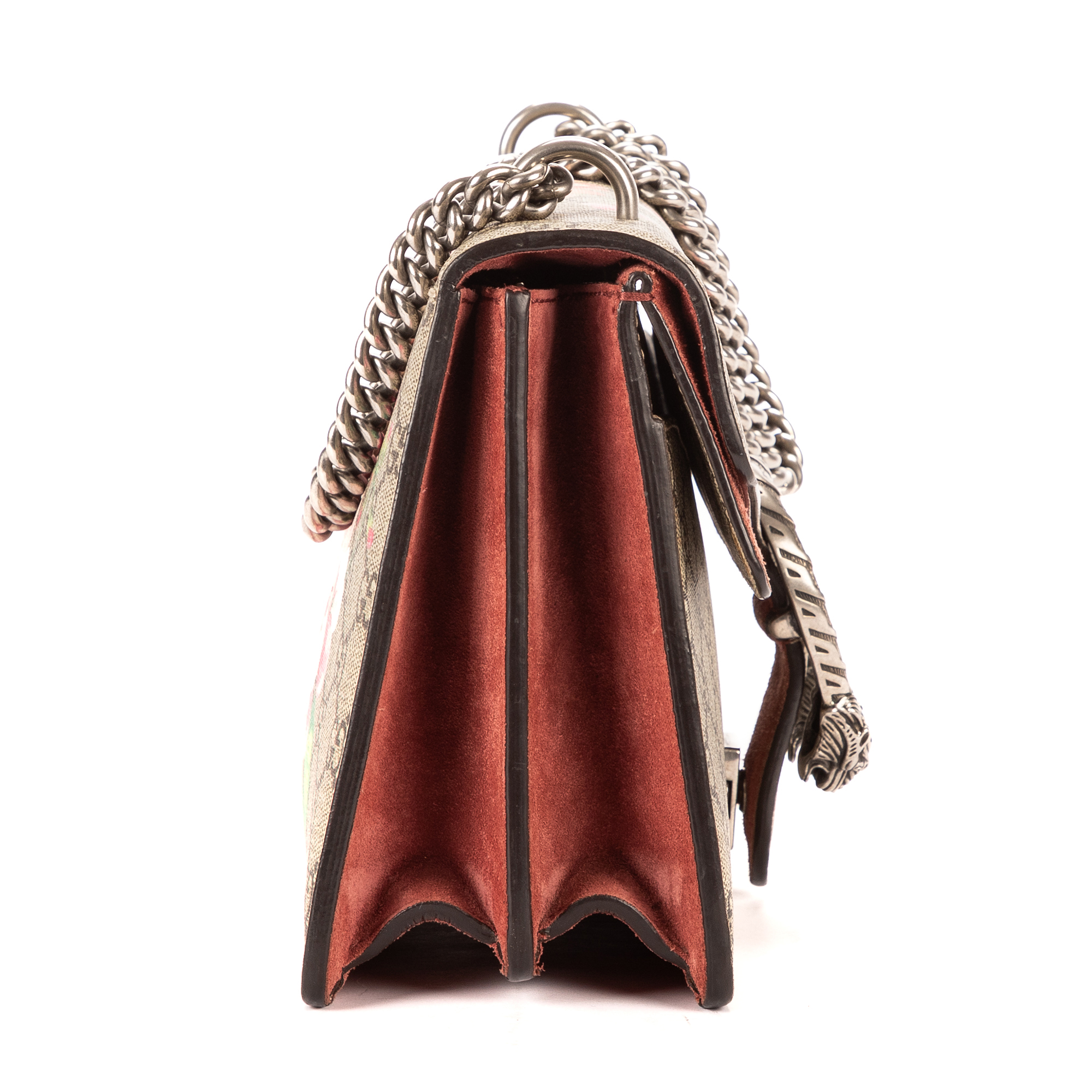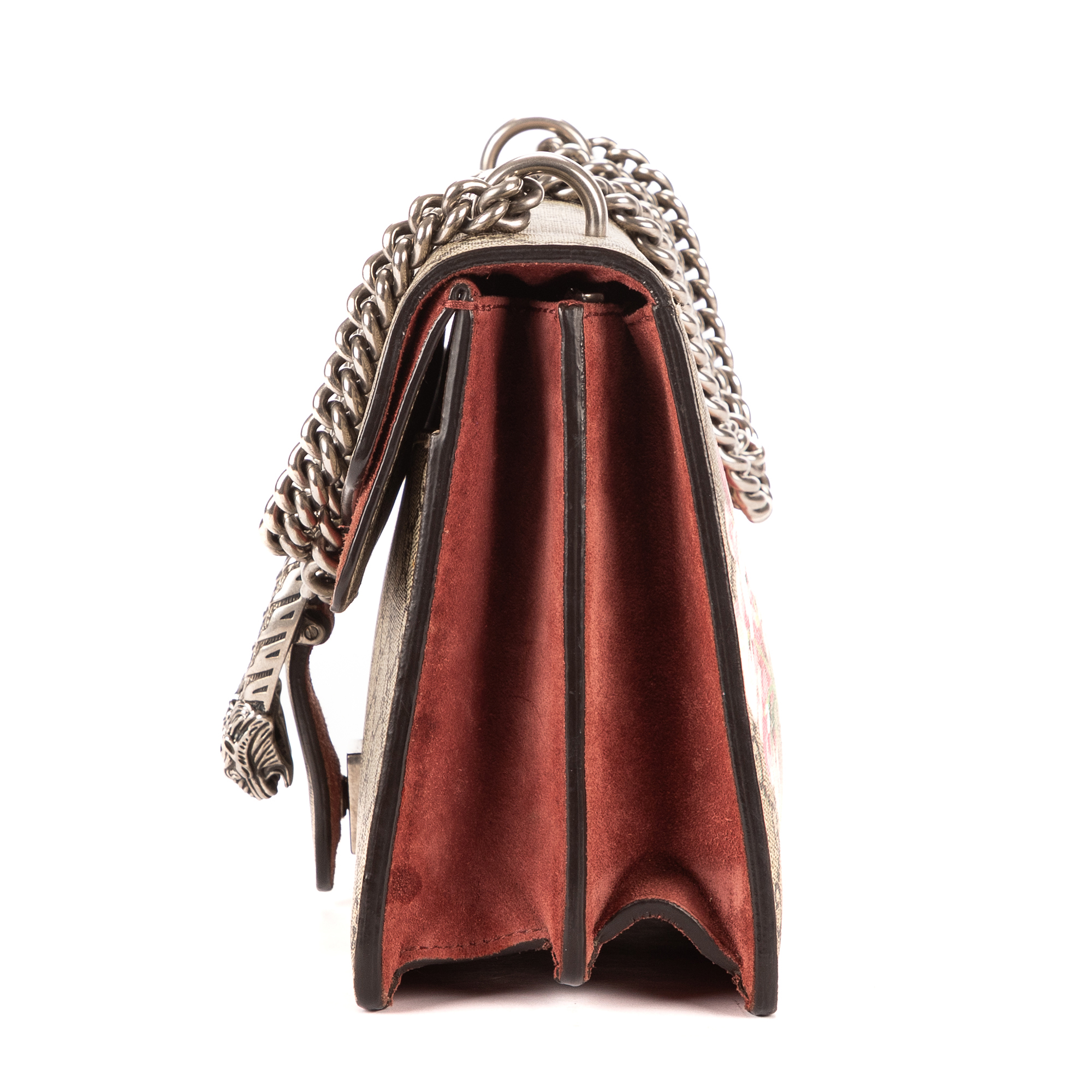 Gucci Shoulder Bag Blooms Dionysus Small in Beige/Burgundy Blooms Supreme Coated Canvas and Silver hardware. The product is in Excellent Condition (A).