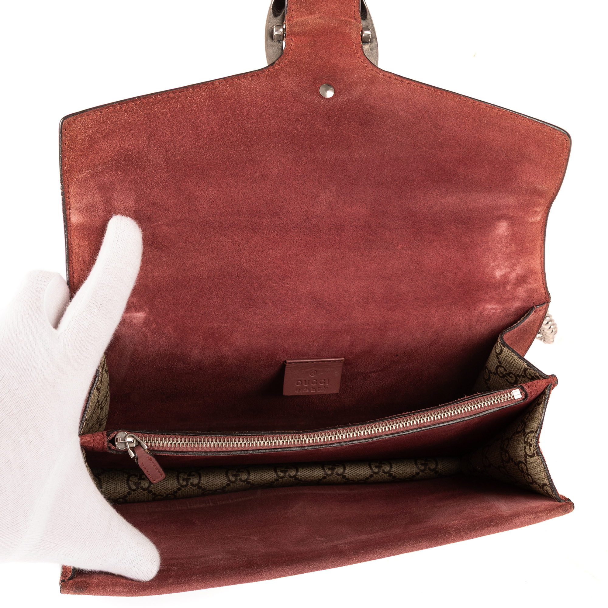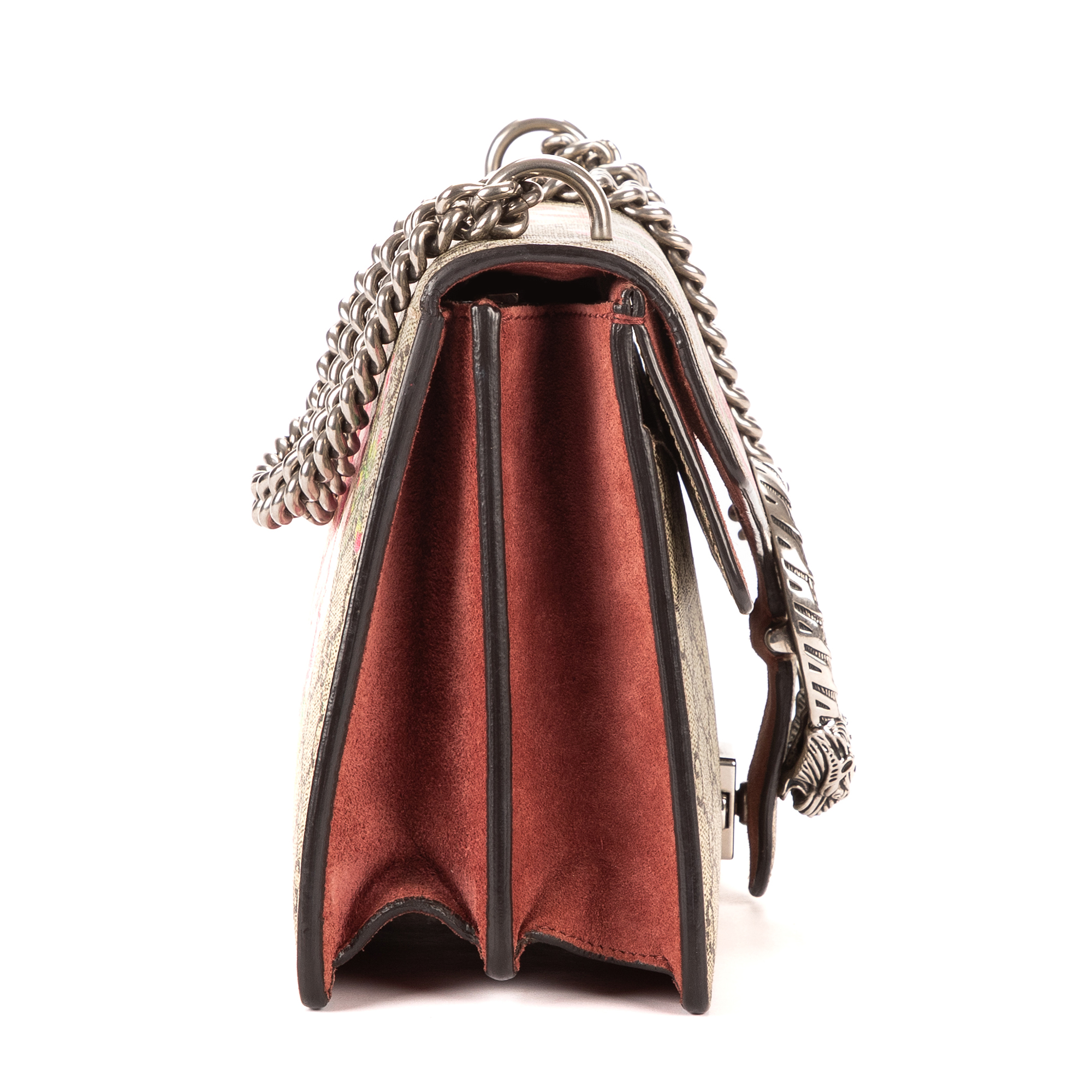 Gucci Shoulder Bag Blooms Dionysus Small in Beige/Burgundy Blooms Supreme Coated Canvas and Silver hardware. The product is in Excellent Condition (A).
