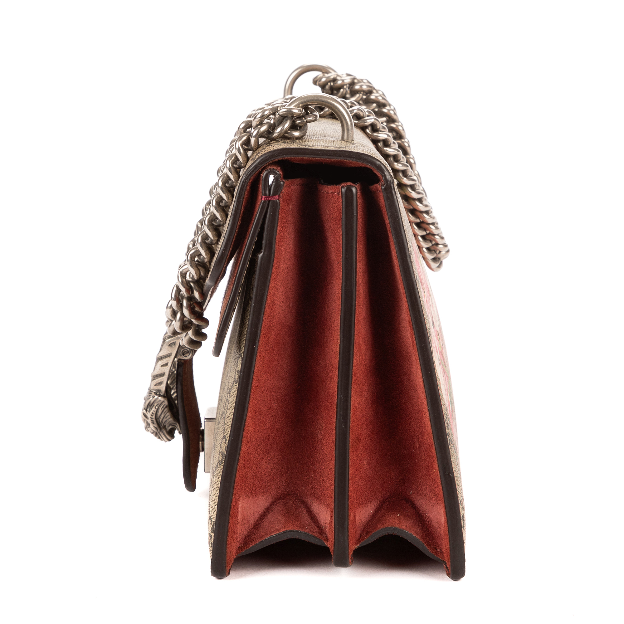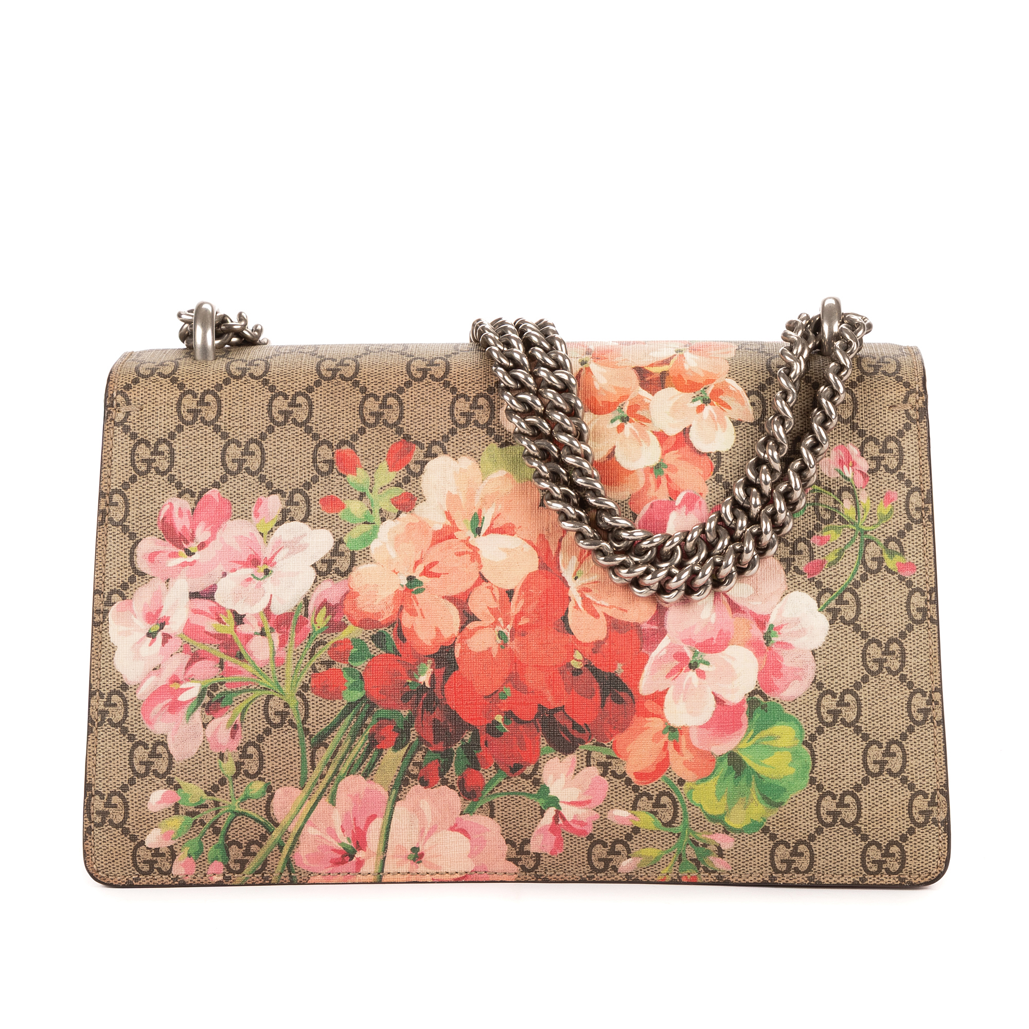 Description : Gucci Shoulder Bag Blooms Dionysus Small in Beige/Burgundy Blooms Supreme Coated Canvas and Silver hardware. The product is in Excellent Condition (A). Dimensions: 27x16x6 cm SKU: EAH3463 Serial number: 400249-520981 Accessories Included: None Delivery: We have a 5 to 7 business days delivery policy, hassle-free and duties/tariffs included! BrandCo Paris finds rare and top condition items at great deals, they are worth your patience! Shop with confidence - All BrandCo Paris items are carefully selected and authenticated by our team of experts. All the items come with an authenticity certificate and packaging delivered by BrandCo Paris. Item Condition Grading Table N (Like New) AA (Perfect Condition) A (Excellent Condition) AB (Very Good Condition) B (Good/Fair)