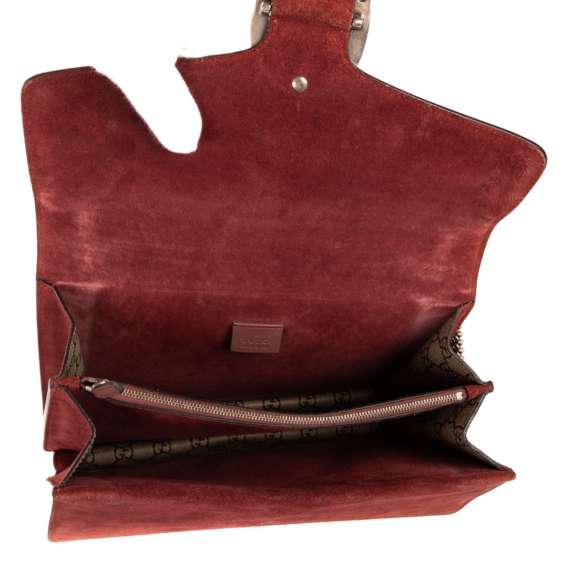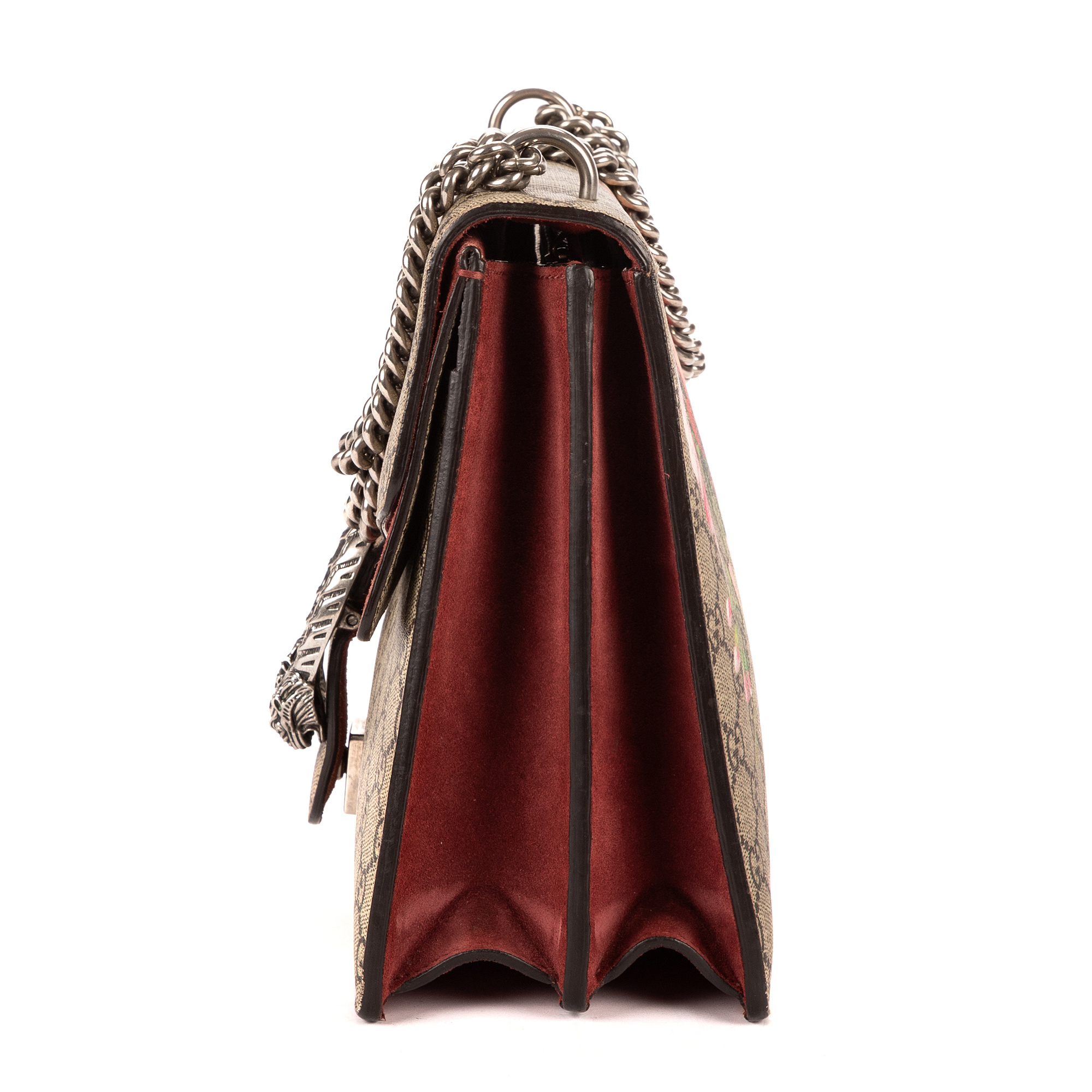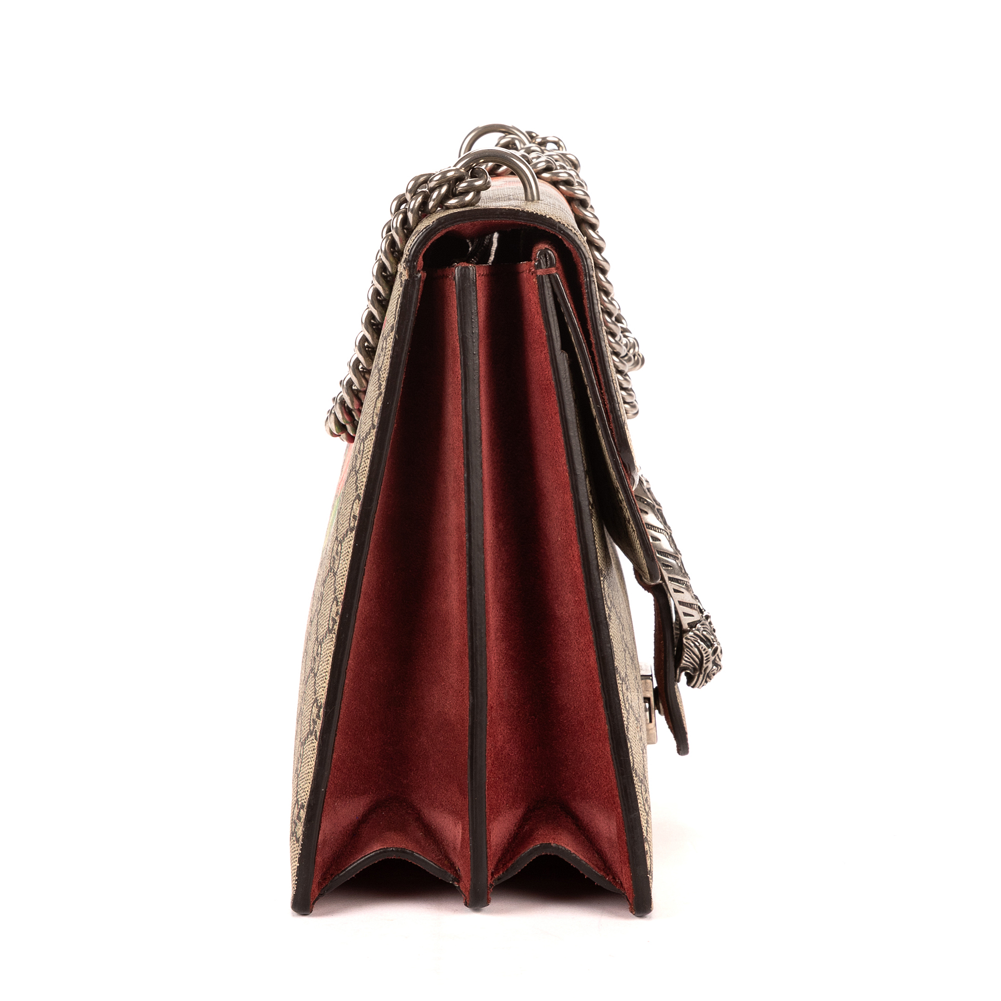 Gucci Shoulder Bag Blooms Dionysus Small in Beige/Burgundy Blooms Supreme Coated Canvas and Silver hardware. The product is in Excellent Condition (A).